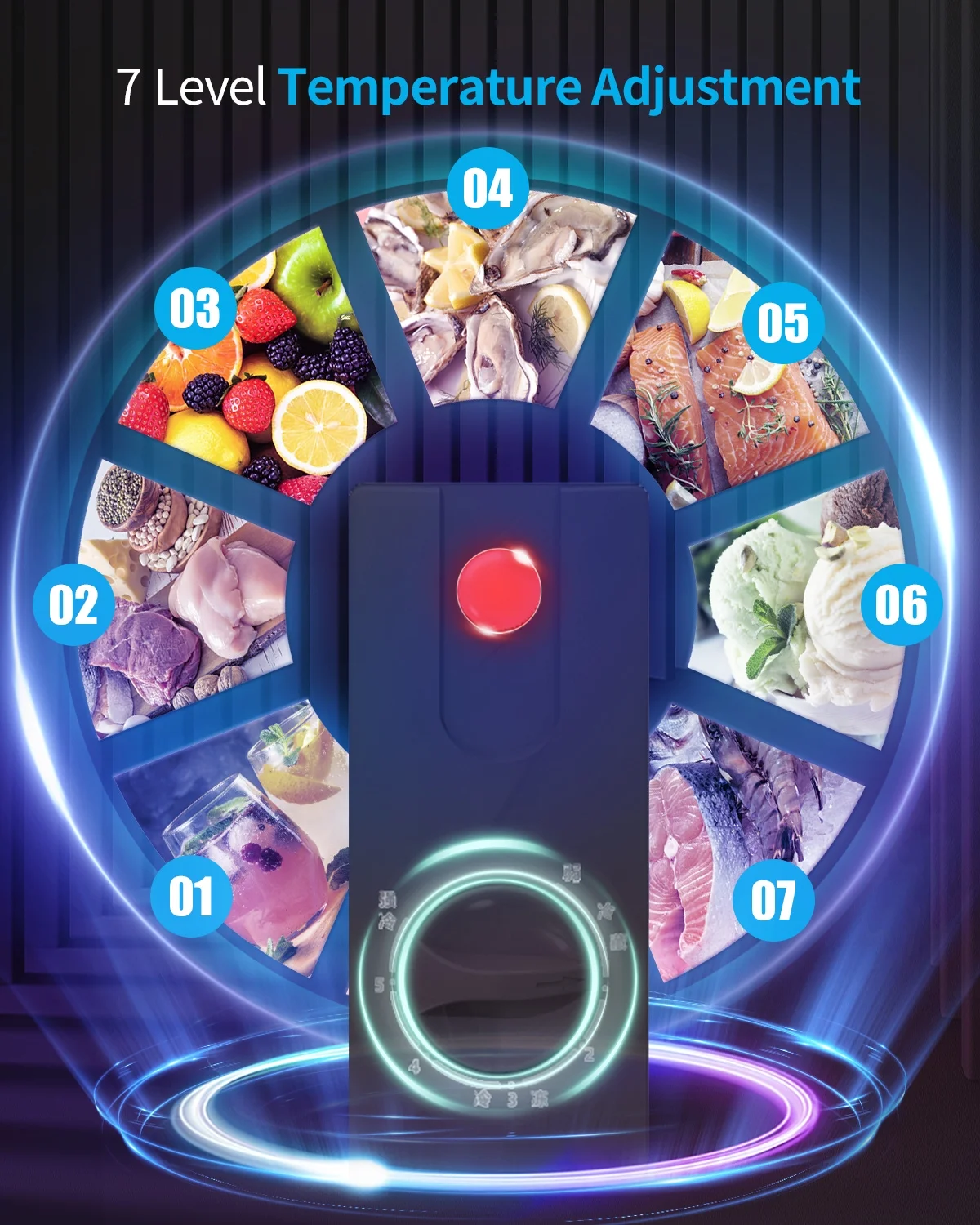 ��Temperature adjustable control��Adjustable 7-level temperature control to choose the temperature you want. It can be controlled from - 7.6 �� F to 6.8 �� F (- 14 �� C to - 22 �� C). The higher the water level, the lower the temperature.