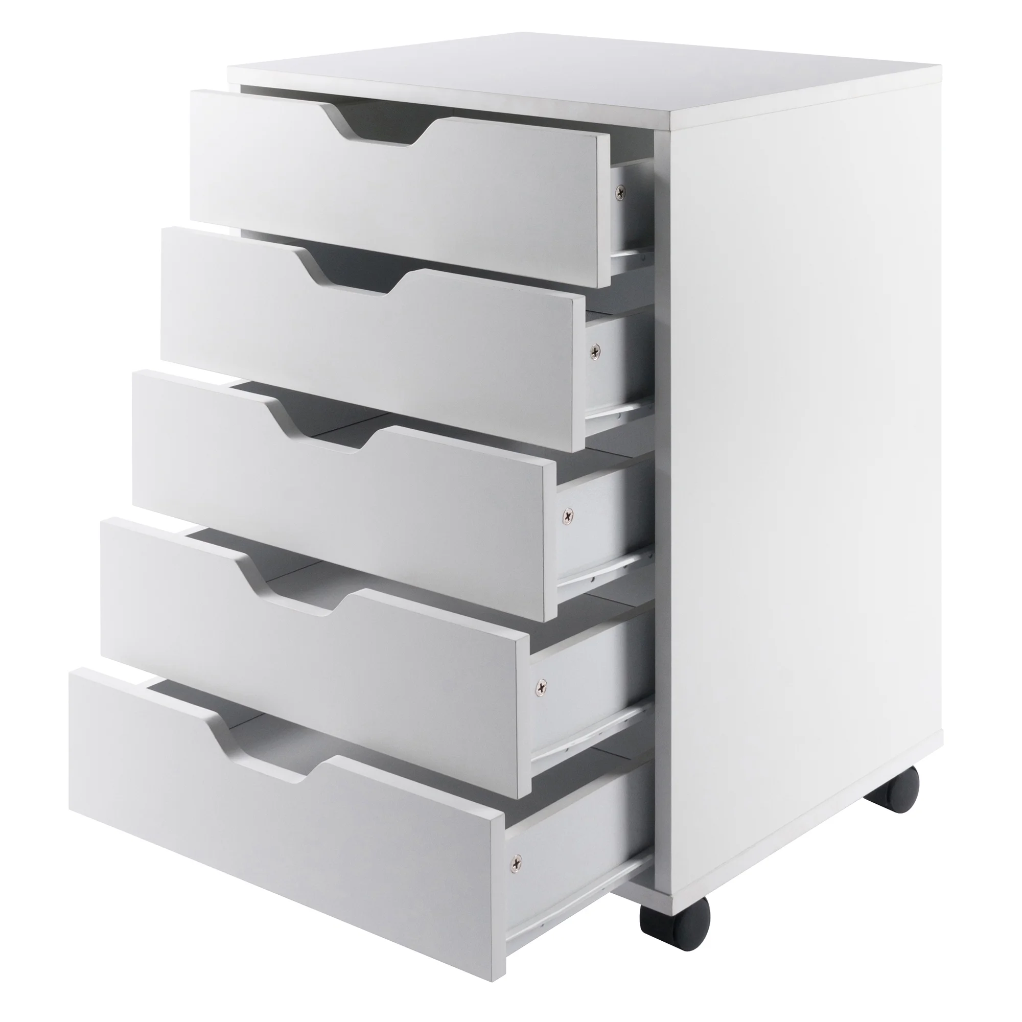 - Freestanding, multi-drawer mobile cabinet; organizers