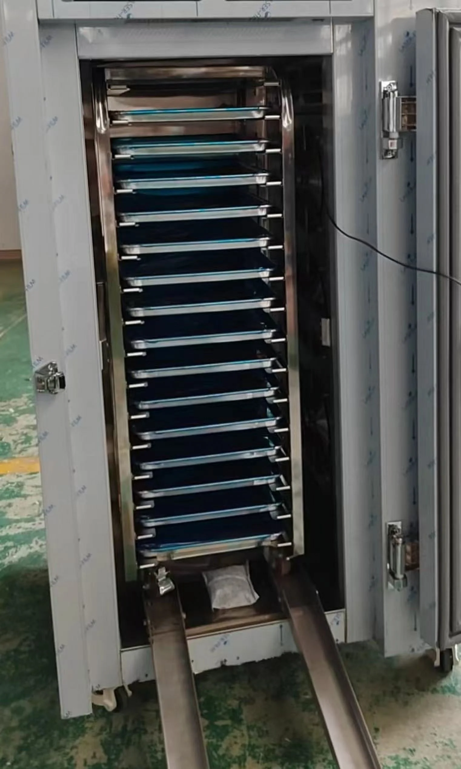 - ��Machine details��: Blast chiller & blast freezer comes with trolley cart and guide rail and 15 pcs stainless steel trays, tray size: 23.62��x15.75��x1.10�� (60x40x2.8cm),trolley size:18.7��x24.8��x53.54�� (47.5x63x136cm),Machine size: 43.3''x36.6''x84.65''(110x93x215cm). 220V 60HZ , single phase, 2700W, US plug. Temperature range:-40C to +3C (-40��F to +37.4��F), EVCO smart AI temperature controller, self-closing door, 90��door opening,stainless steel color,net volume: 615L