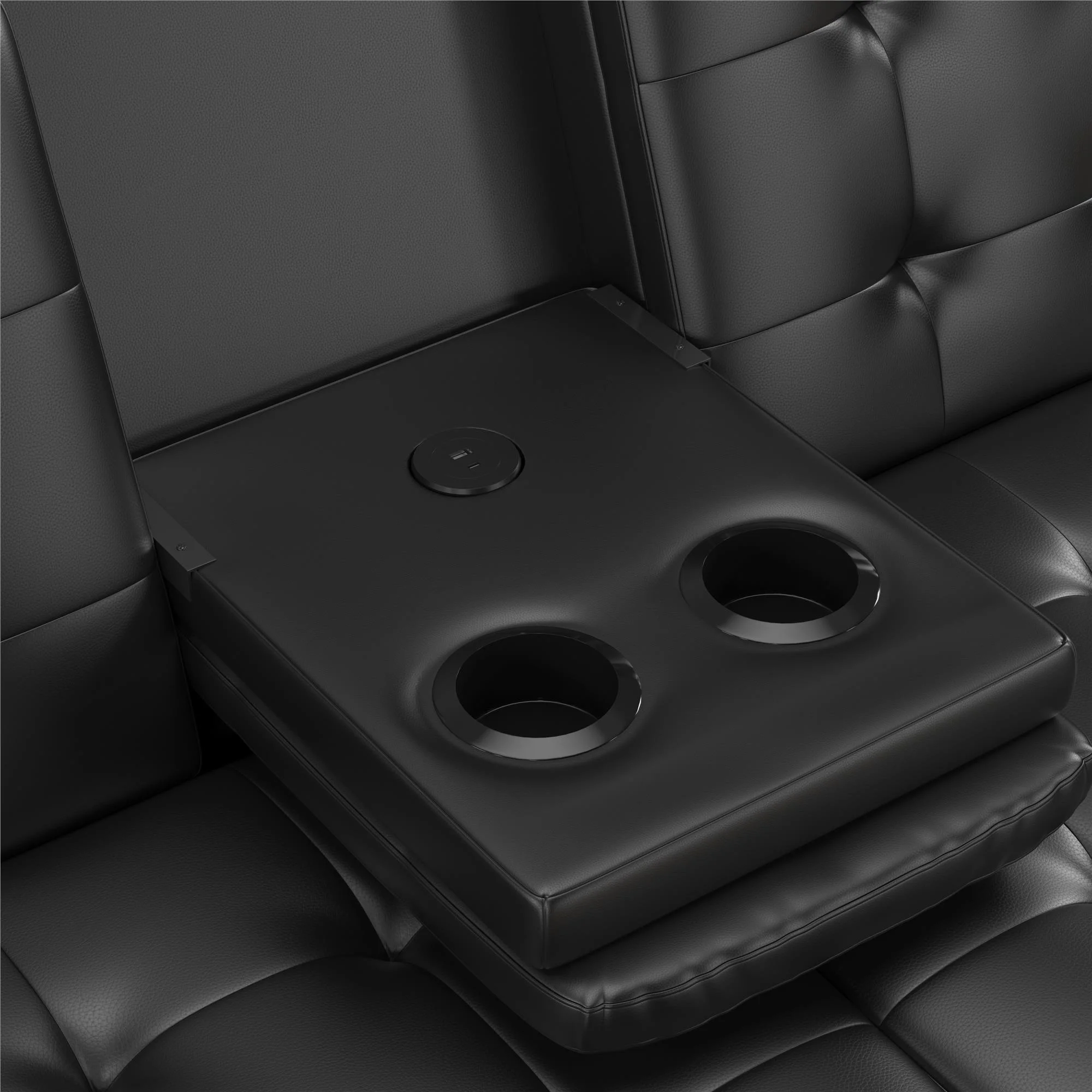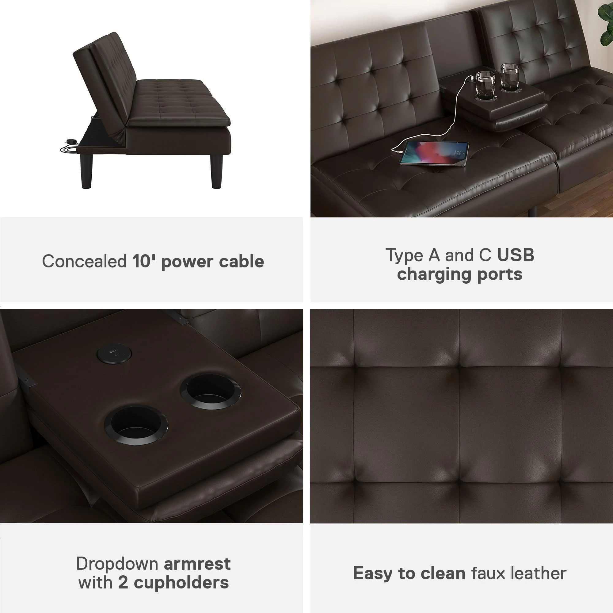 - Includes a fold-down tray with 2 cupholders that conveniently hold a glass, mug, or cup filled with your favorite drink and a dual charging port USB connection (Type A and C) for powering up your e-devices like phone or tablet - no charger needed
