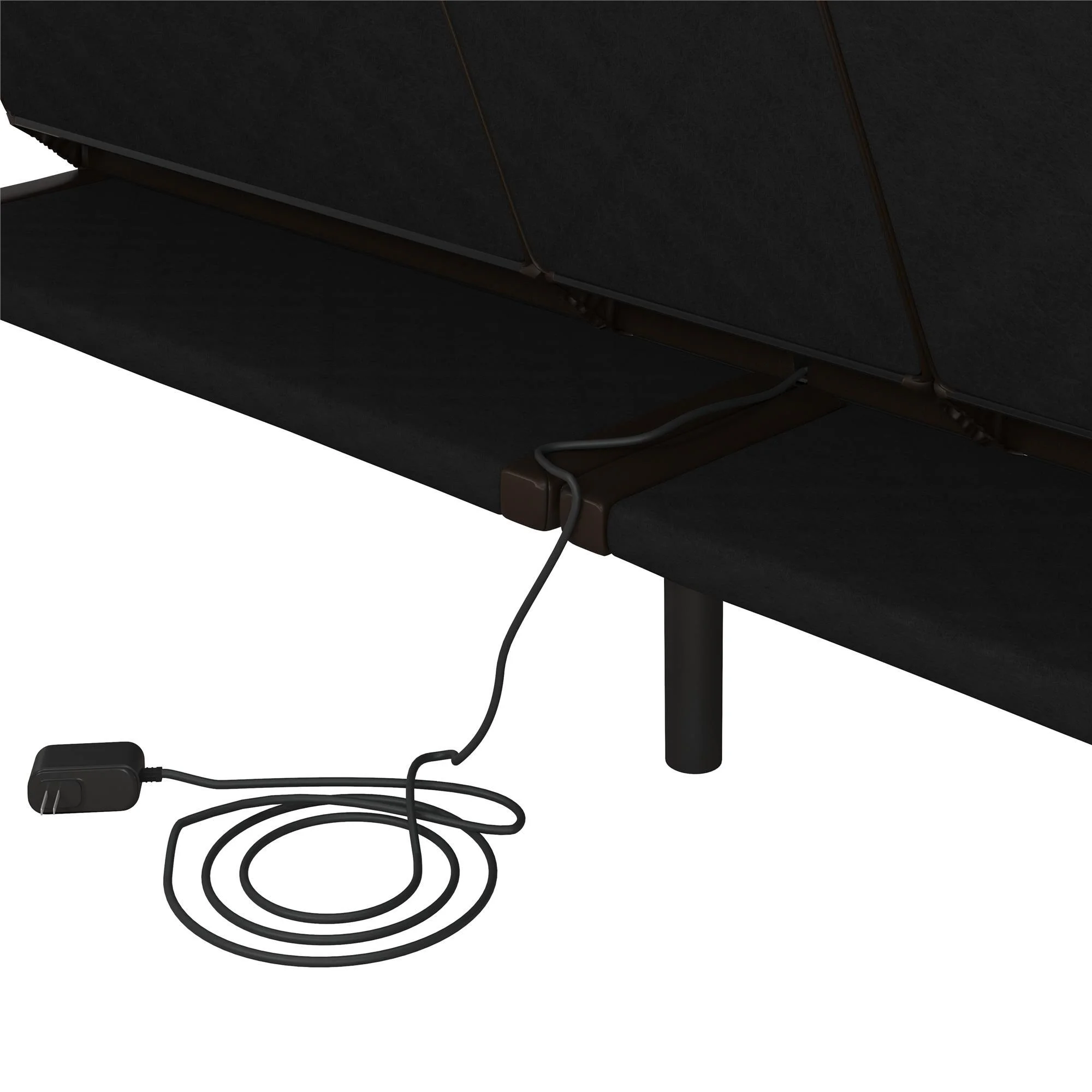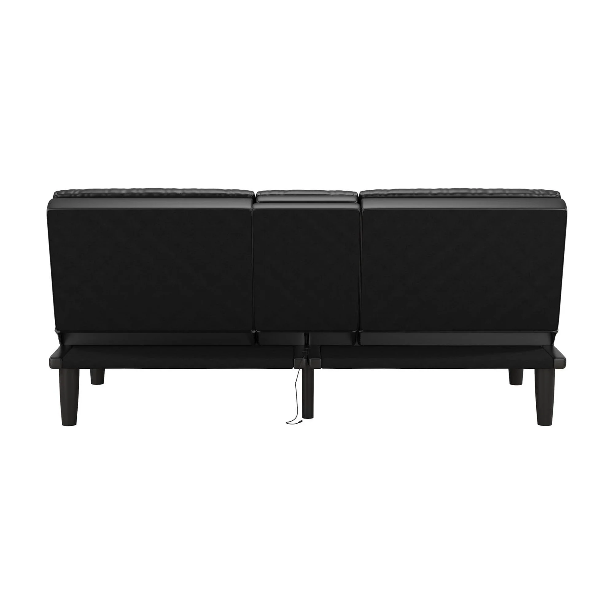 - Stable and durable with 8 inch tall strong black plastic legs, its sturdy wood frame can easily support 3 people. Ideal for small living spaces, the backrest easily converts from upright to flat.
