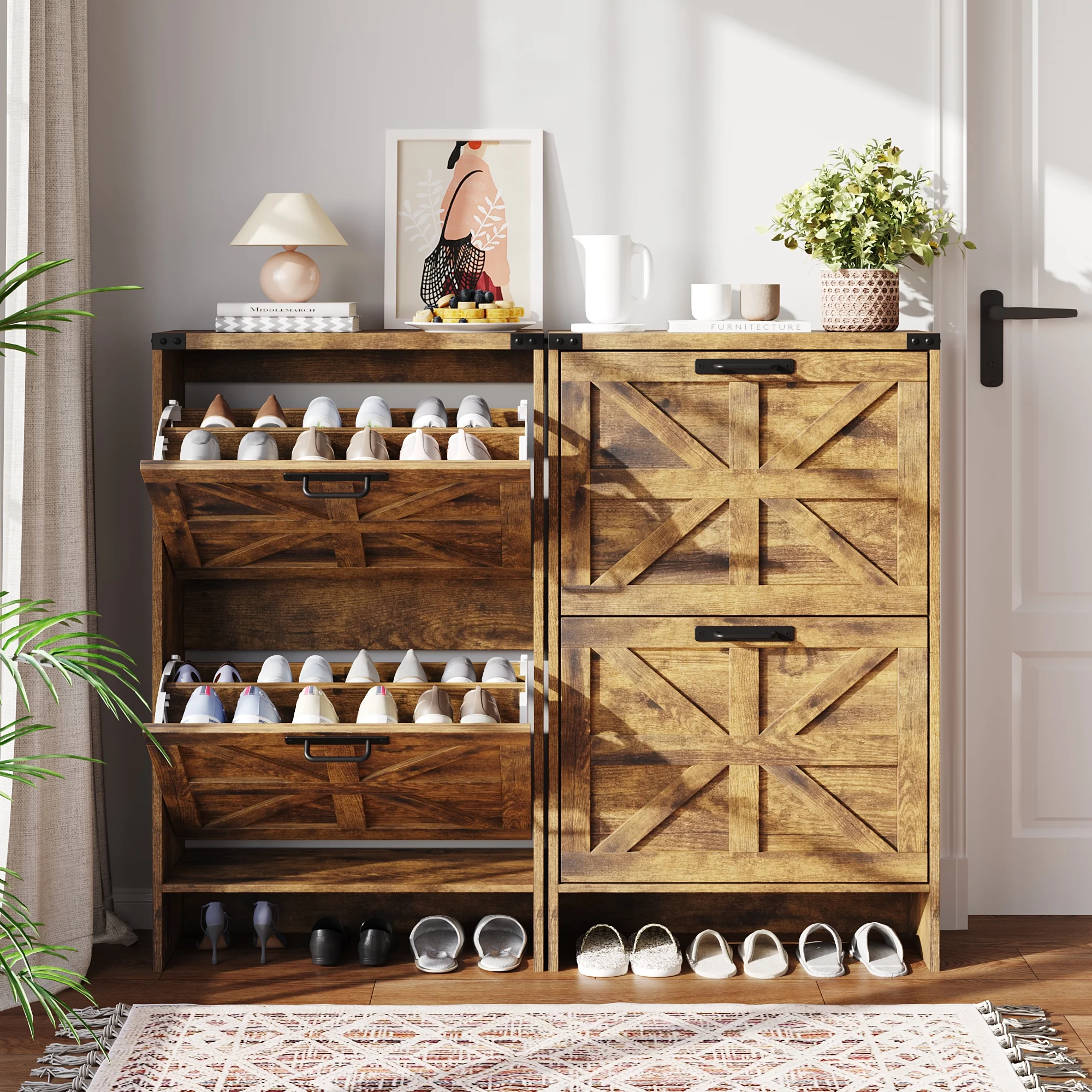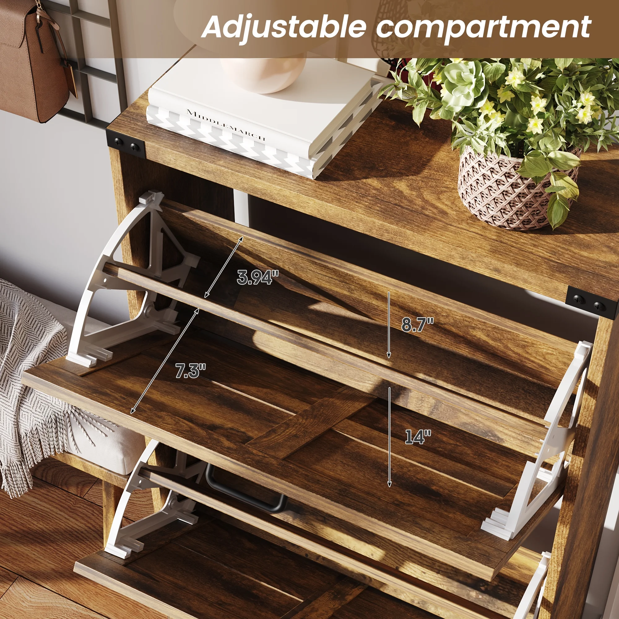 - ??��Large Capacity��The entryway shoe cabinet features two upper drawers with adjustable panels to fit shoes of various sizes, and additional top and bottom space for extra storage, making it ideal for family use.