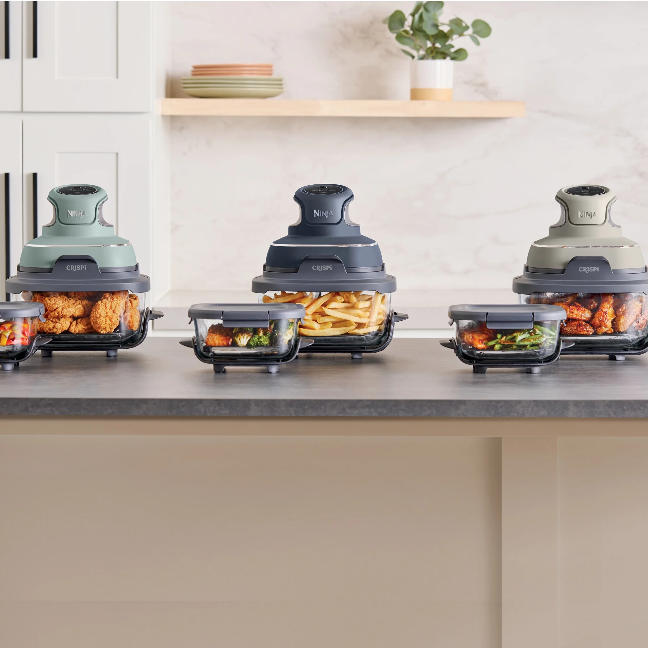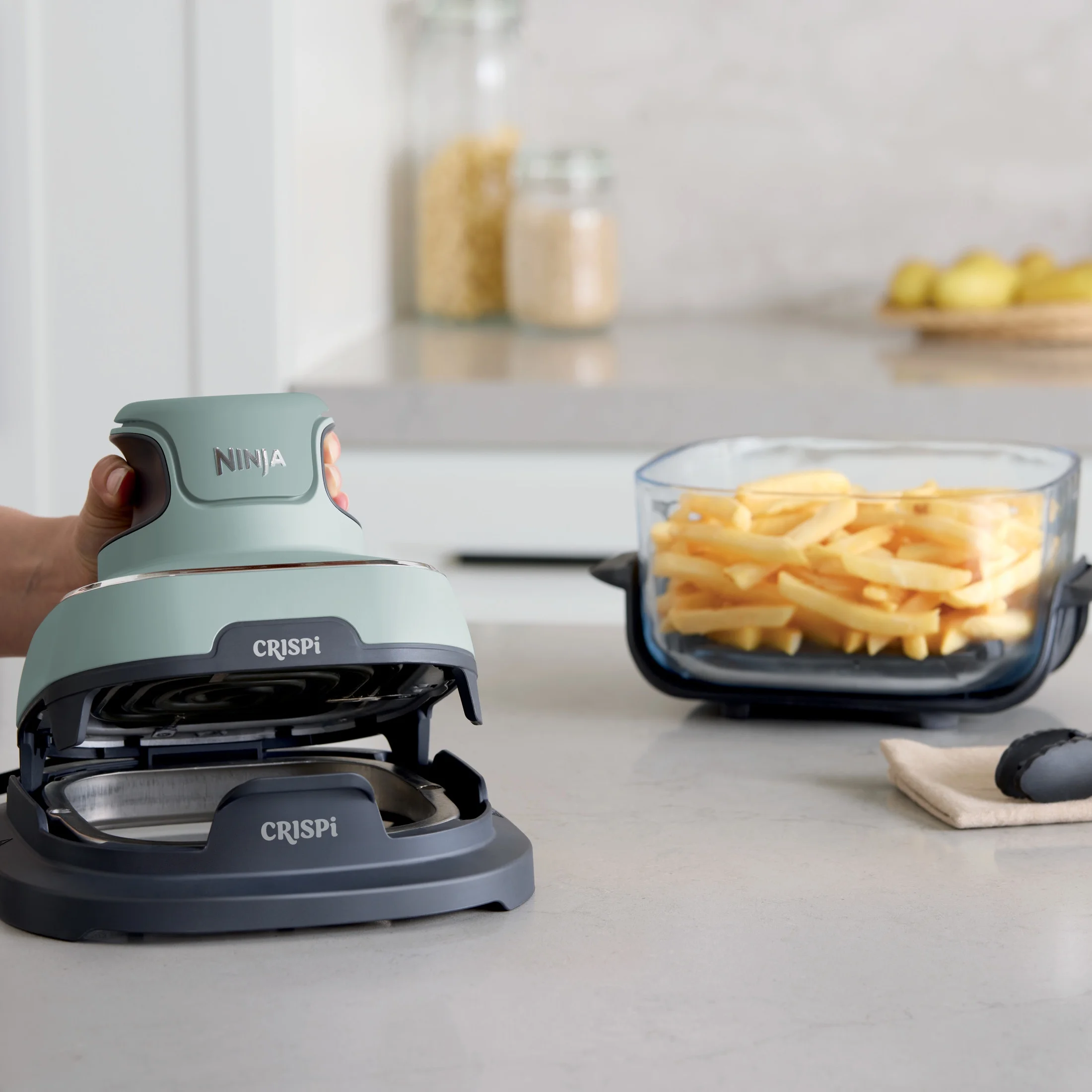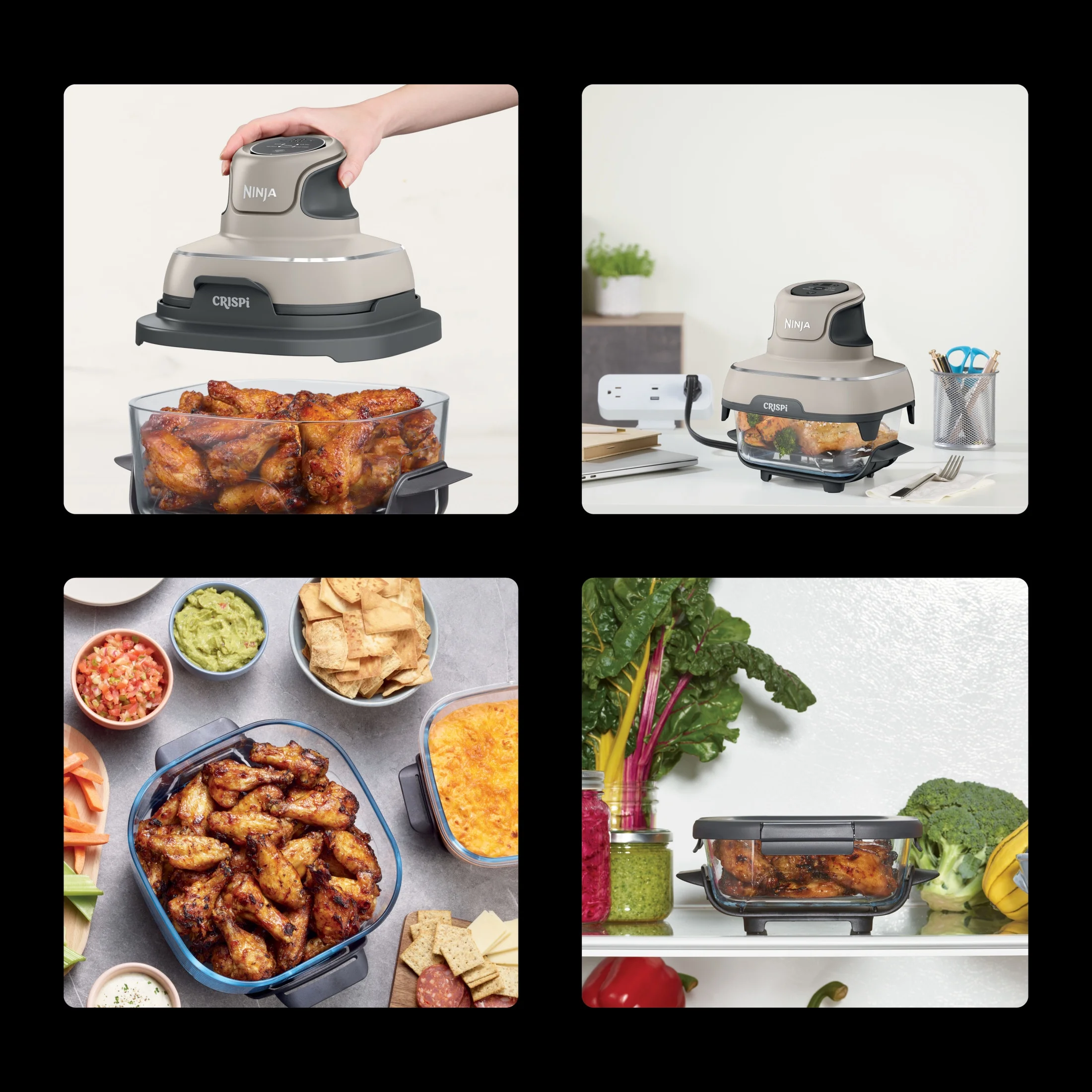 - ALL-IN-ONE SYSTEM: Includes the Ninja Crispi? PowerPod?, 4-qt and 6-cup CleanCrisp? glass containers, and 2 storage lids