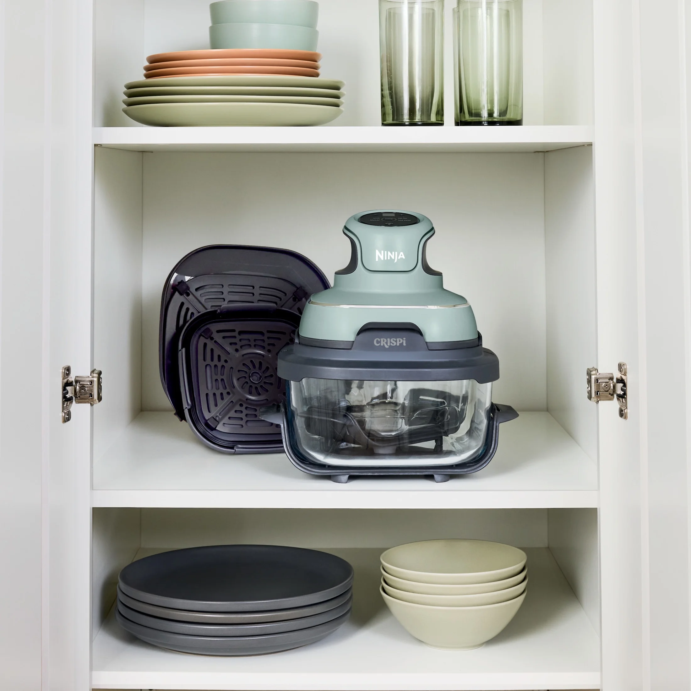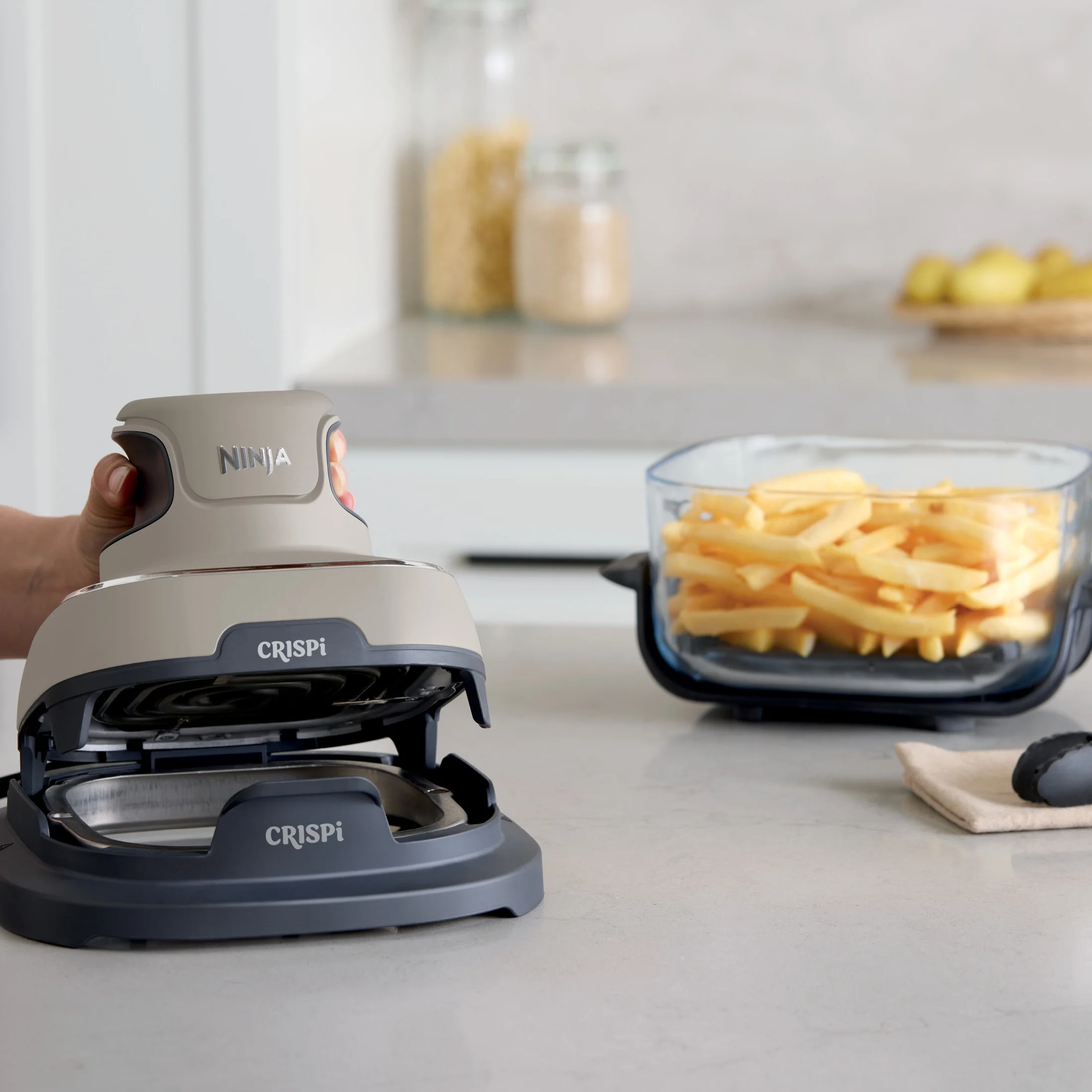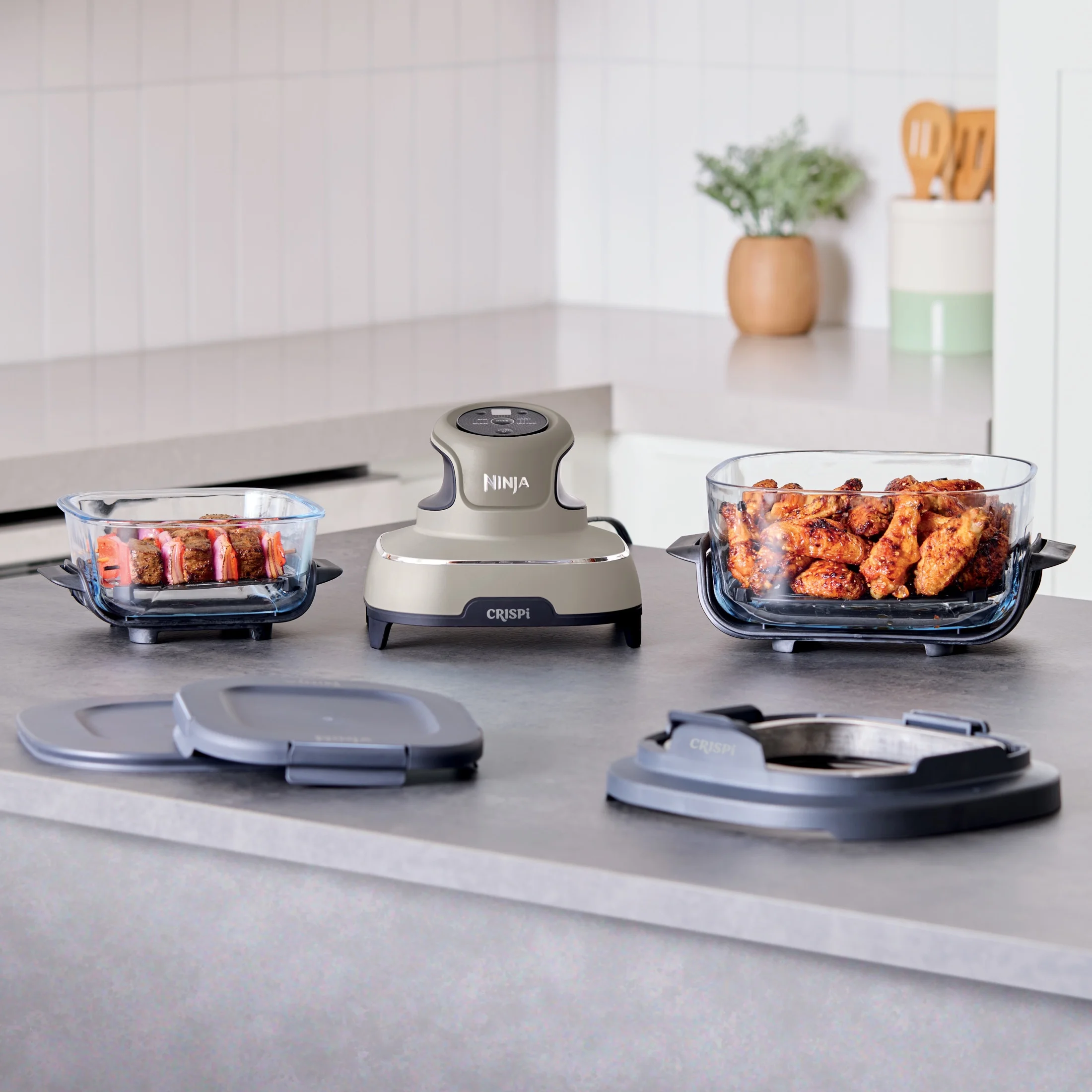 - ALL-IN-ONE SYSTEM: Includes the Ninja Crispi? PowerPod?, 4-qt and 6-cup CleanCrisp? glass containers, and 2 storage lids