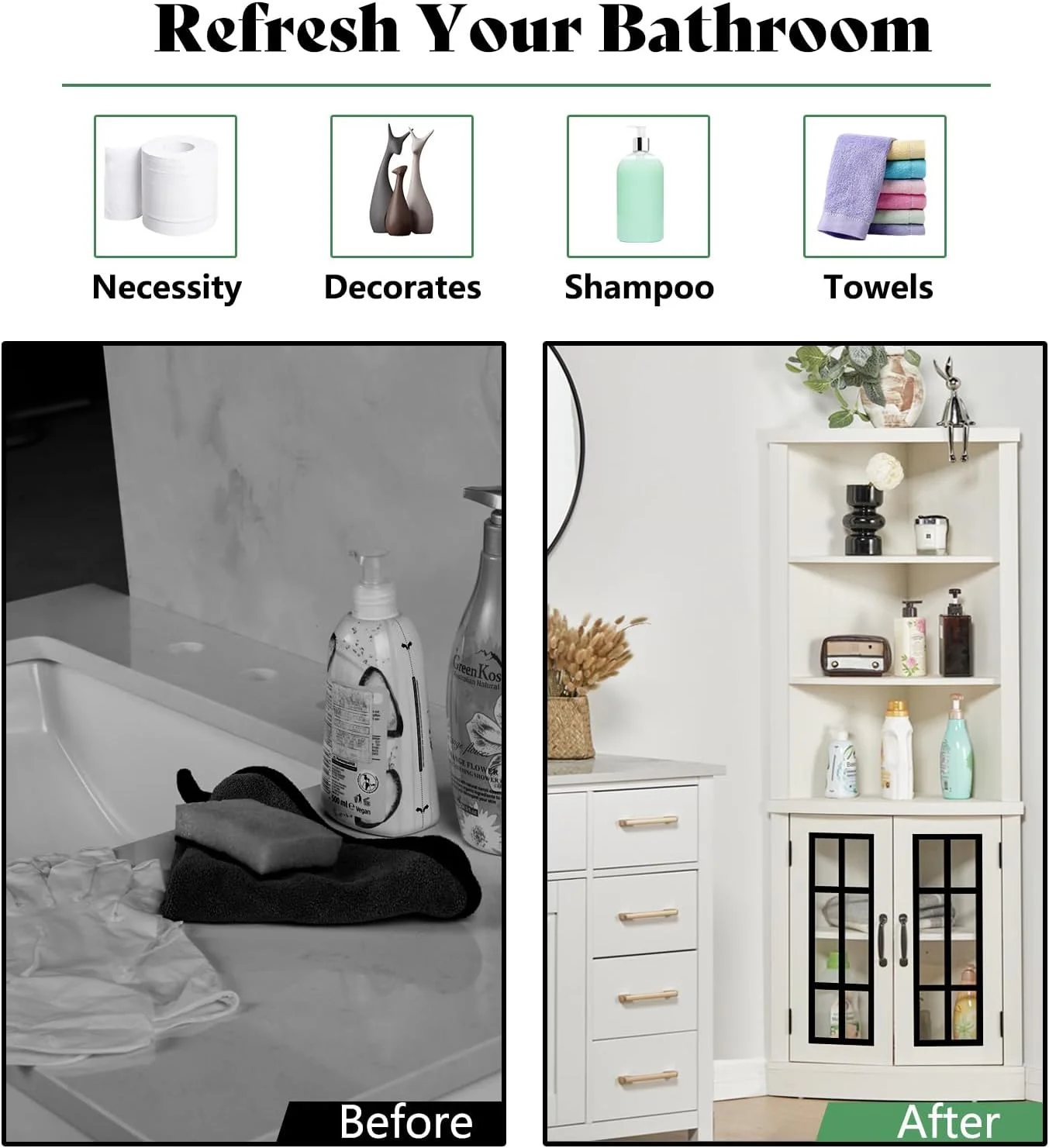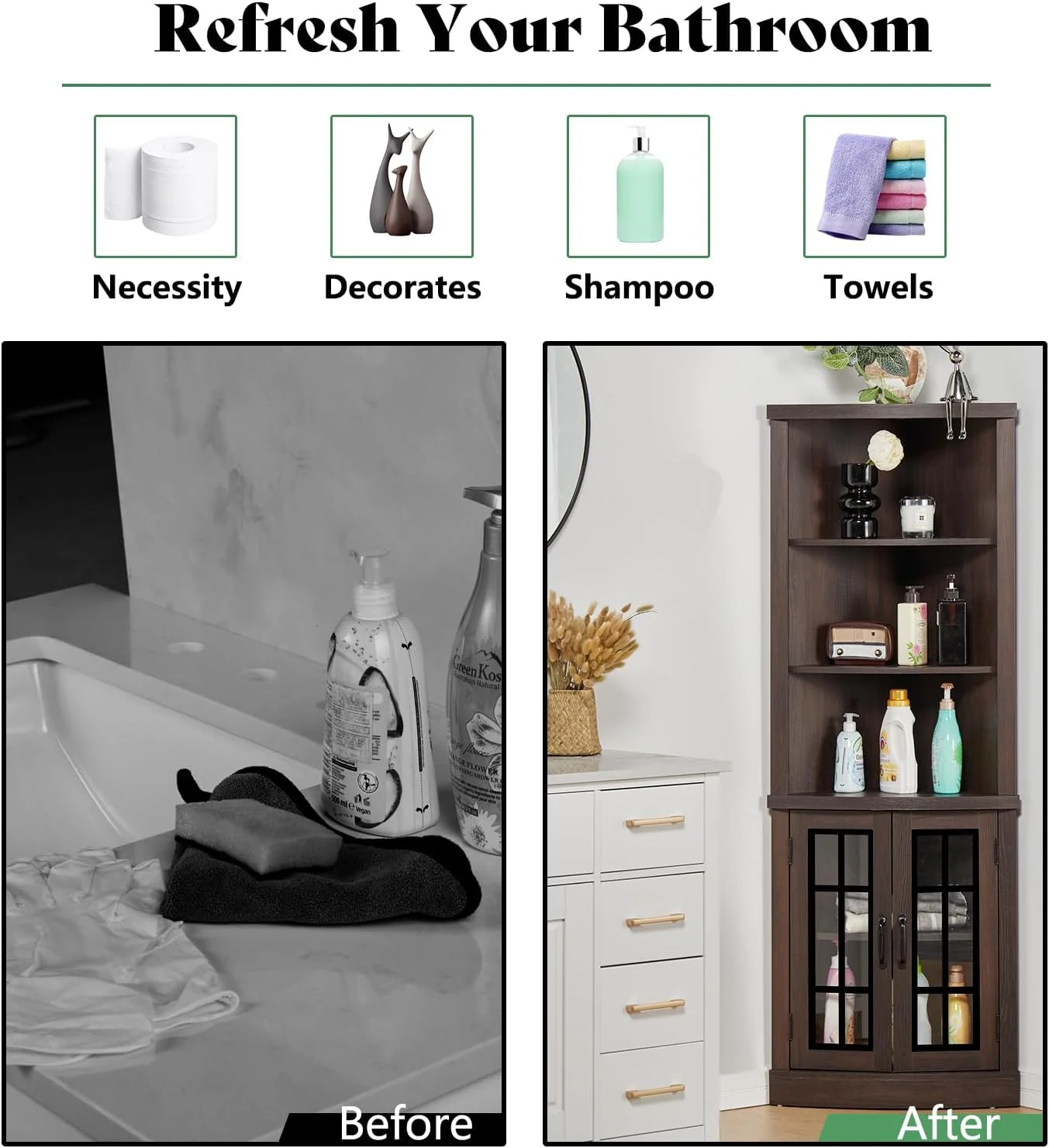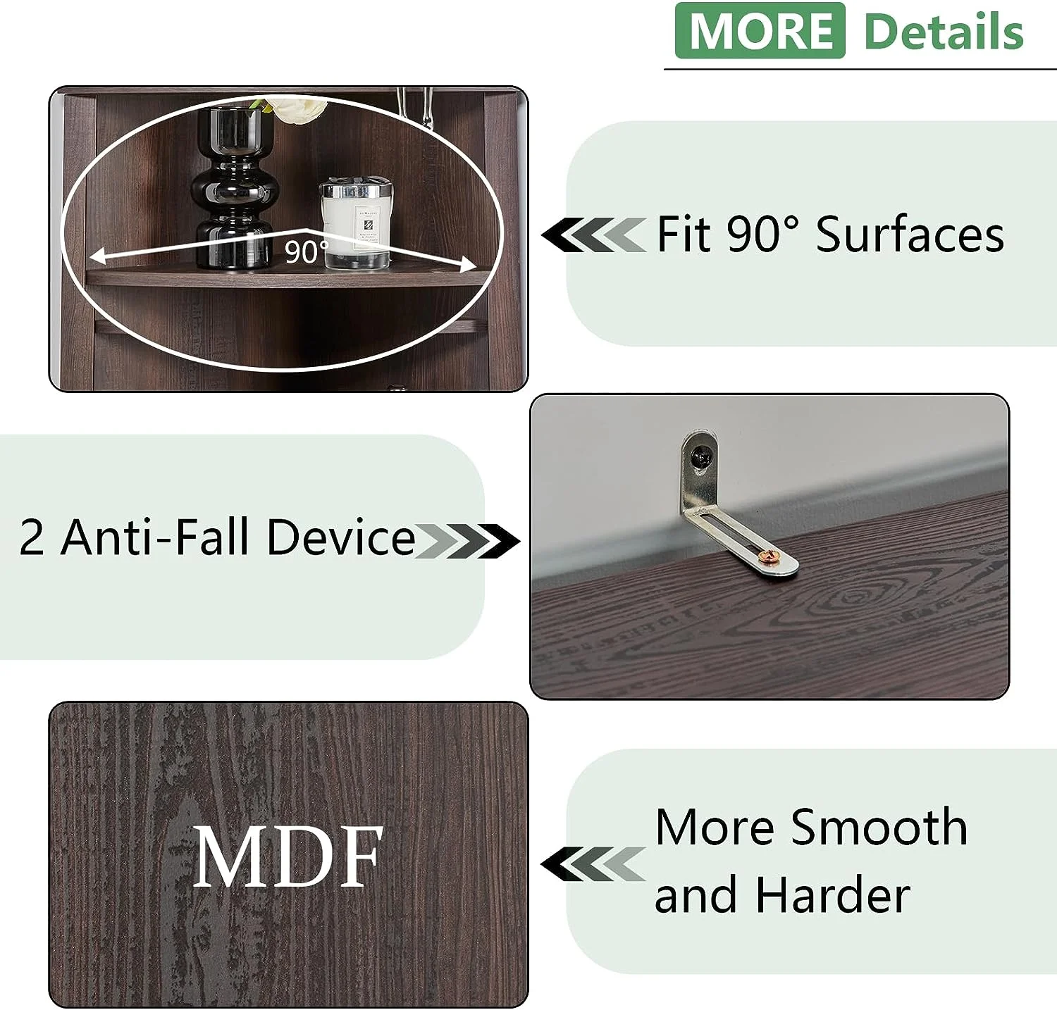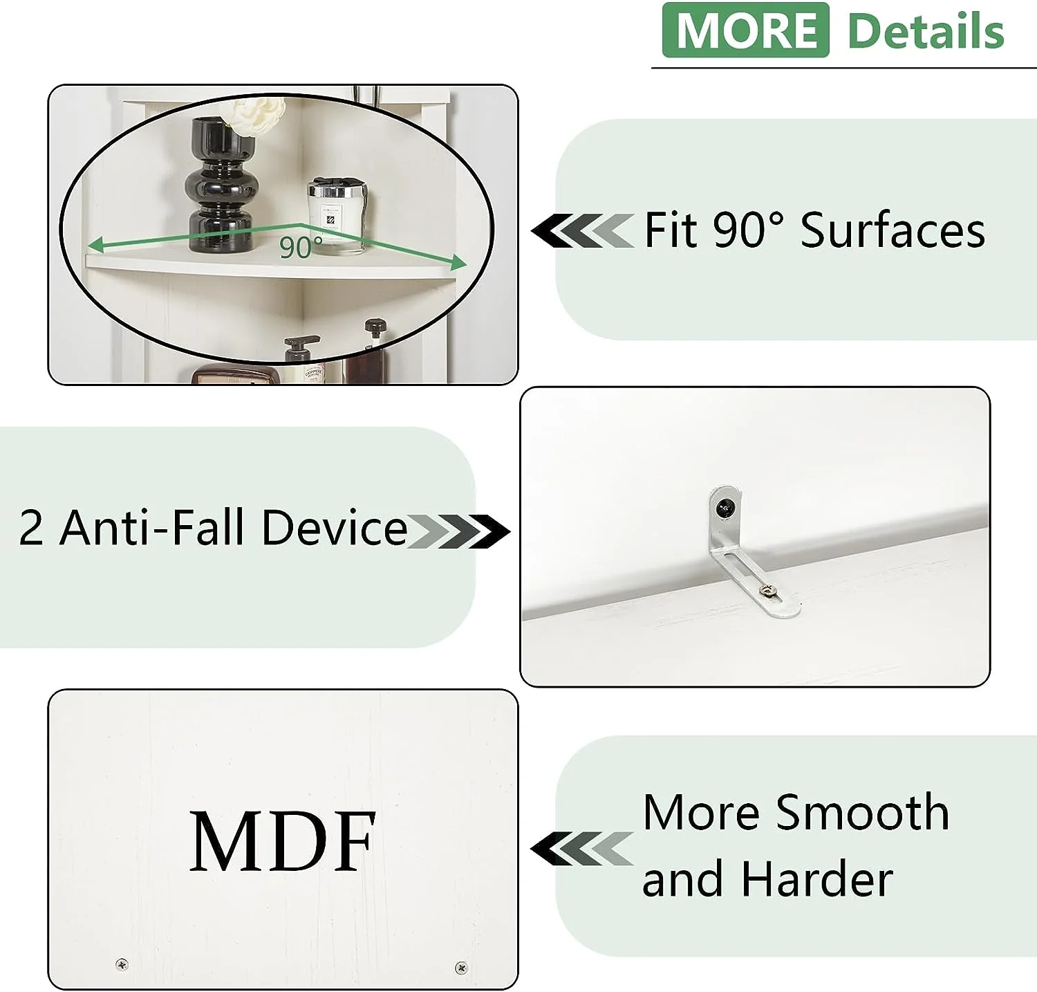 - Multiple Applications: A 90 degrees right angle in the rear of the storage cabinet fits well with the wall. More and more people chose it as an extra storage shelf for the living room, bedroom, kitchen, hallway, and office