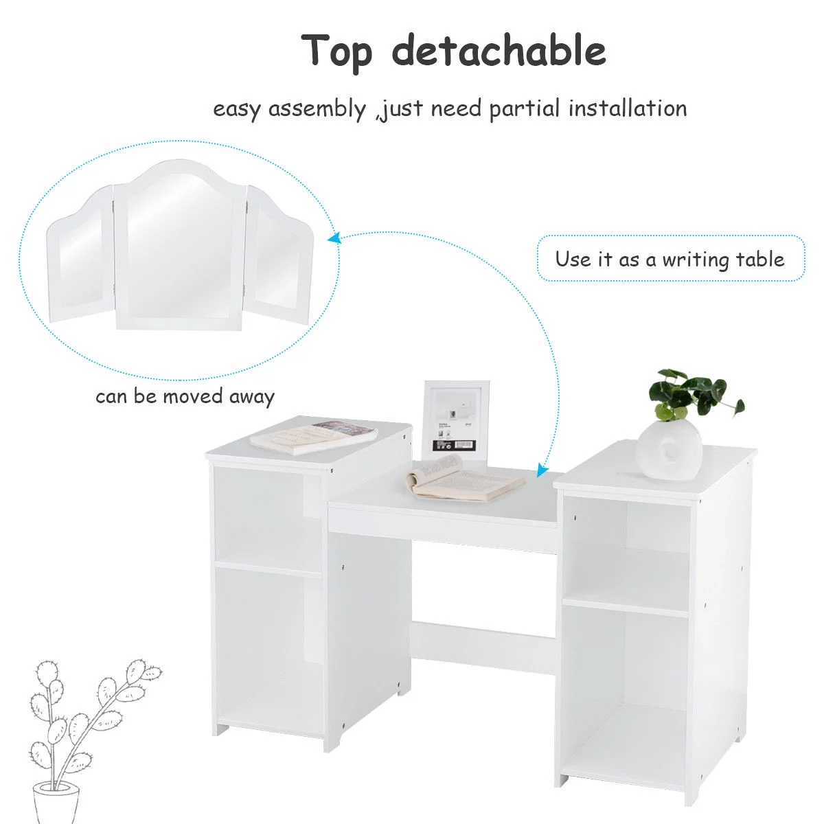 - Multi-functional Design - The top mirror can be easily disassembled and removed to turn to a desk for children studying or a storage organizer for putting things. When the mirror assembled, it can be used as a child vanity for kids to make up.
