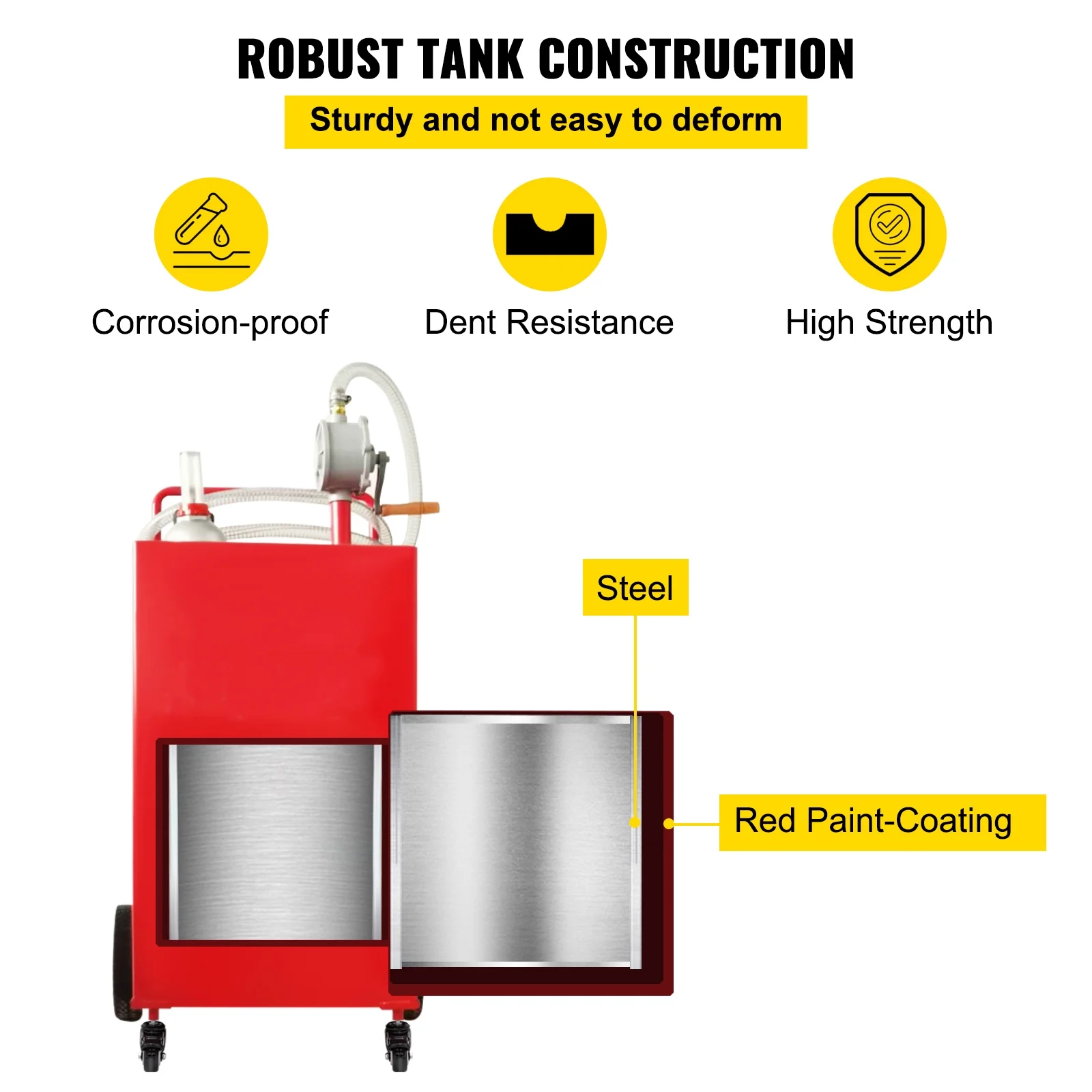 - HighlyI Durable Steel Tank: This pump gas tank is made from durable steel that can handle changing weather conditions and resist UV rays and dents. These high-quality features ensure longevity. Never leave your back.