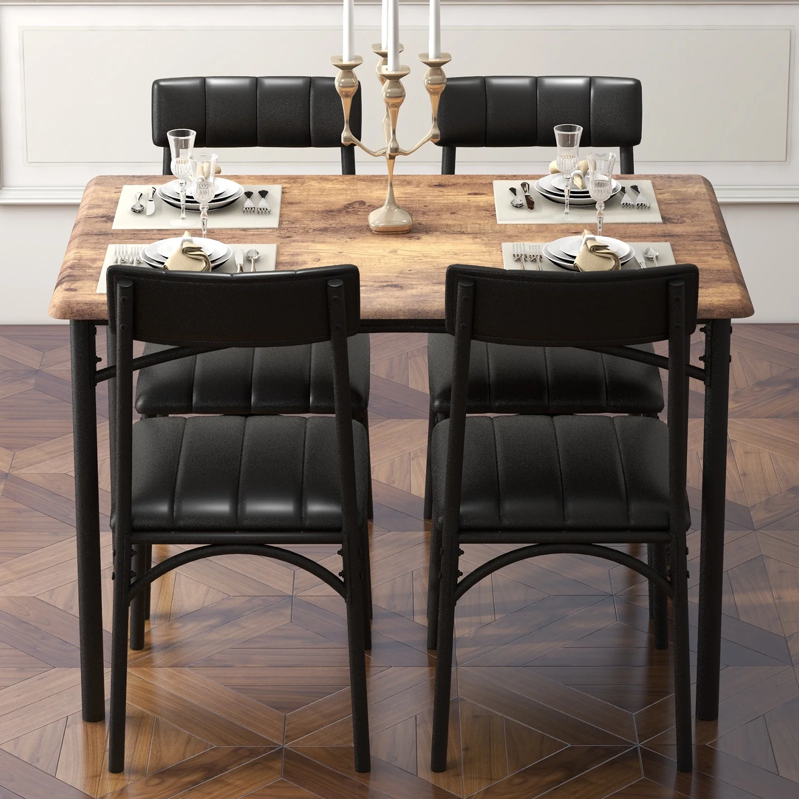 Space Saving Design: Make the most of your space with this 5-piece table chairs set that slides the chairs seamlessly under the table to maximize your limited space.