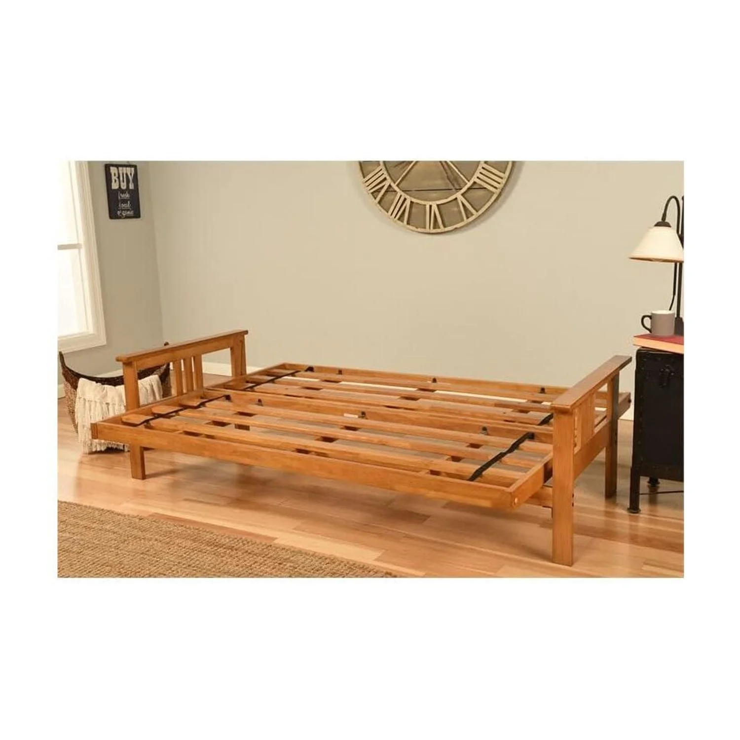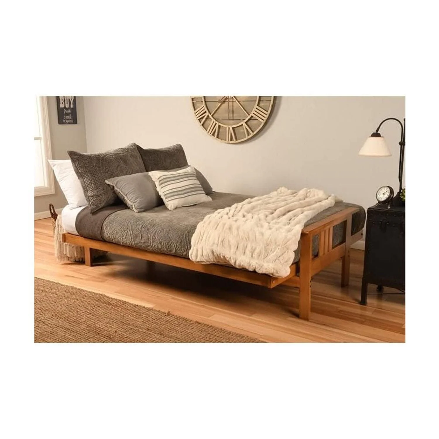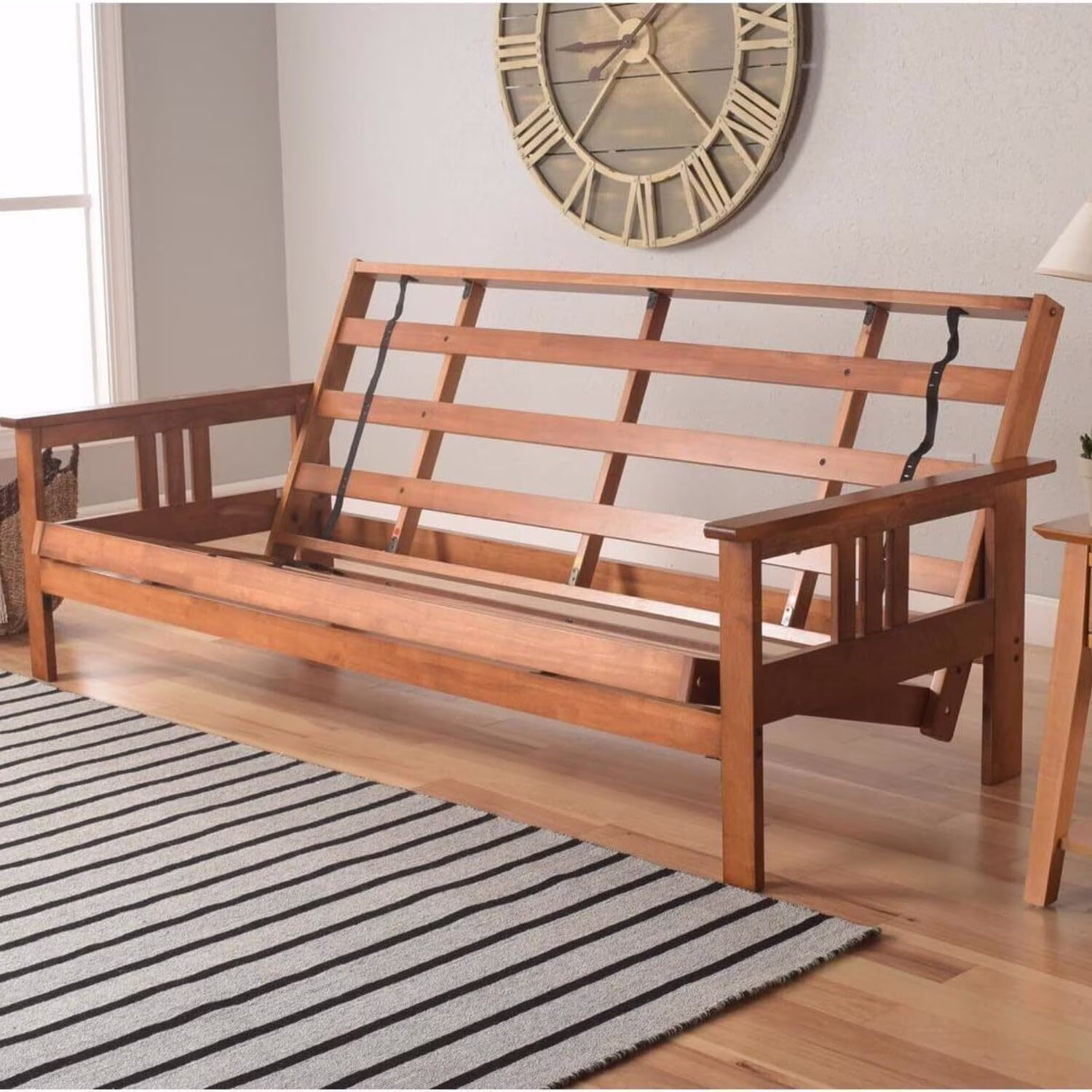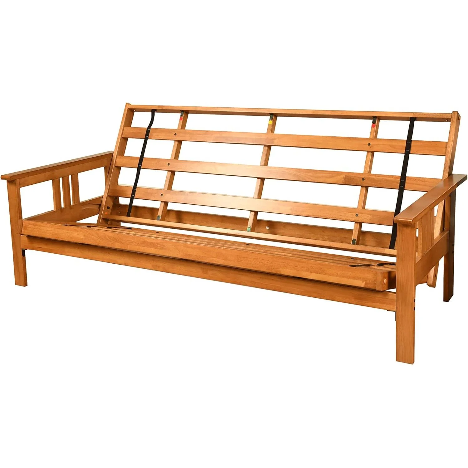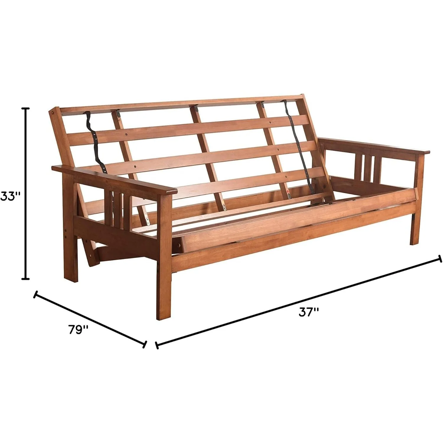 - Durable Solid Hardwood Construction: Built with solid hardwood this futon frame exceptional strength and long-lasting durability. Its mission-style arm design adds a touch of elegance and timeless appeal making it a stylish yet sturdy choice for your living space guest room or any room in need of multifunctional furniture.