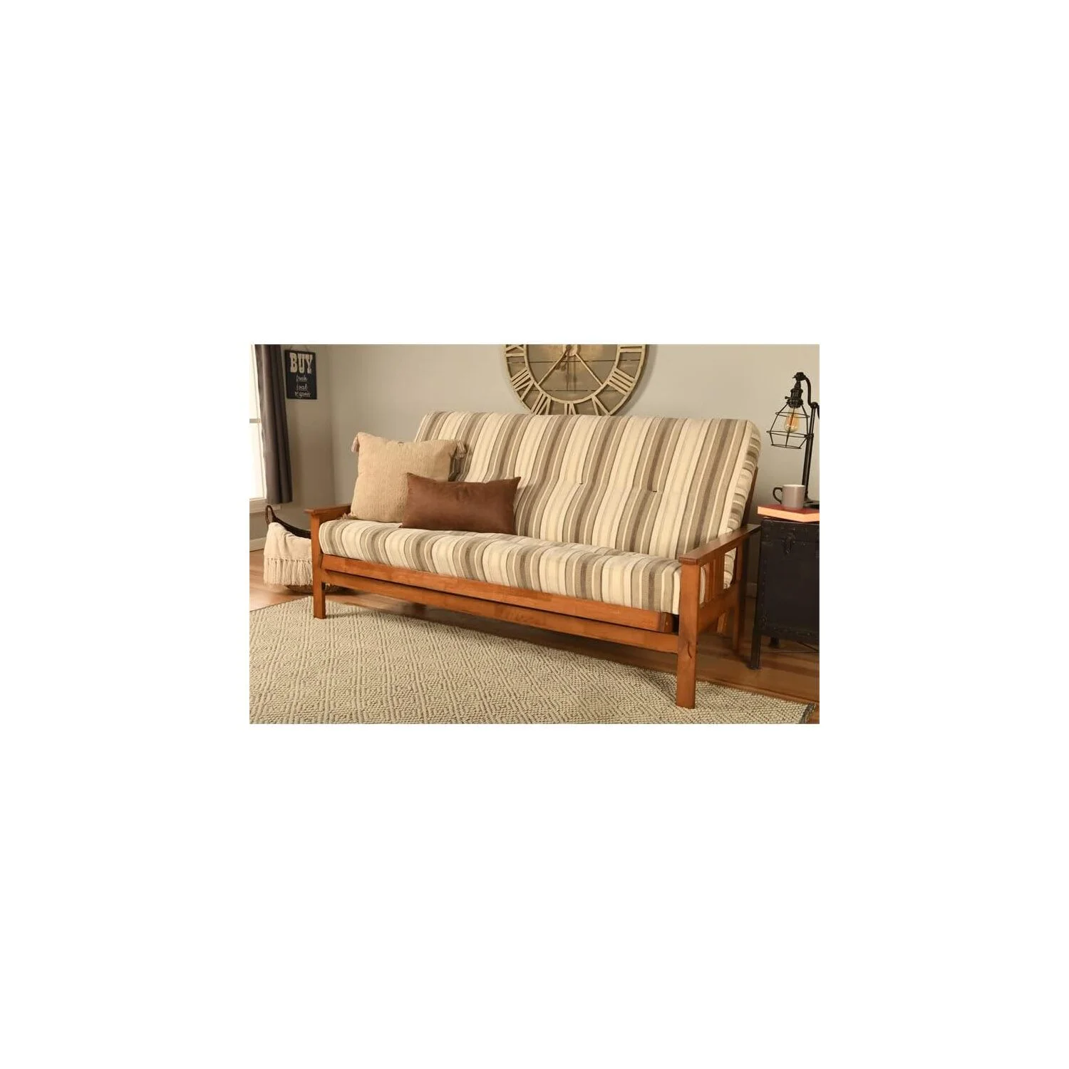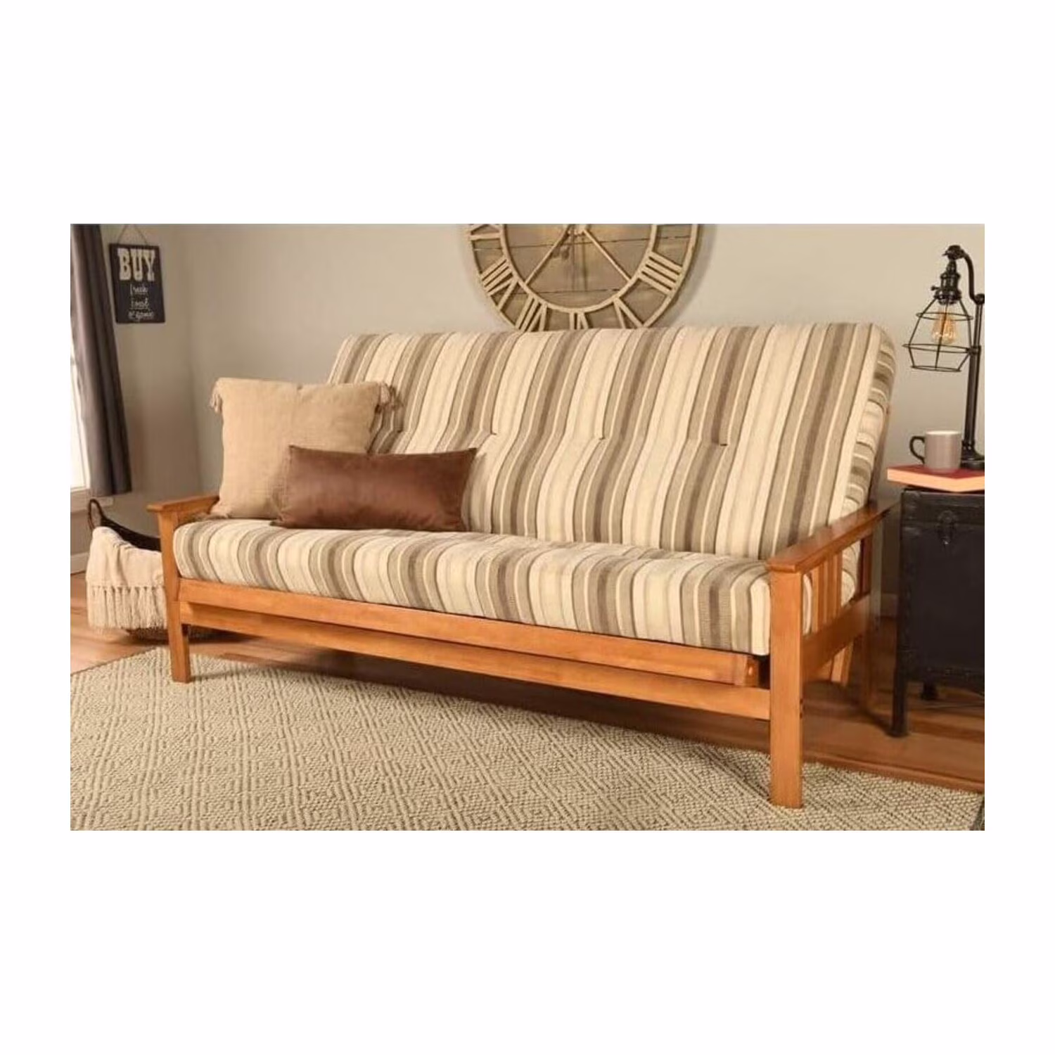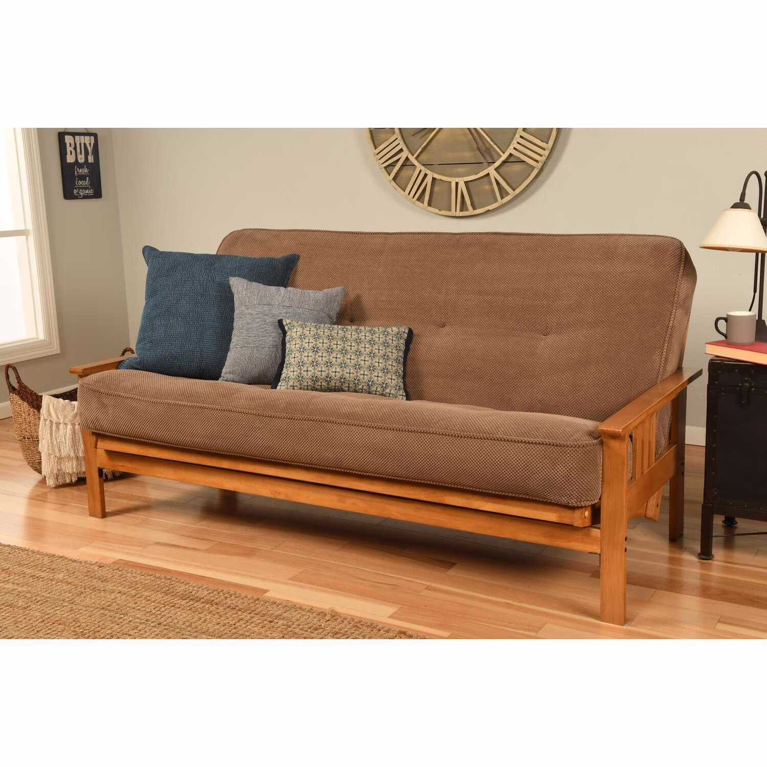 - Classic Mission-Style Aesthetics: Highlighted by its mission-style arms this futon brings a timeless charm to your space. The clean lines and elegant design make it a versatile addition to a wide range of interiors blending seamlessly with traditional contemporary or transitional d?cor themes.