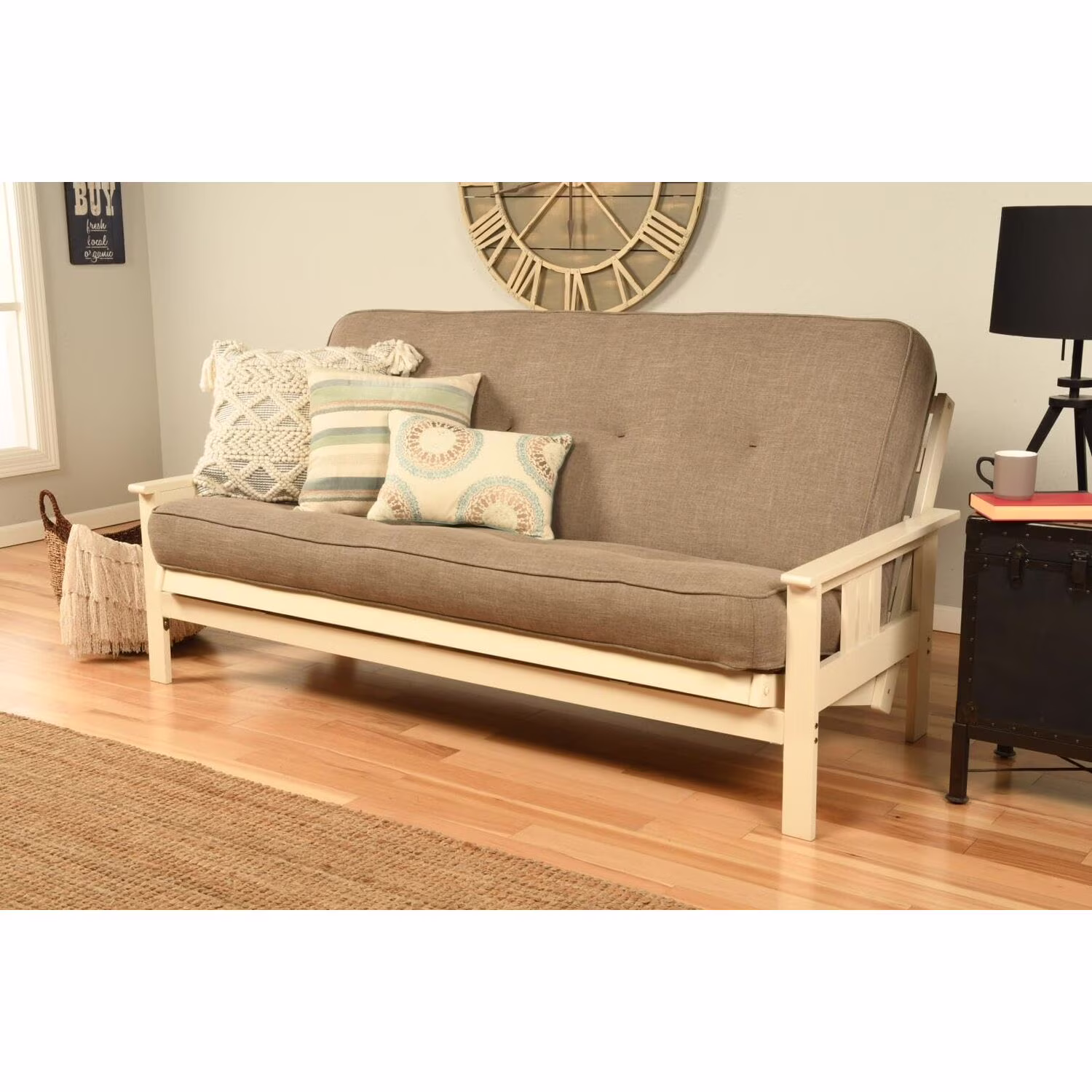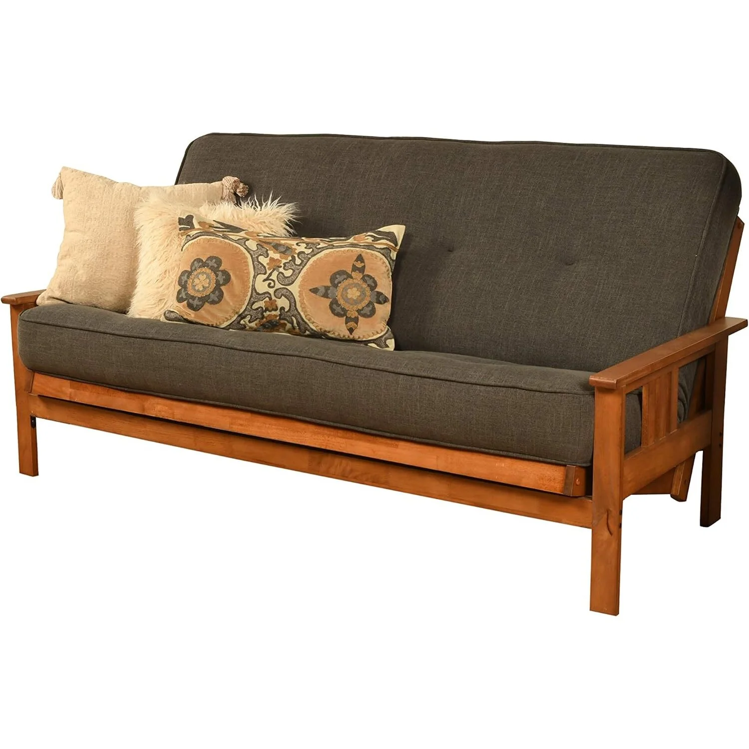 Homestock African Artifacts Full Size Futon Frame Set with Mattress, Easily Converts to Bed, Versatile Design Futon Frame for All Spaces, 33"h x 79"l x 37"d - Color:linen Charcoal, Size:barbados
