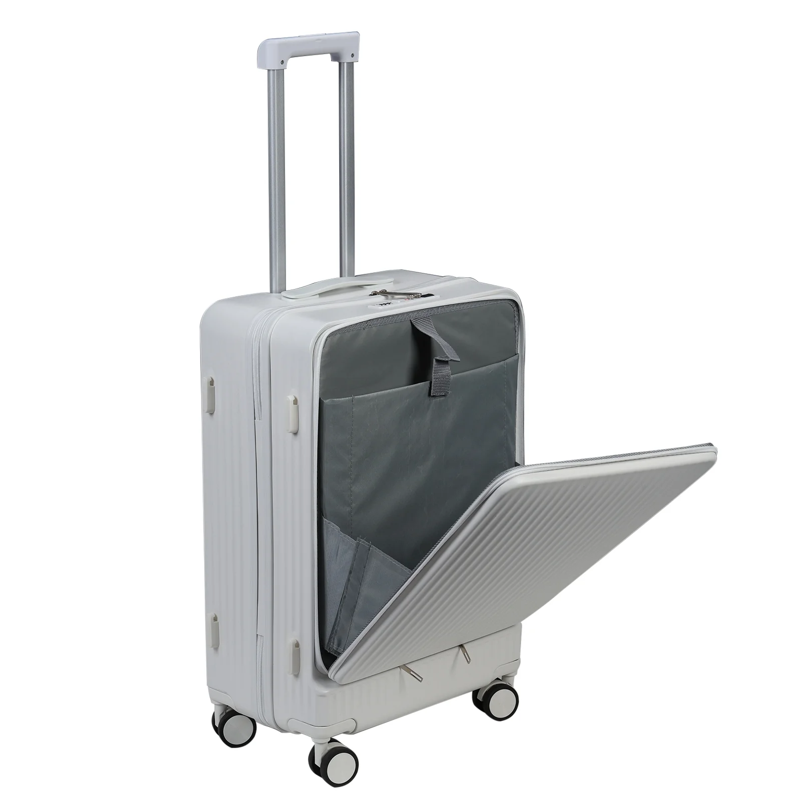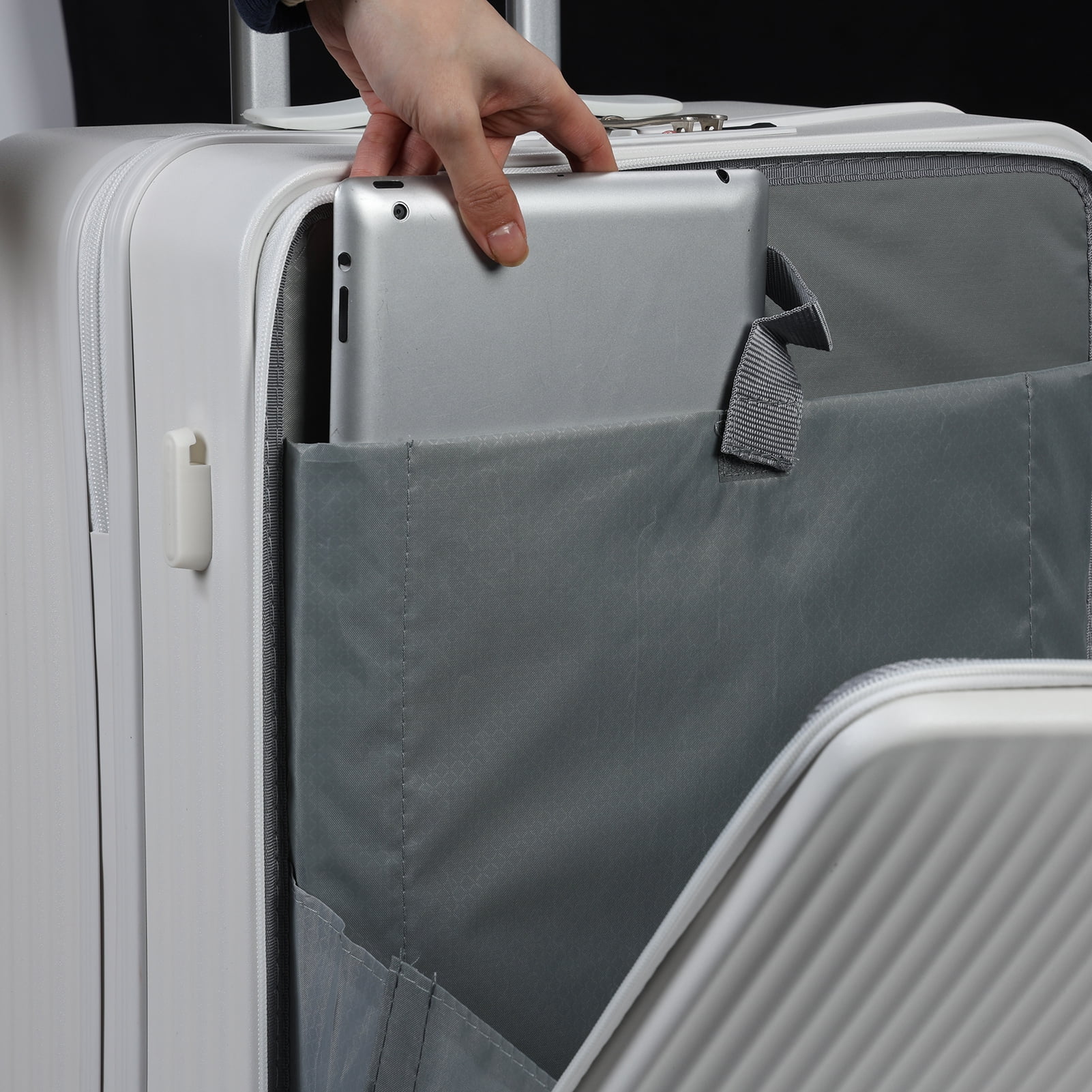 - Front Opening Cover Design: The front open cover is most suitable for placing your laptop or for iPad. You can easily access laptop, just keep the suitcase keep standing without placing your suitcase on the ground.