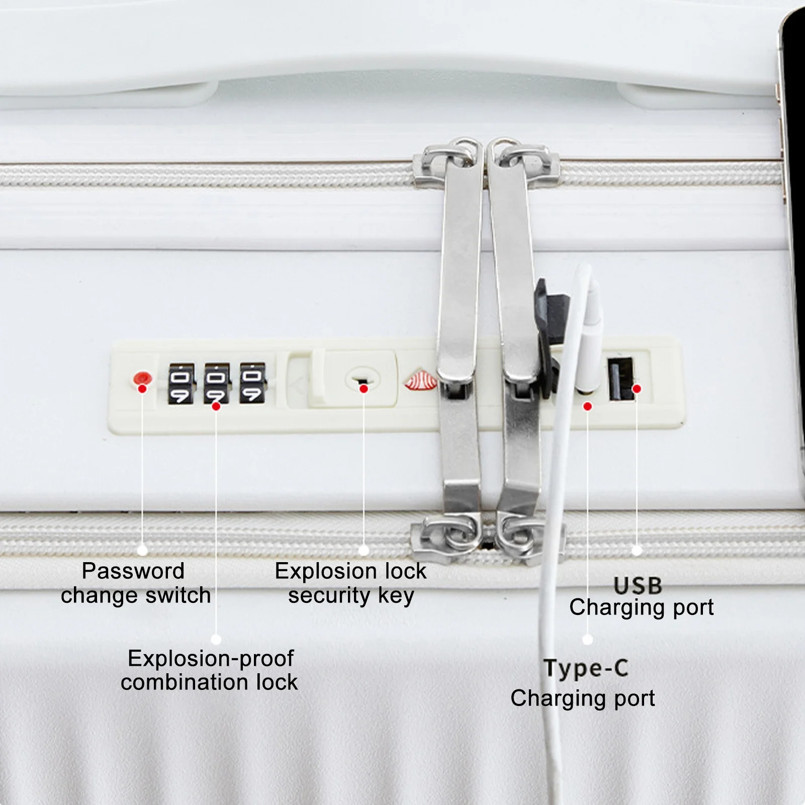 - Built-in USB Type-C Port: The carry-on suitcase features a built-in USB port, Type C port, which provides quick connection to your portable electronic device for a quick charge. Not worried about the phone is out of power anymore.