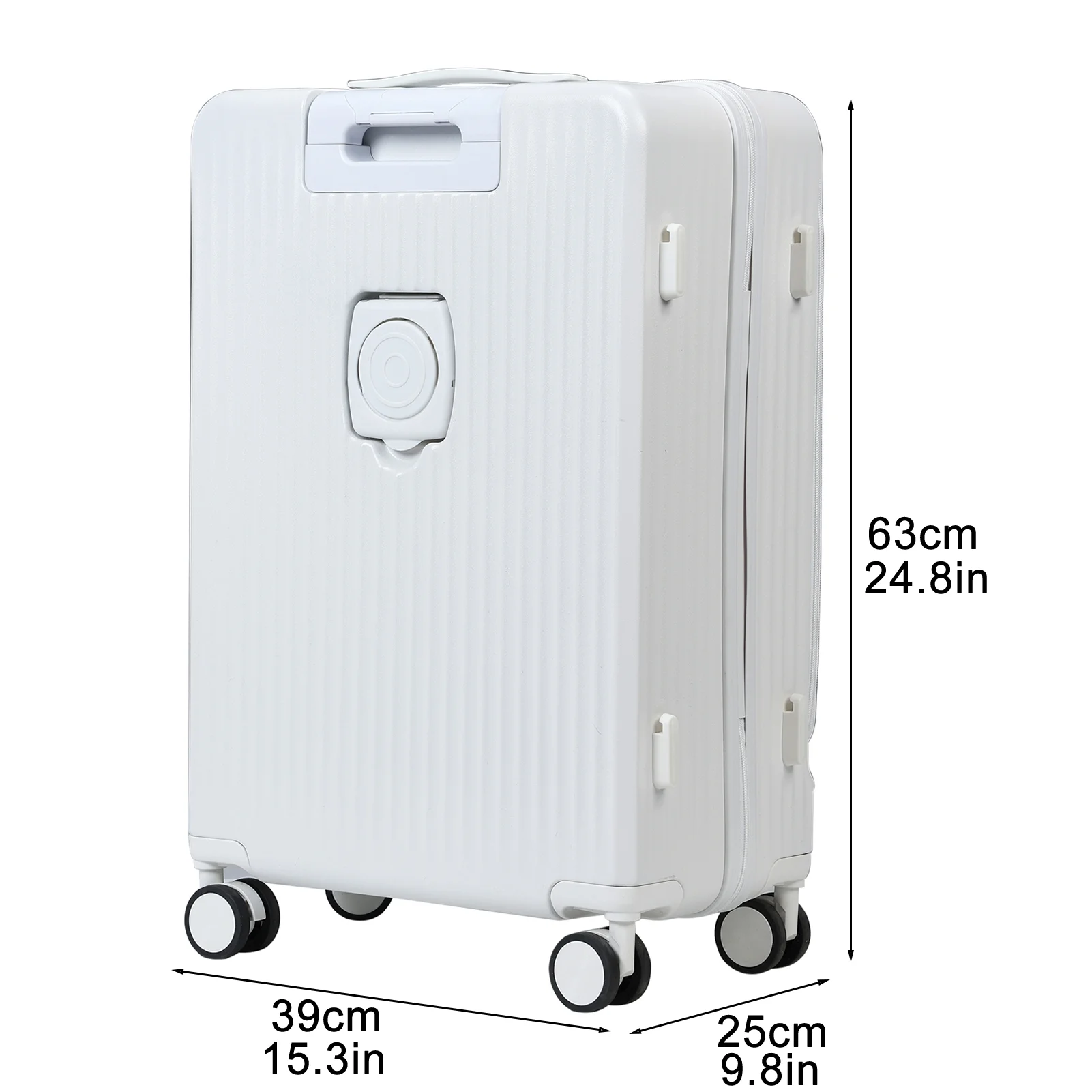 24 in Checked Luggage with Front Pocket, USB Charging Port, Built - in Lock Carry on Suitcase, Cup Holder and Phone Holder, Medium Hardside Suitcase with Spinner Wheels, White