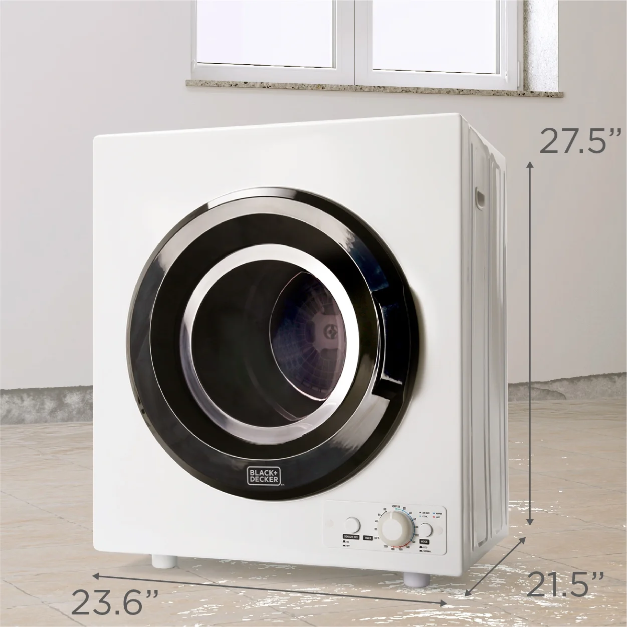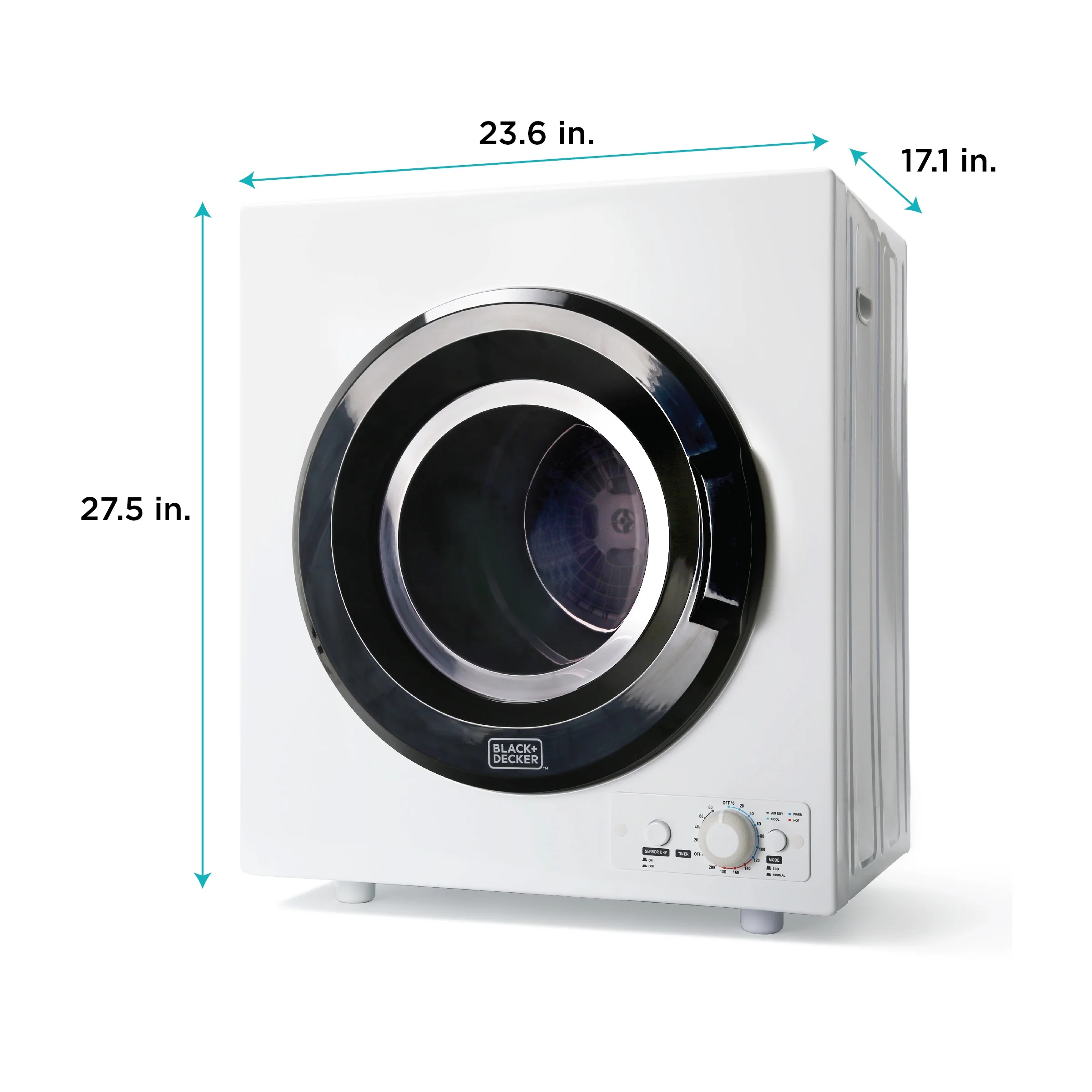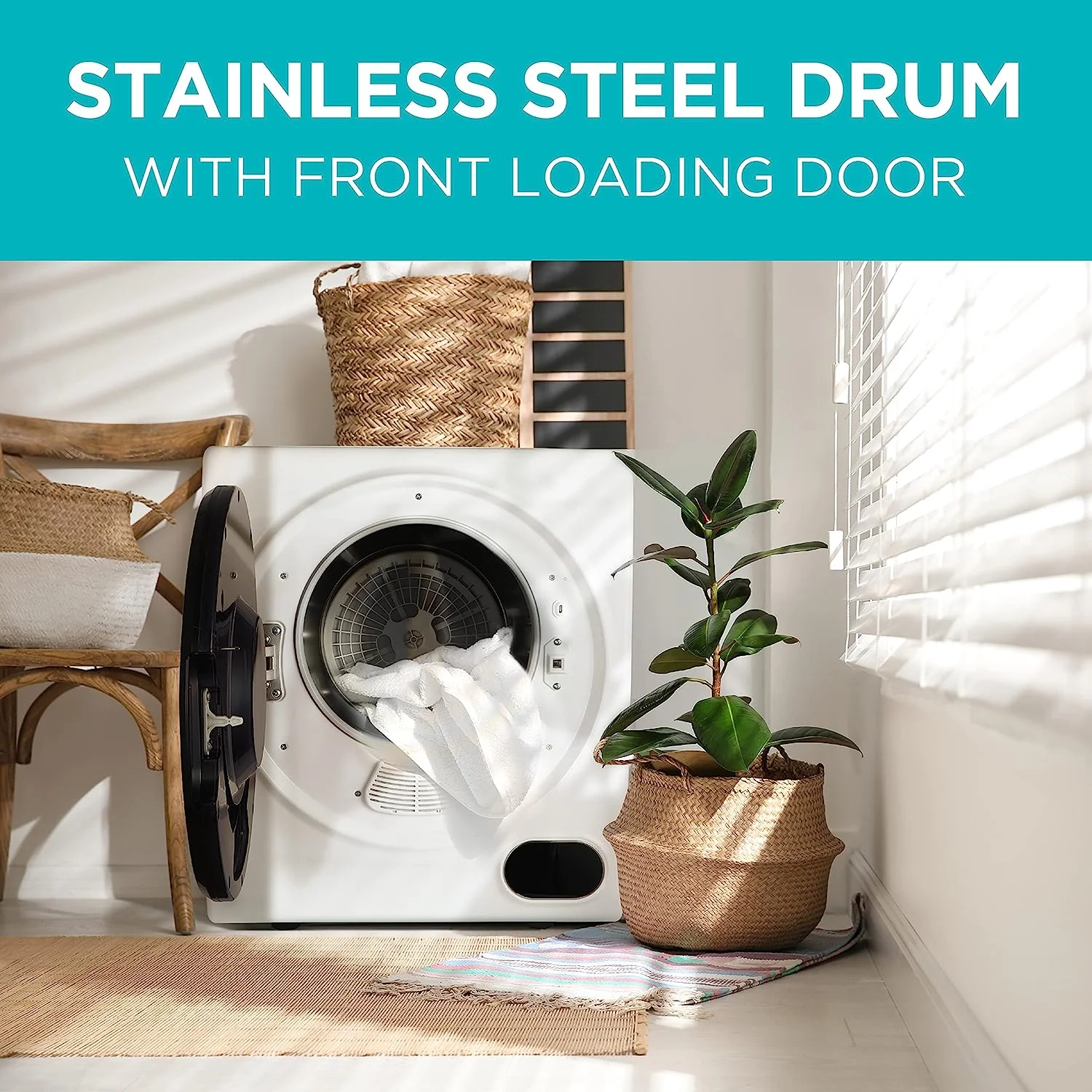 - VENTED & POWERFUL: This vented compact dryer (23.6�� x 21.5�� x 27.5��) is ideal for smaller spaces and apartments. At 49.5 lbs., this clothes dryer has an impressive load volume of 13.2 lbs., inside capacity of 3.5 cu. ft., and requires no electrical hard writing with a 3-prong plug and access to a standard 120V standard outlet, but needs to be vented using a 4�� duct.