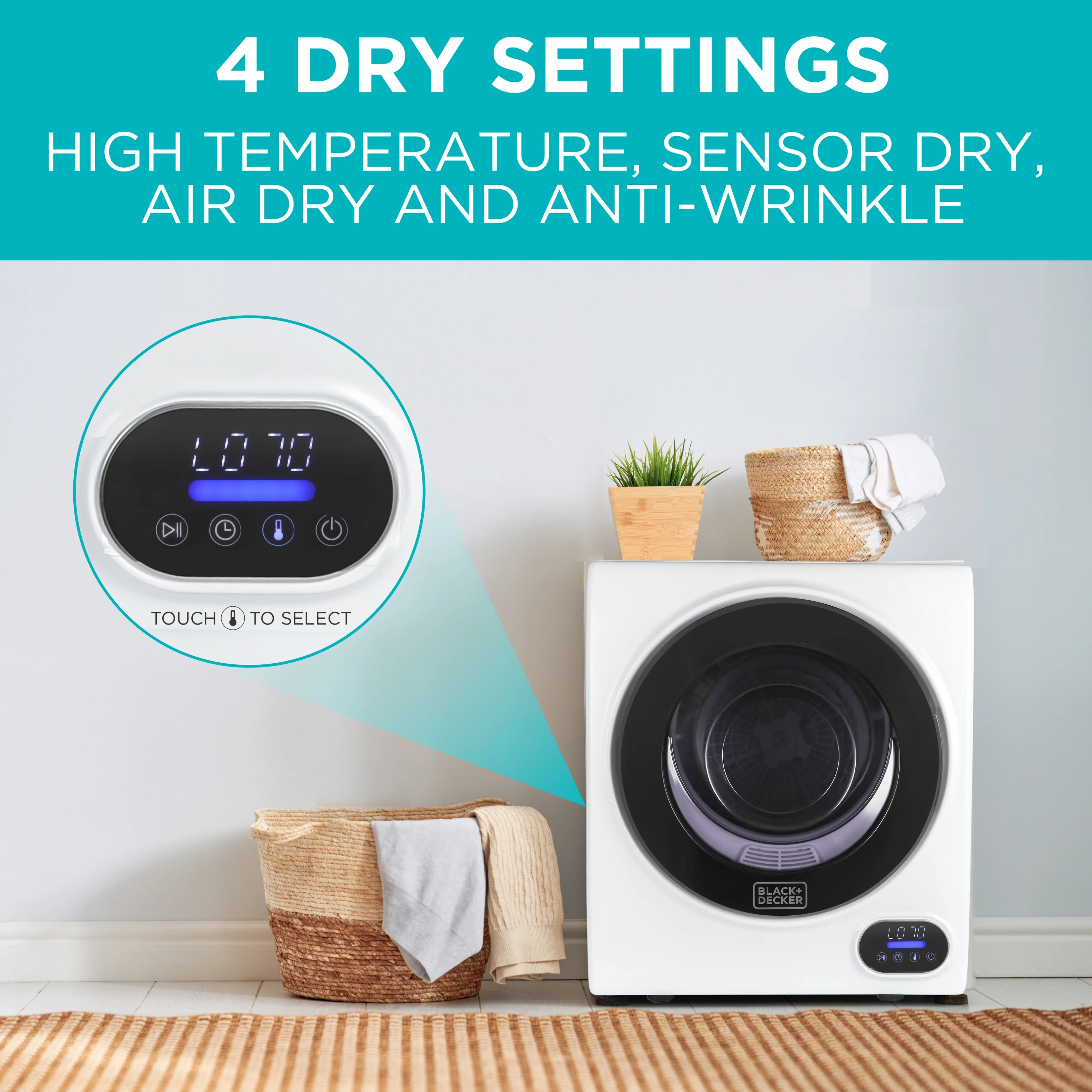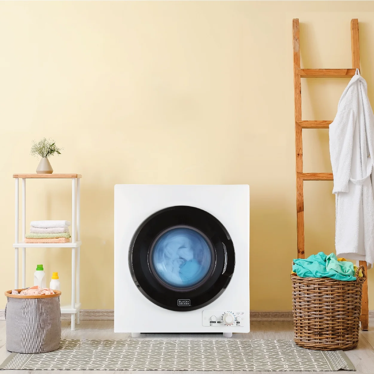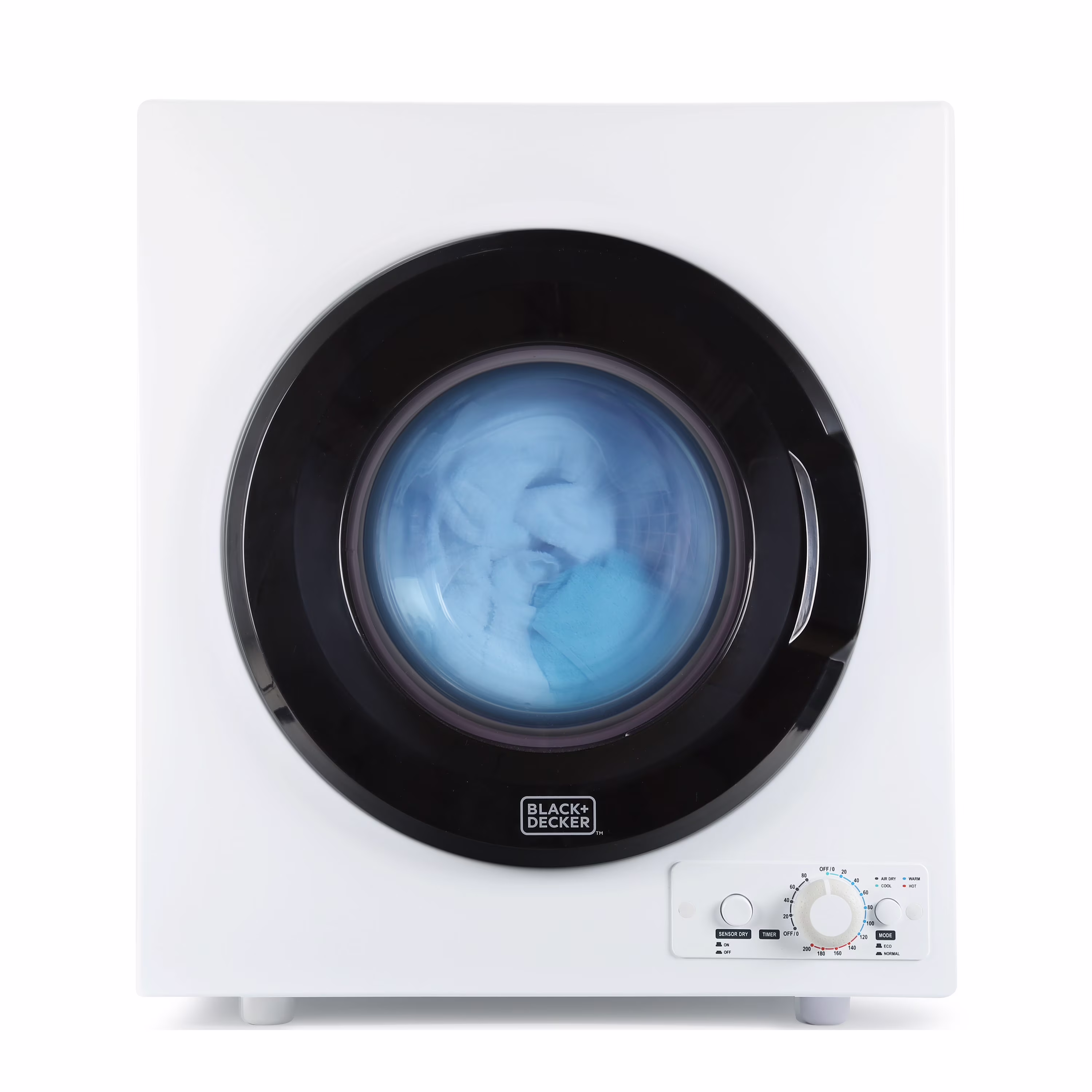 - VENTED & POWERFUL: This vented compact dryer (23.6�� x 21.5�� x 27.5��) is ideal for smaller spaces and apartments. At 49.5 lbs., this clothes dryer has an impressive load volume of 13.2 lbs., inside capacity of 3.5 cu. ft., and requires no electrical hard writing with a 3-prong plug and access to a standard 120V standard outlet, but needs to be vented using a 4�� duct.