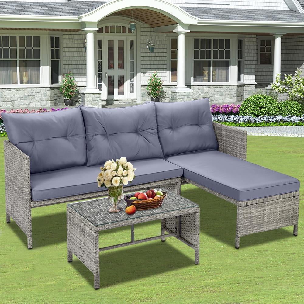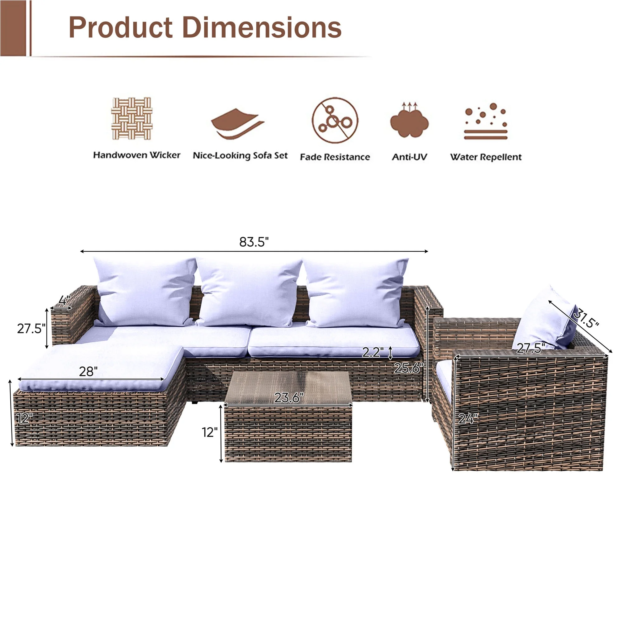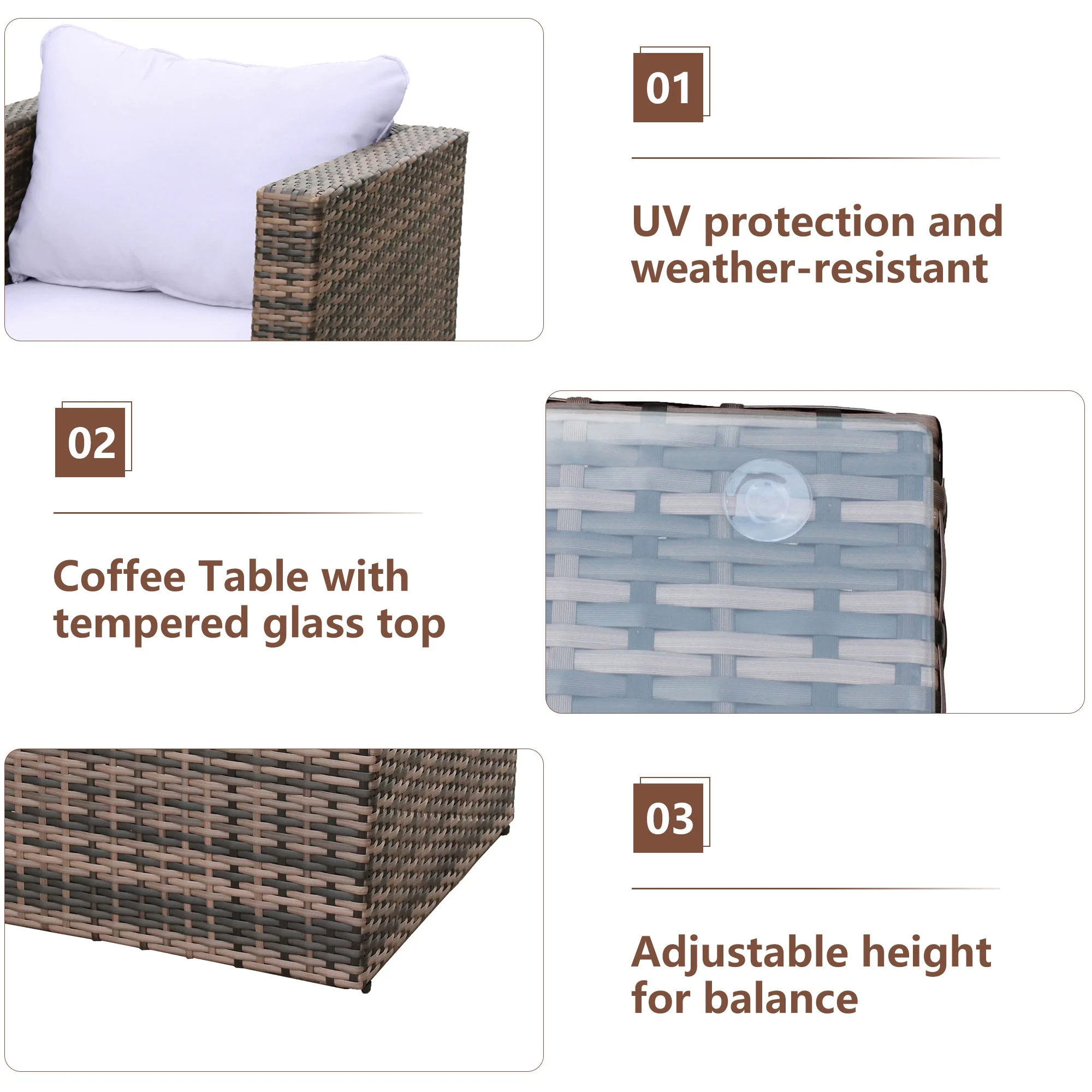 [Comfortable Sofa with Cushions] - Our rattan sofa set comes with padded seat cushions and thick back cushions, which are filled with an elastic sponge to provide the ultimate comfort to you. You can sit or lie on the sofa to help you forget the fatigue of the day.