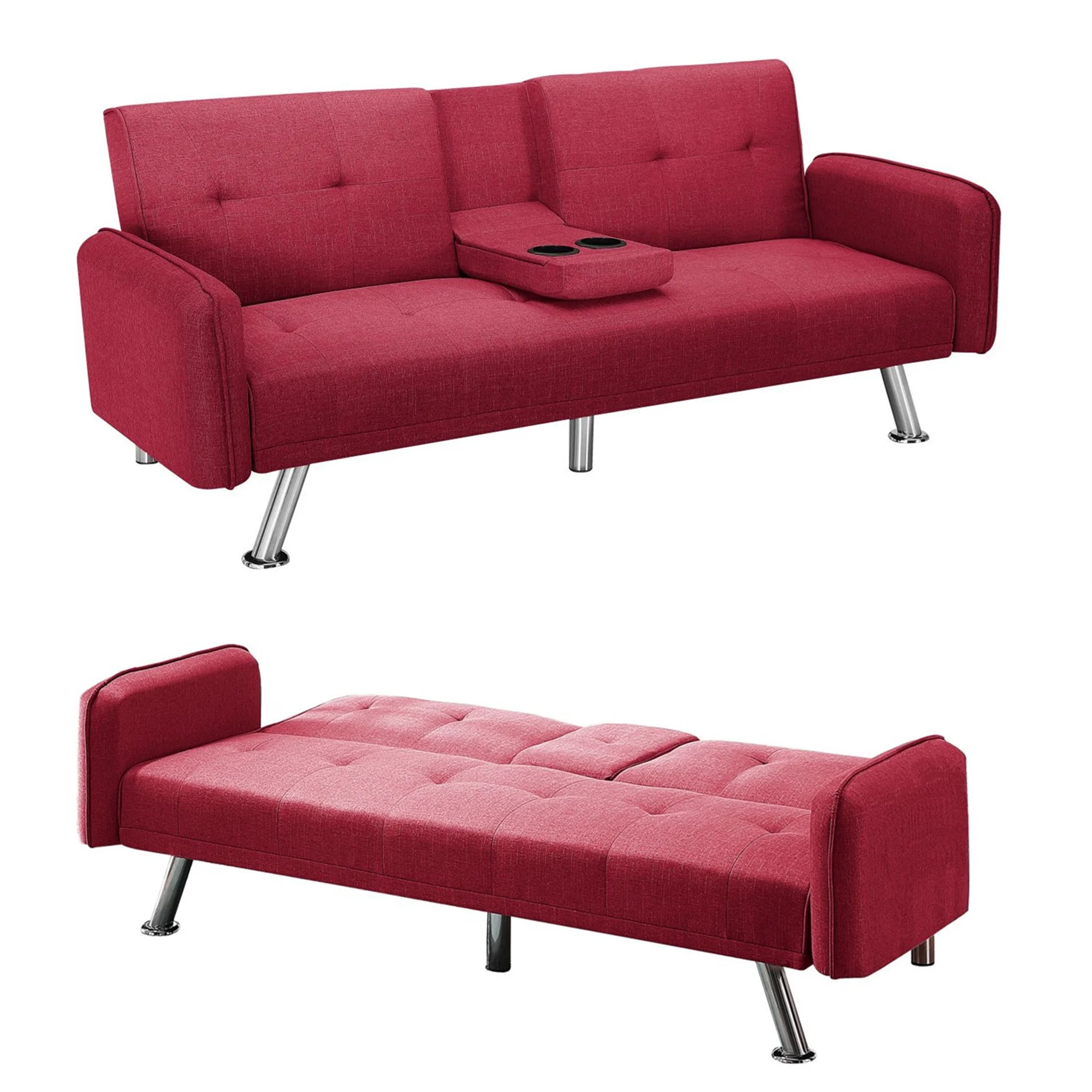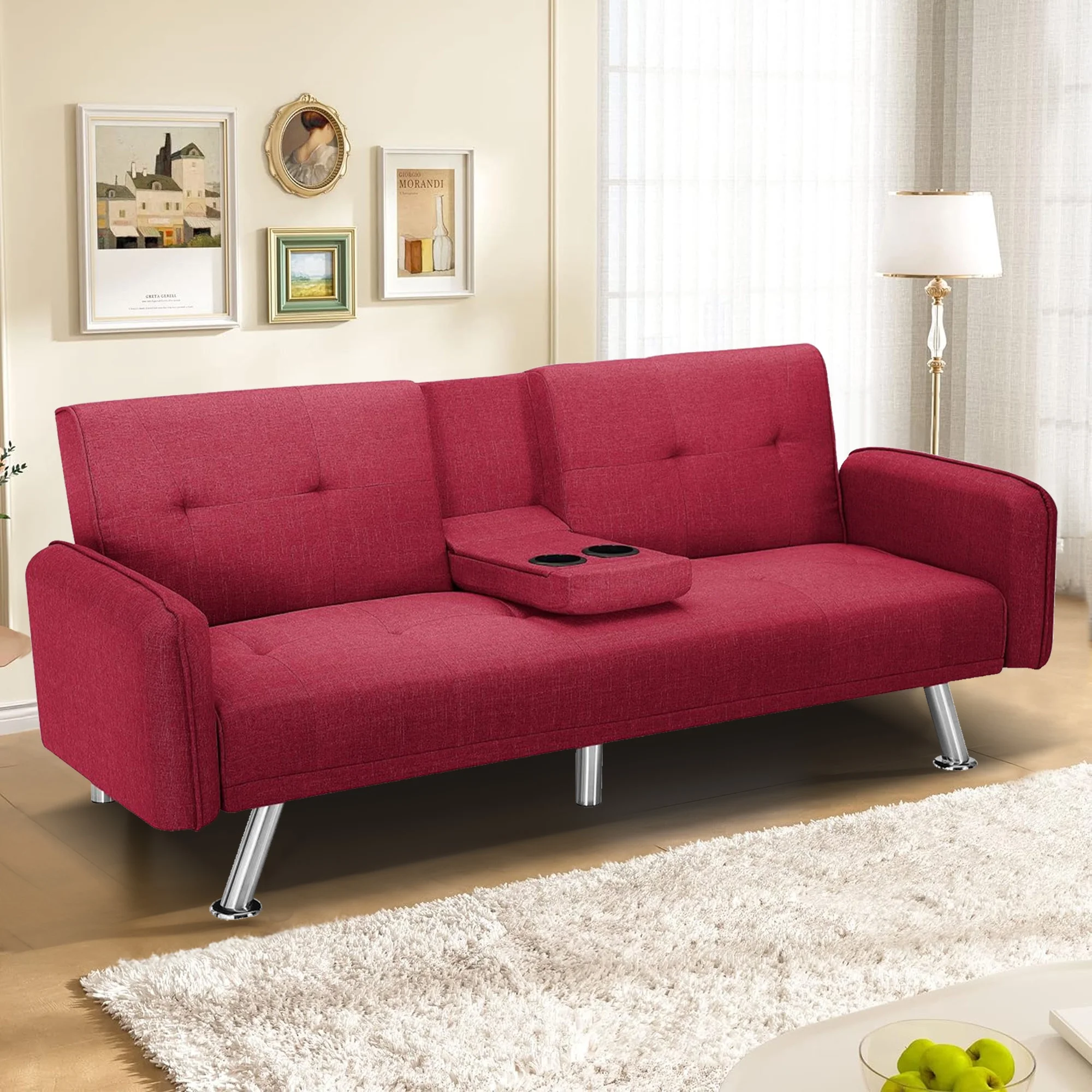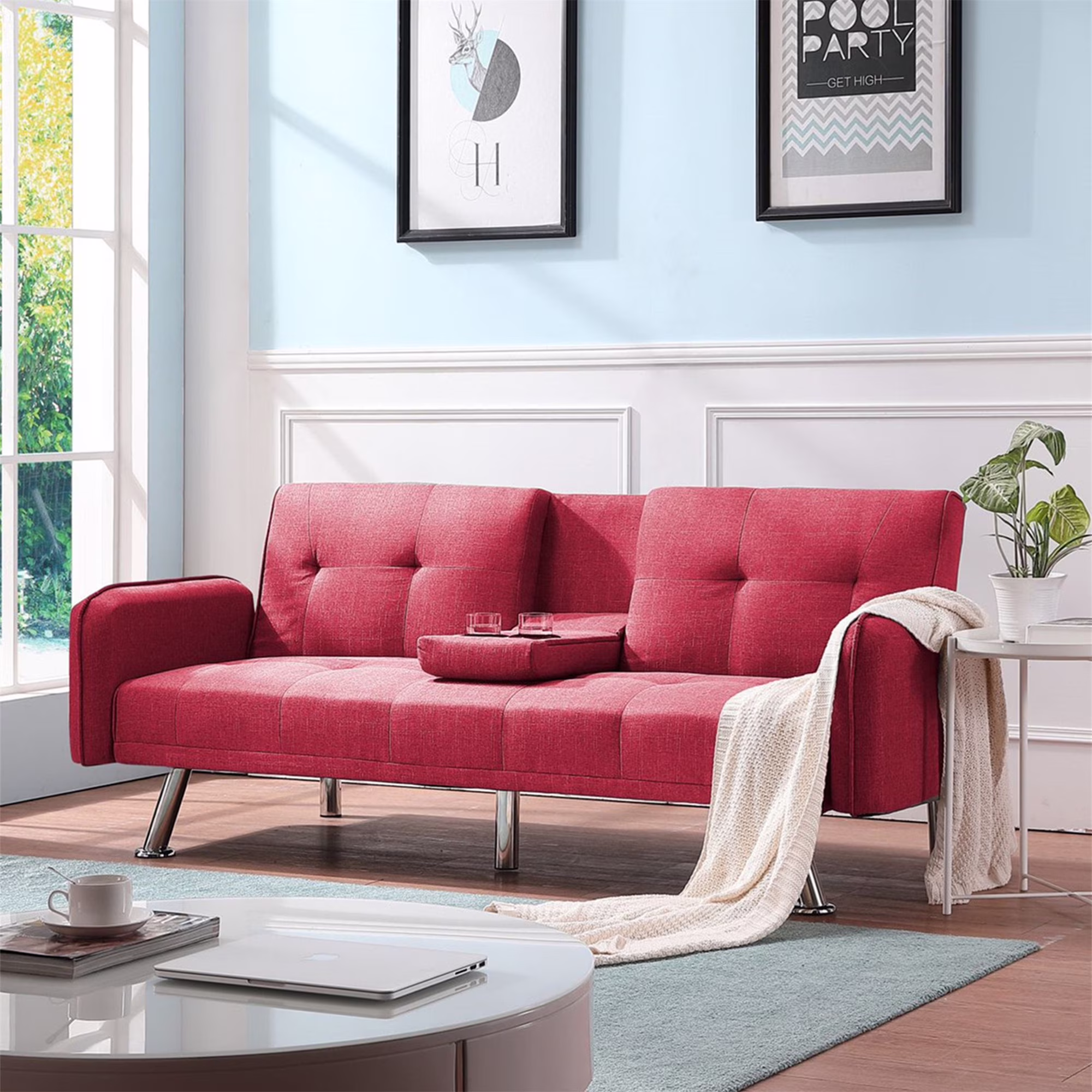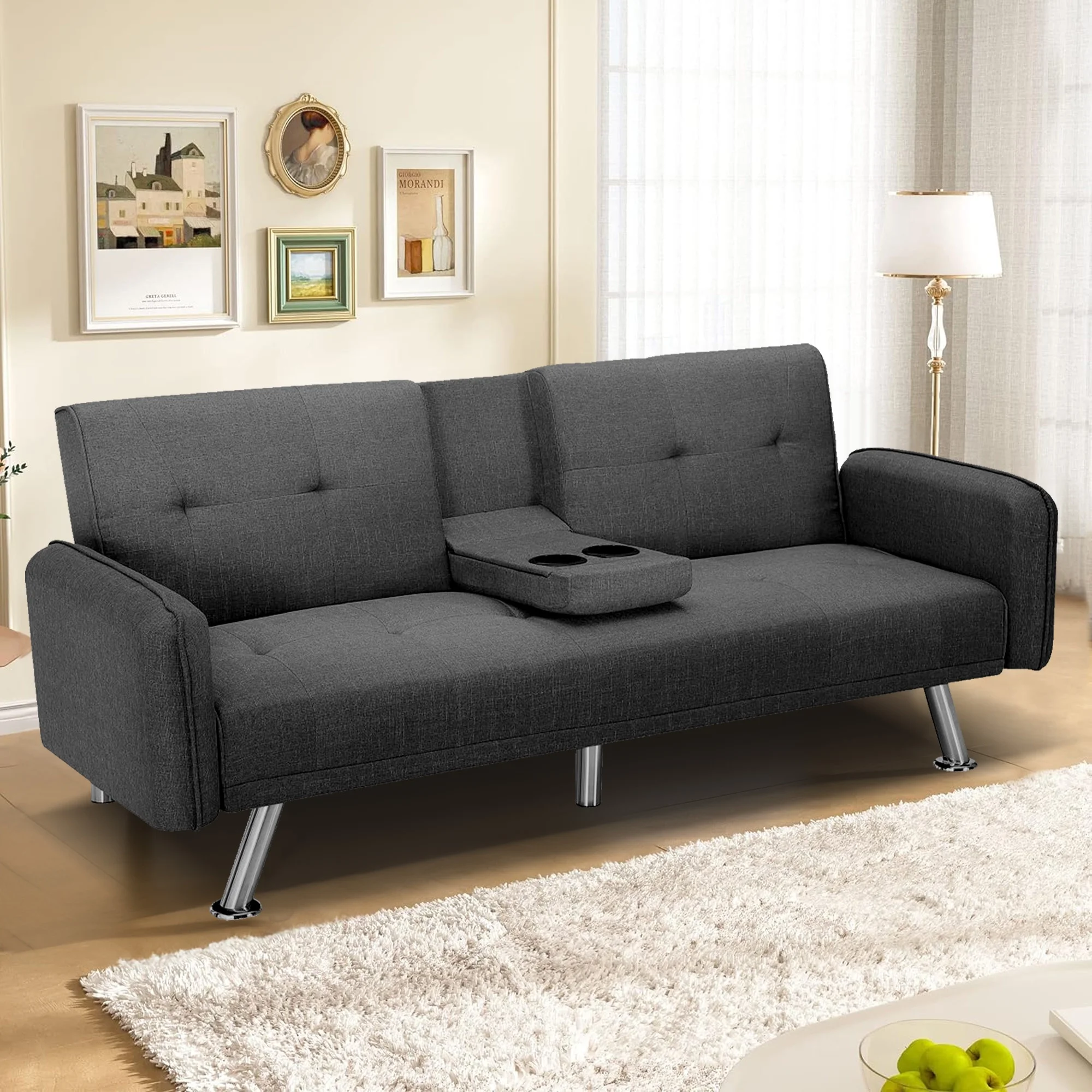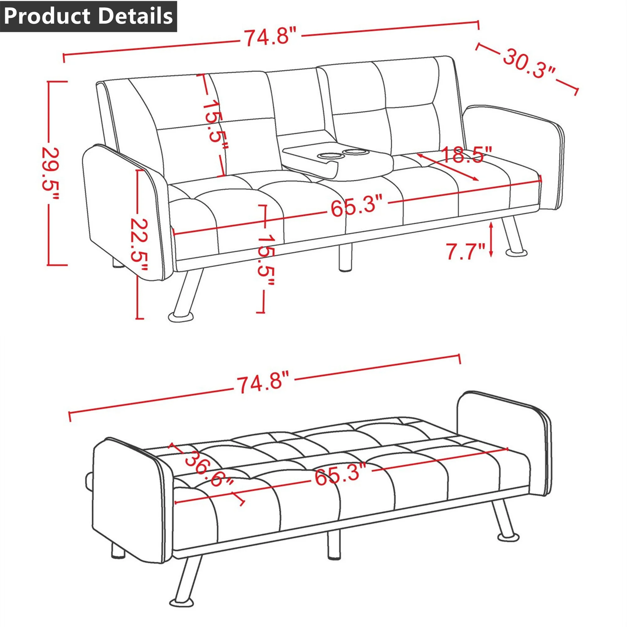 - FUTON WITH HIDDEN CUP HOLDER - Folding the middle armrest with 2 cup holders in the middle of the sofa allows you and your family and your friends to enjoy drinks while relaxing. It can make it more convenient for you and your family to drink while watching a sports game.