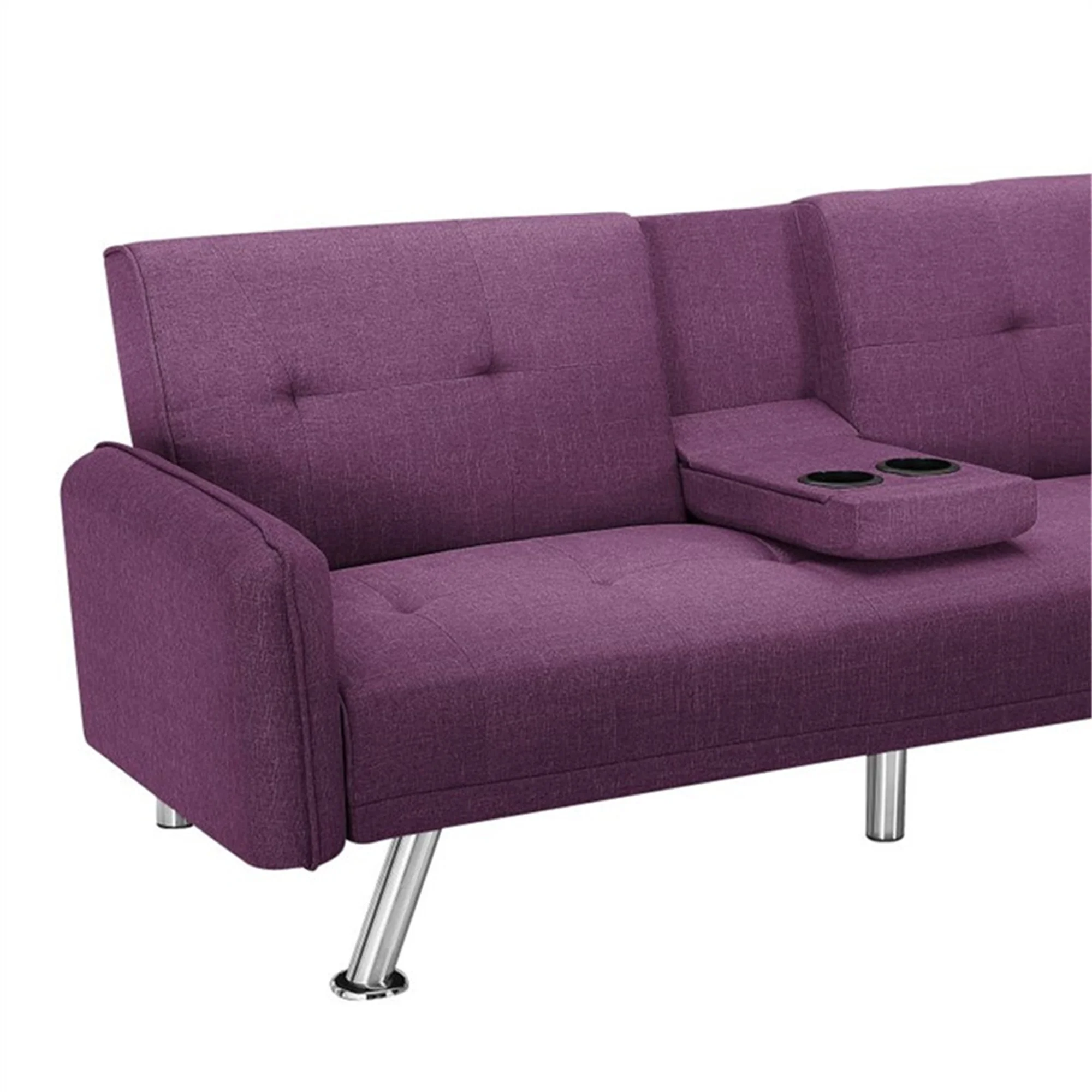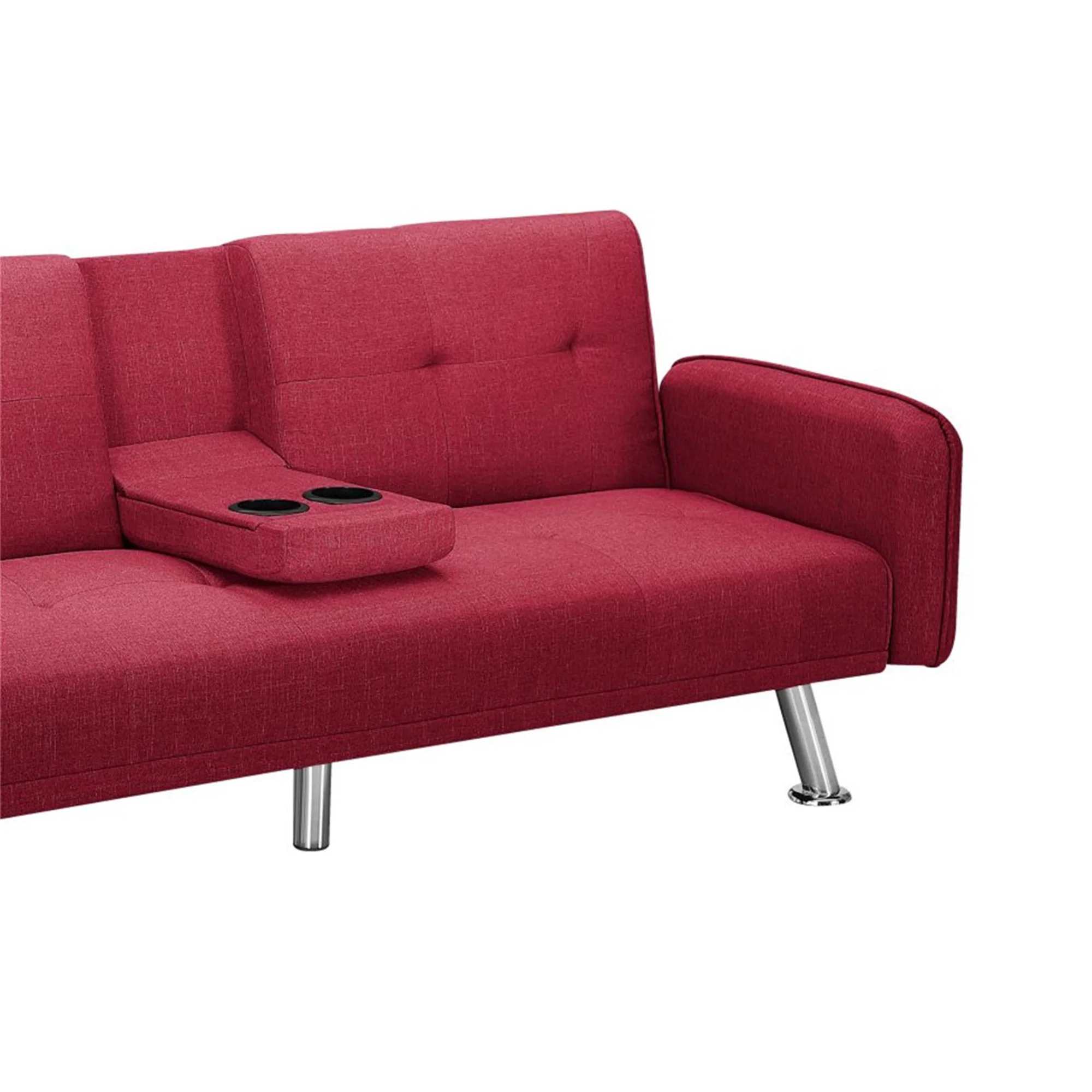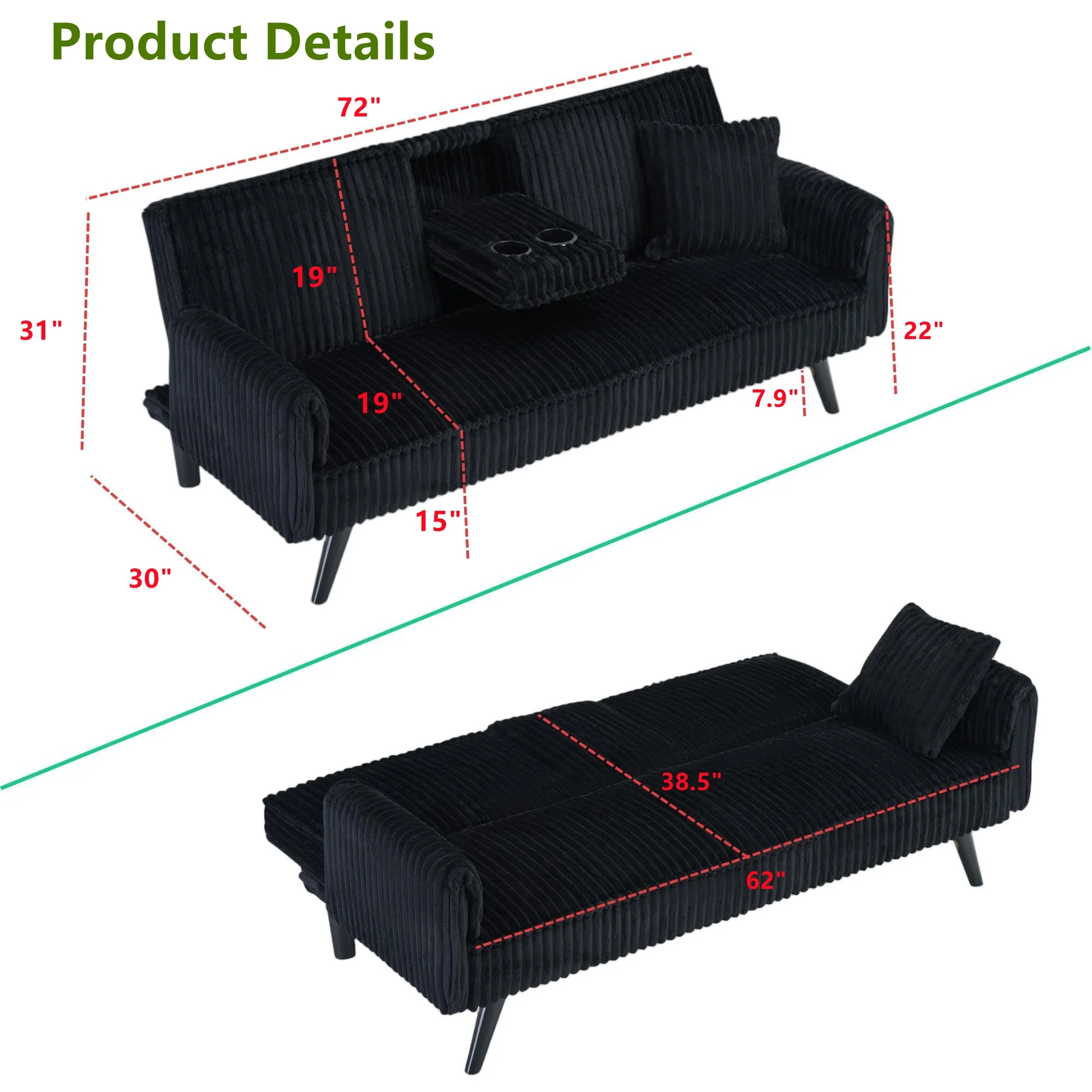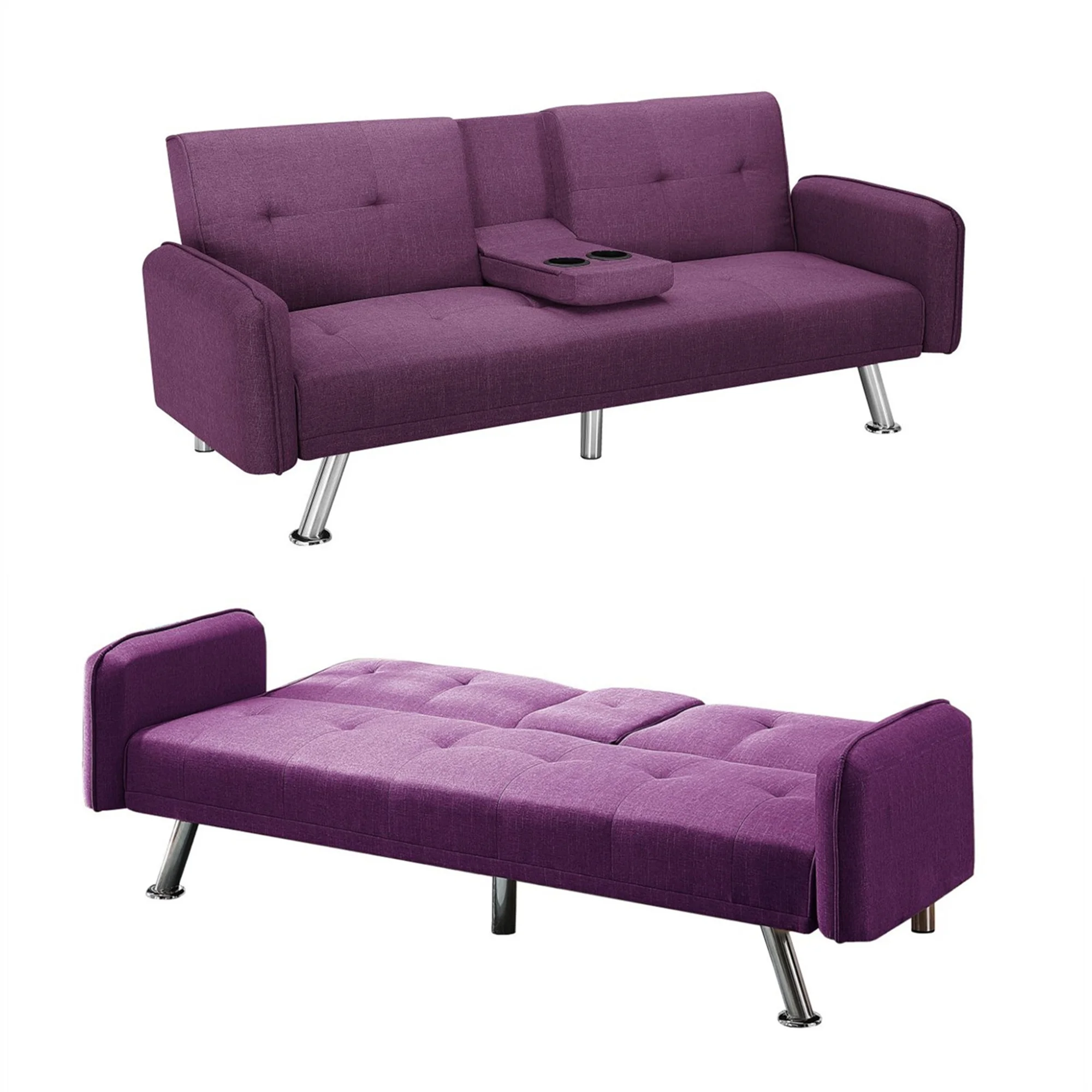 - FUTON WITH HIDDEN CUP HOLDER - Folding the middle armrest with 2 cup holders in the middle of the sofa allows you and your family and your friends to enjoy drinks while relaxing. It can make it more convenient for you and your family to drink while watching a sports game.