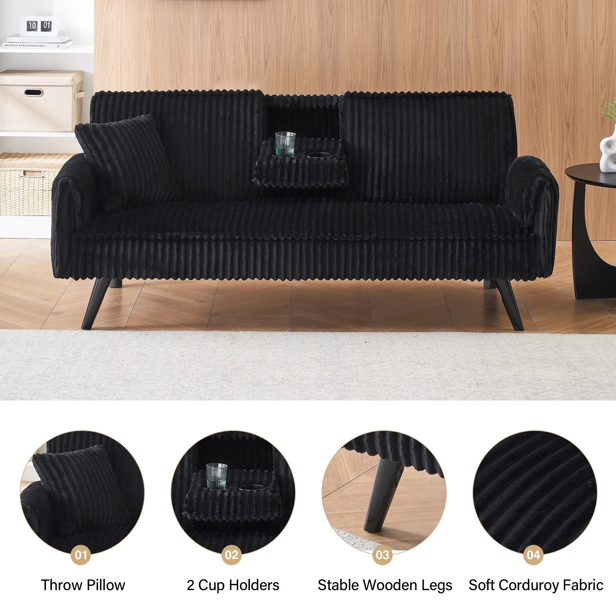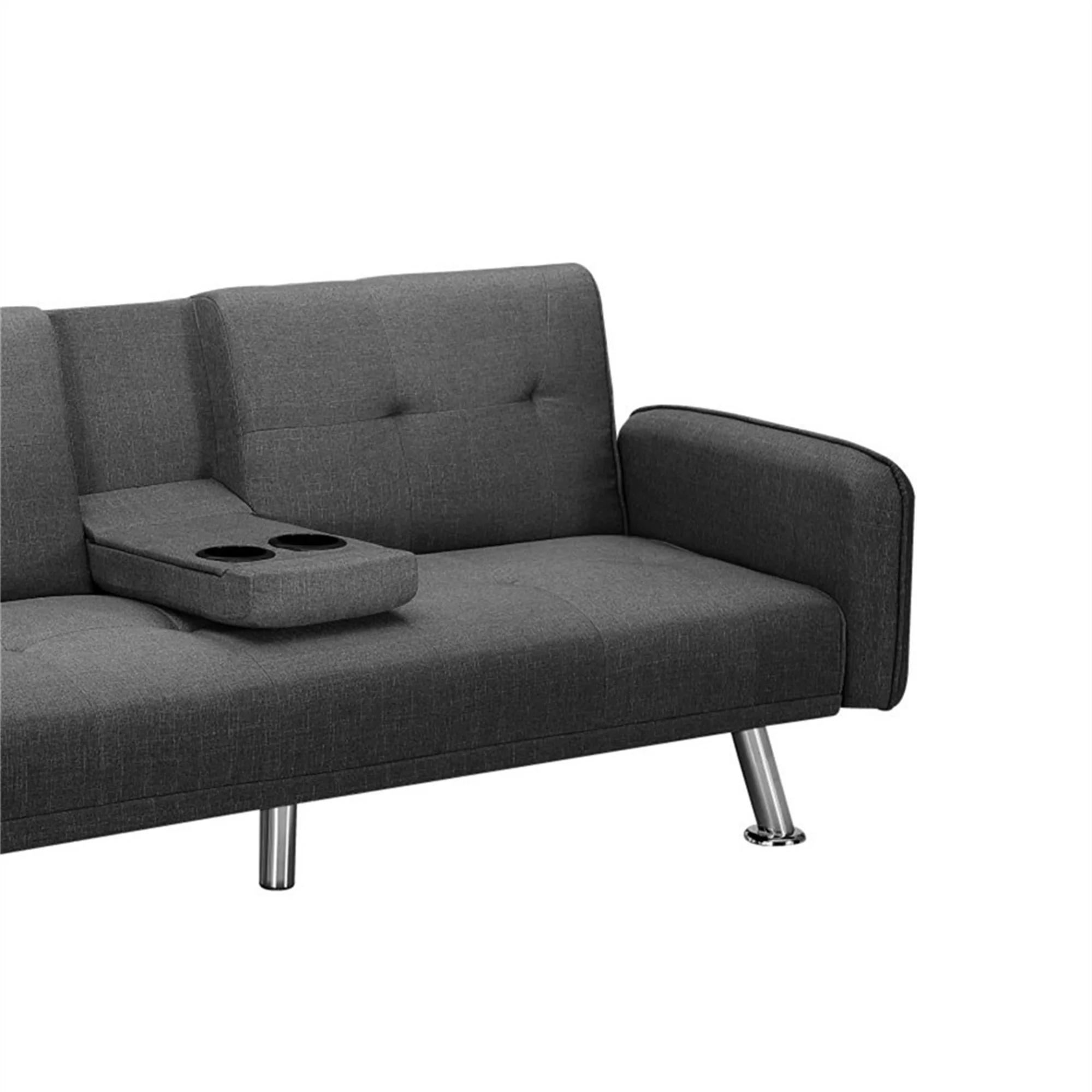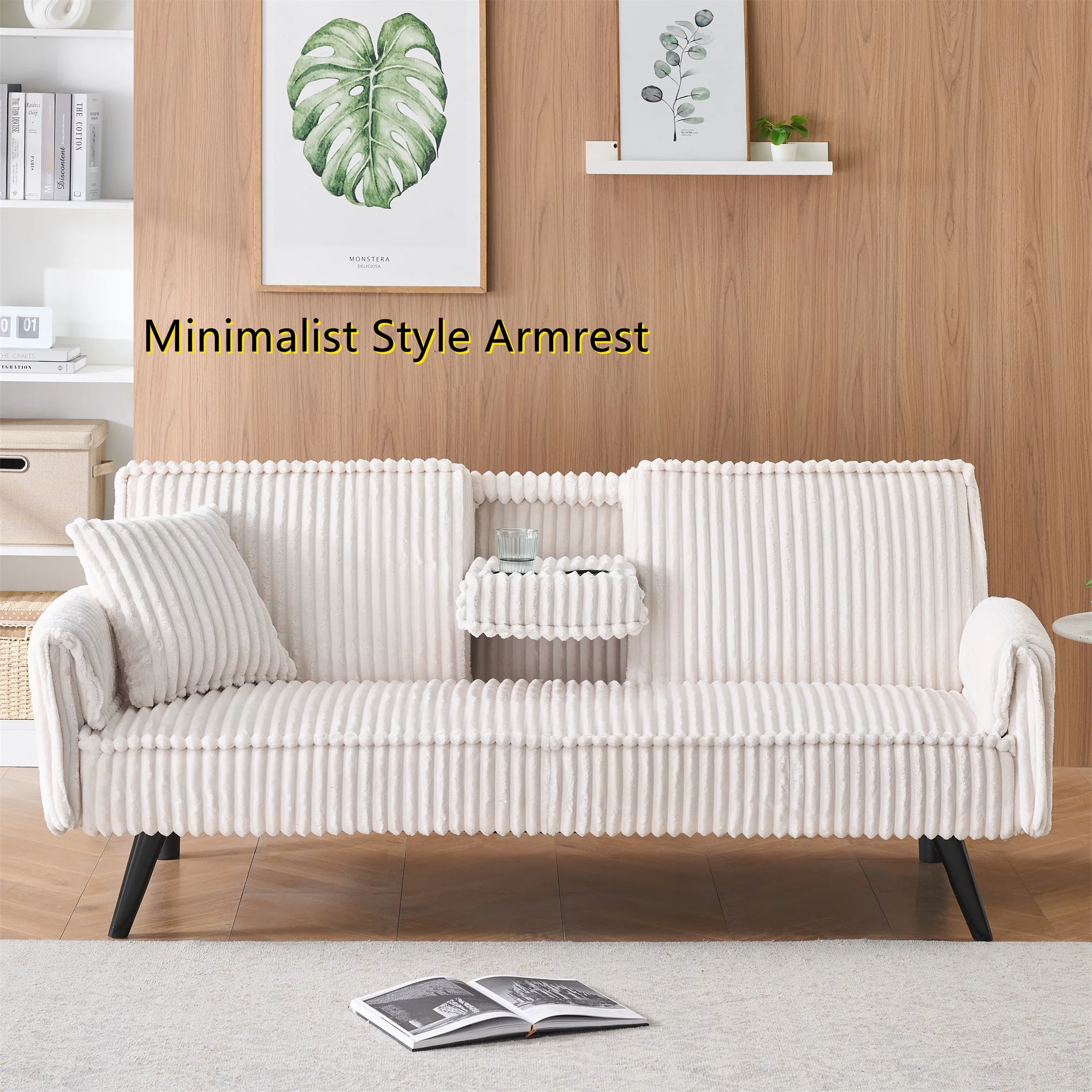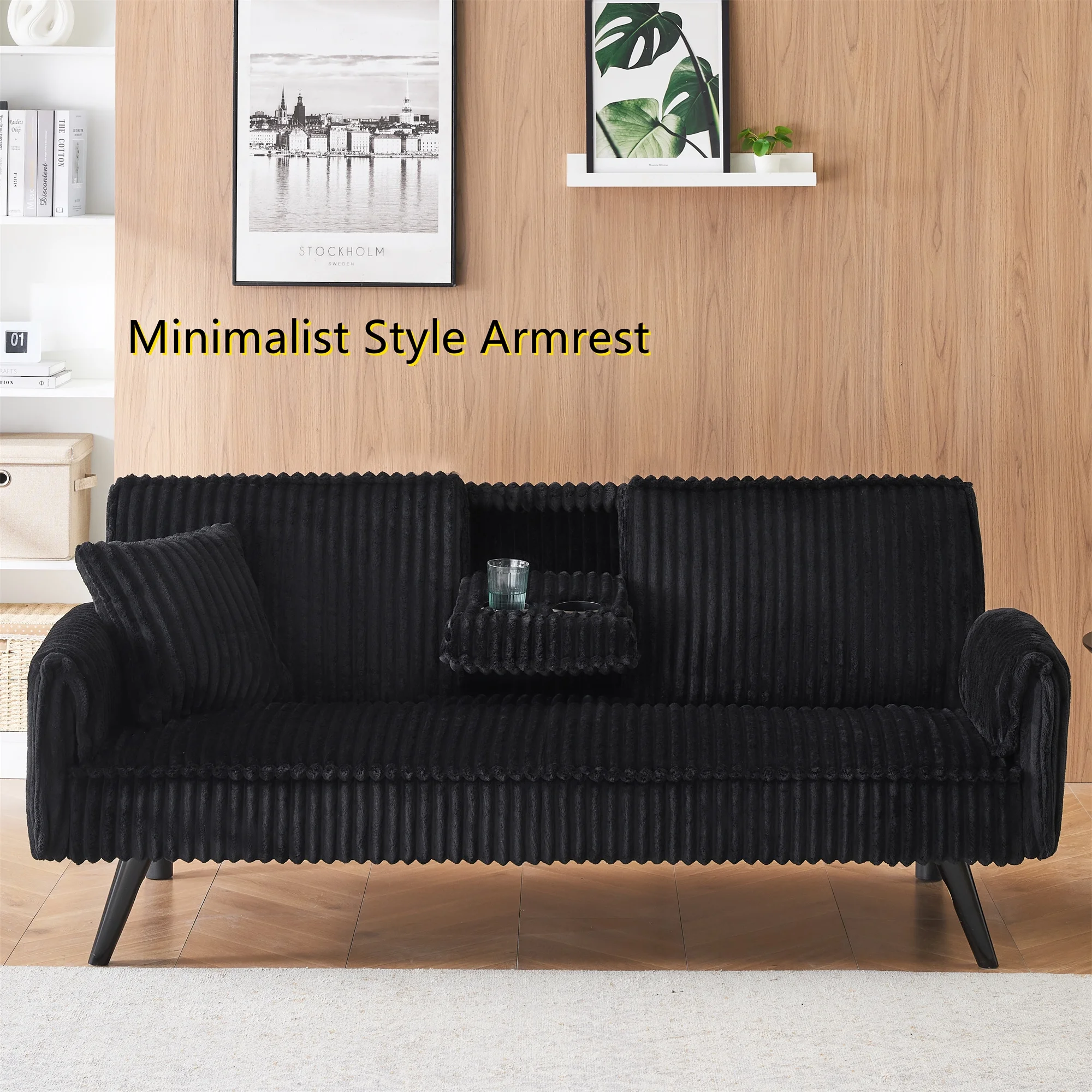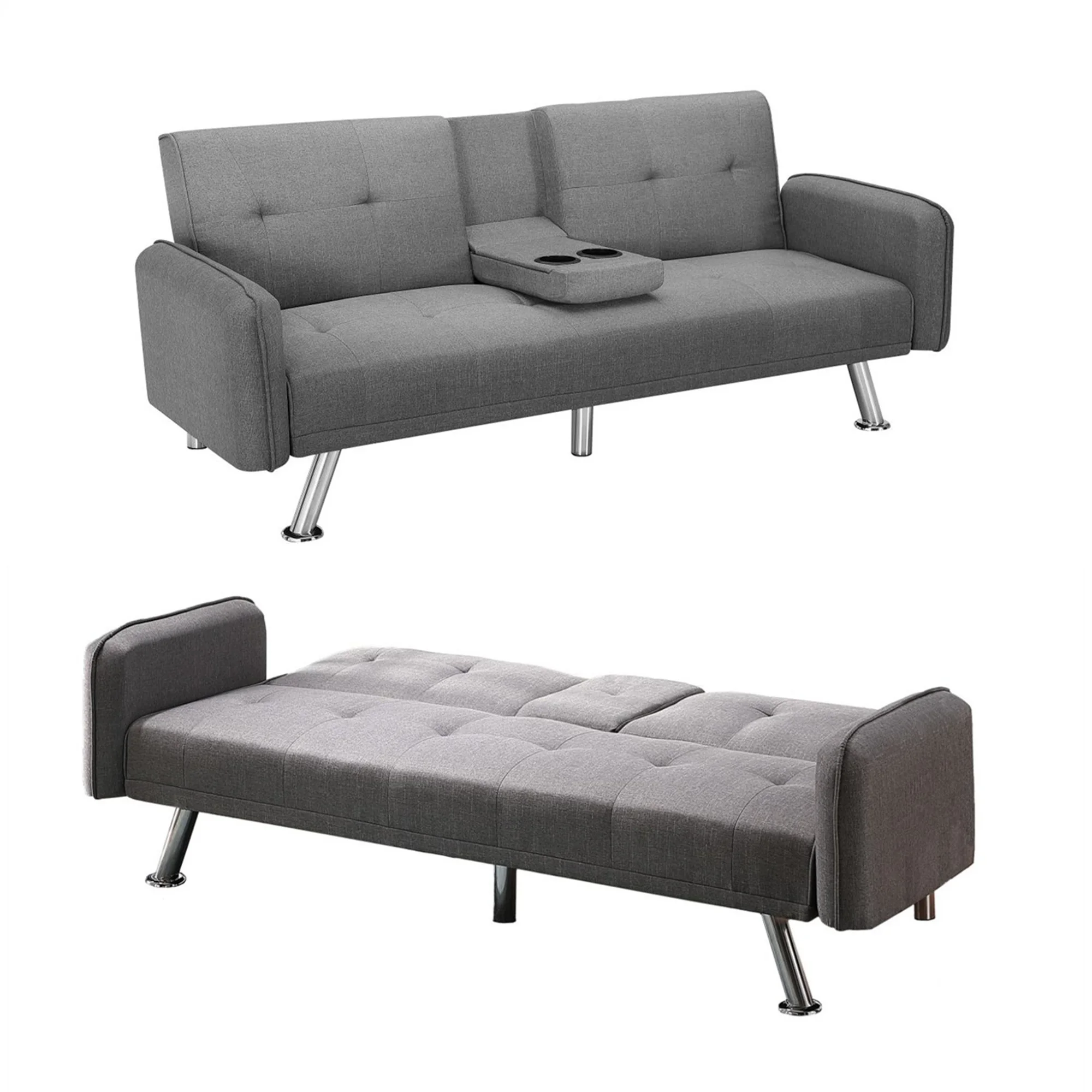 - FUTON WITH HIDDEN CUP HOLDER - Folding the middle armrest with 2 cup holders in the middle of the sofa allows you and your family and your friends to enjoy drinks while relaxing. It can make it more convenient for you and your family to drink while watching a sports game.
