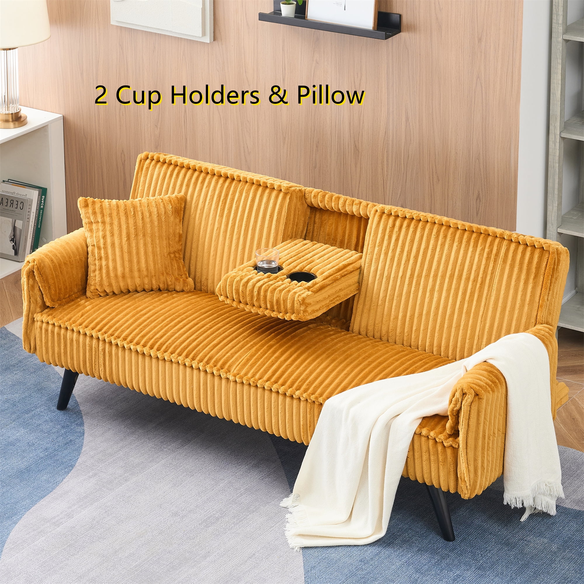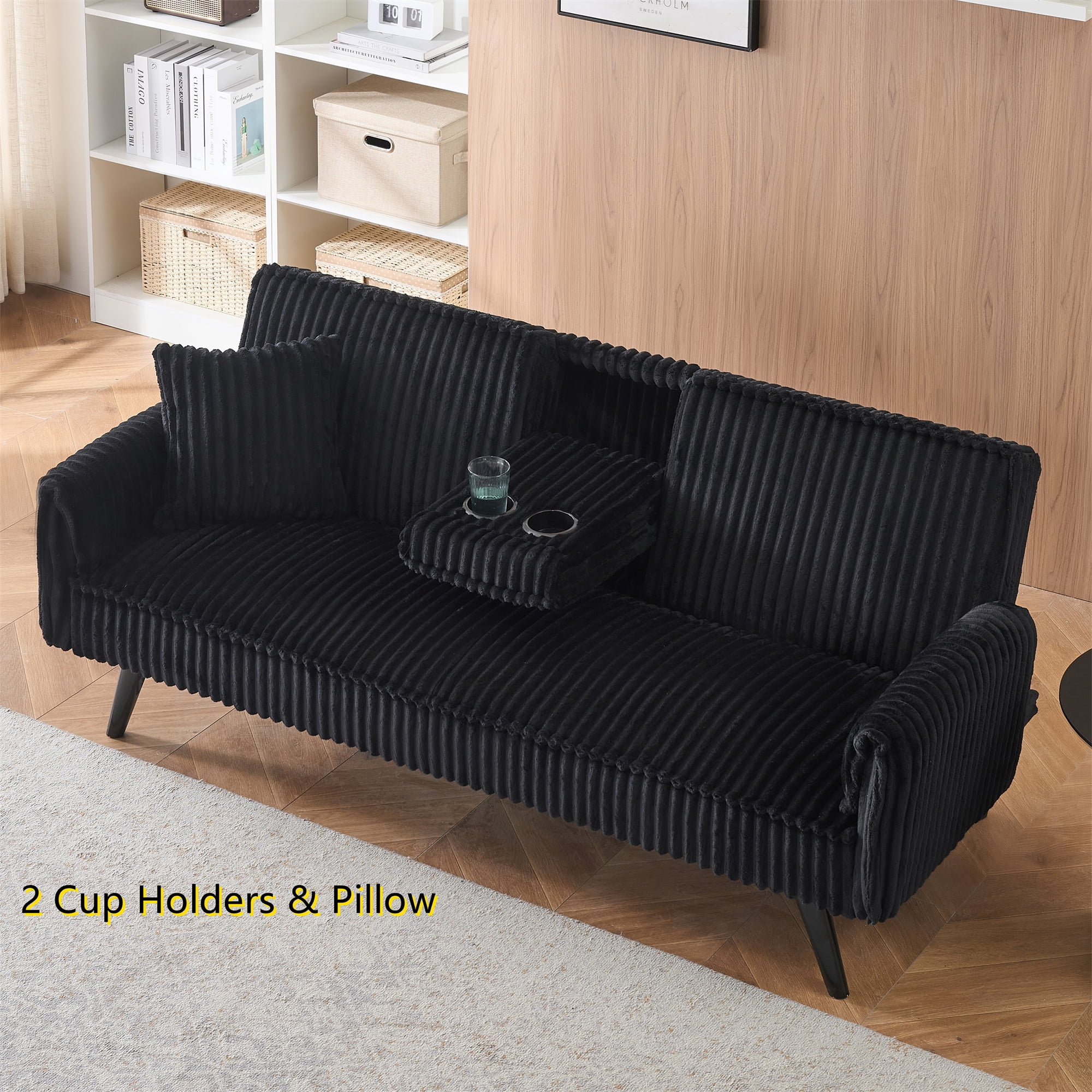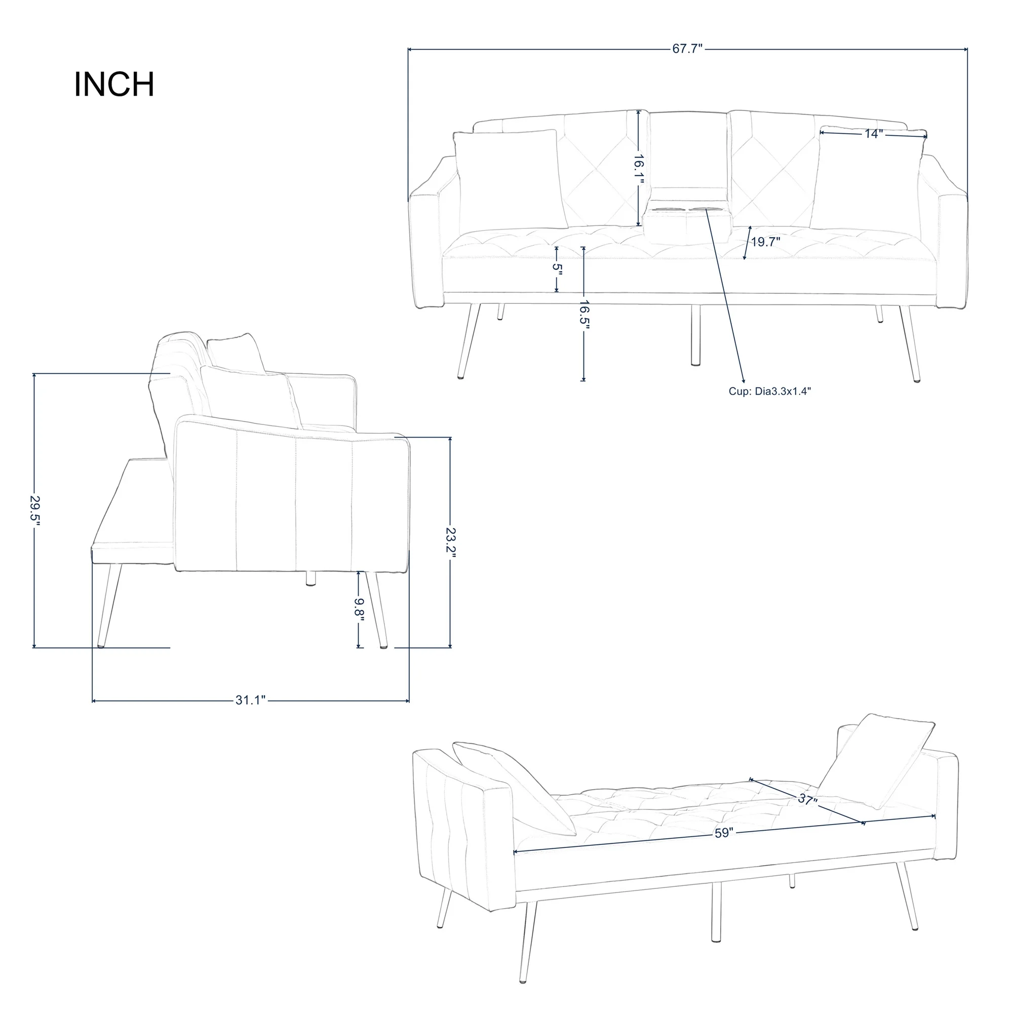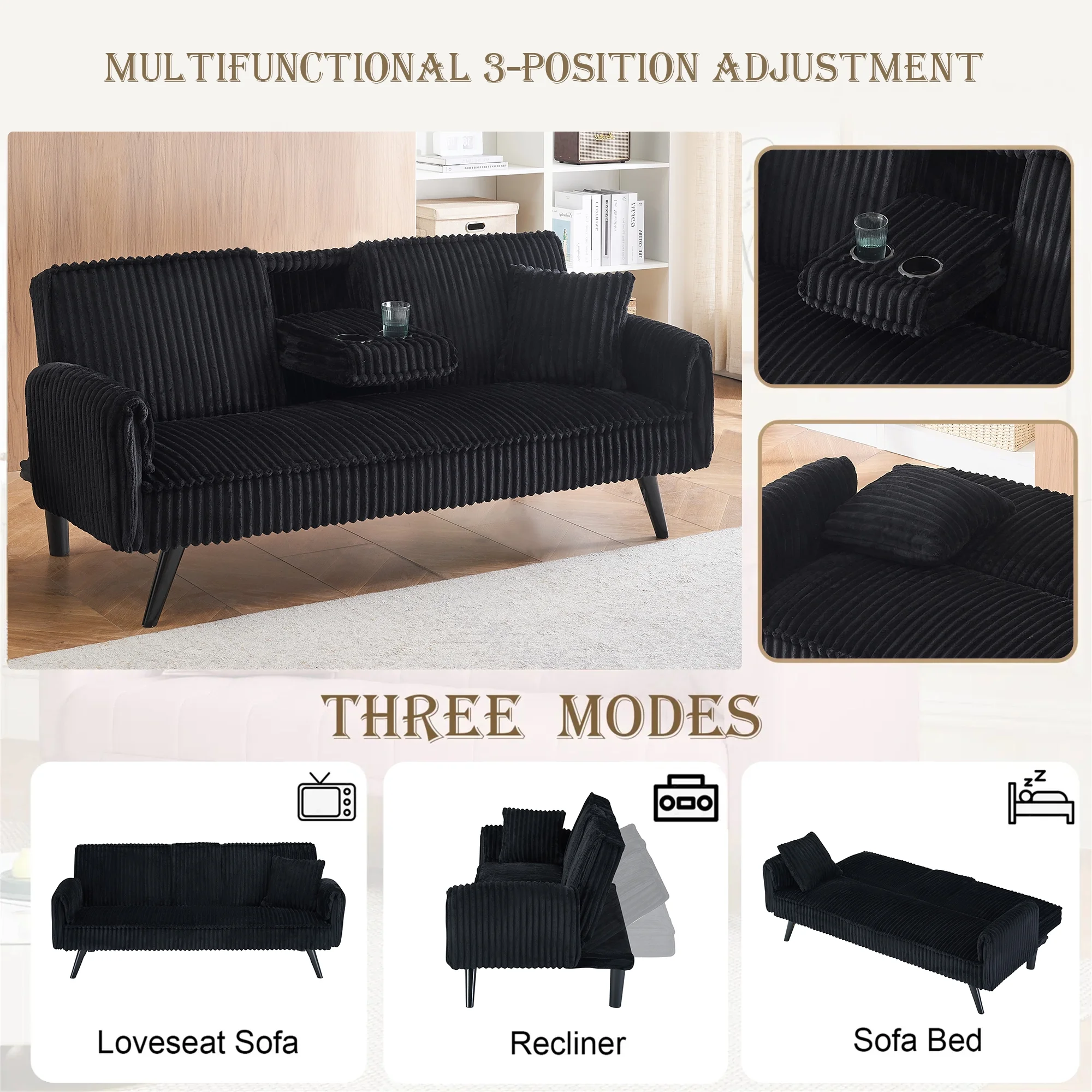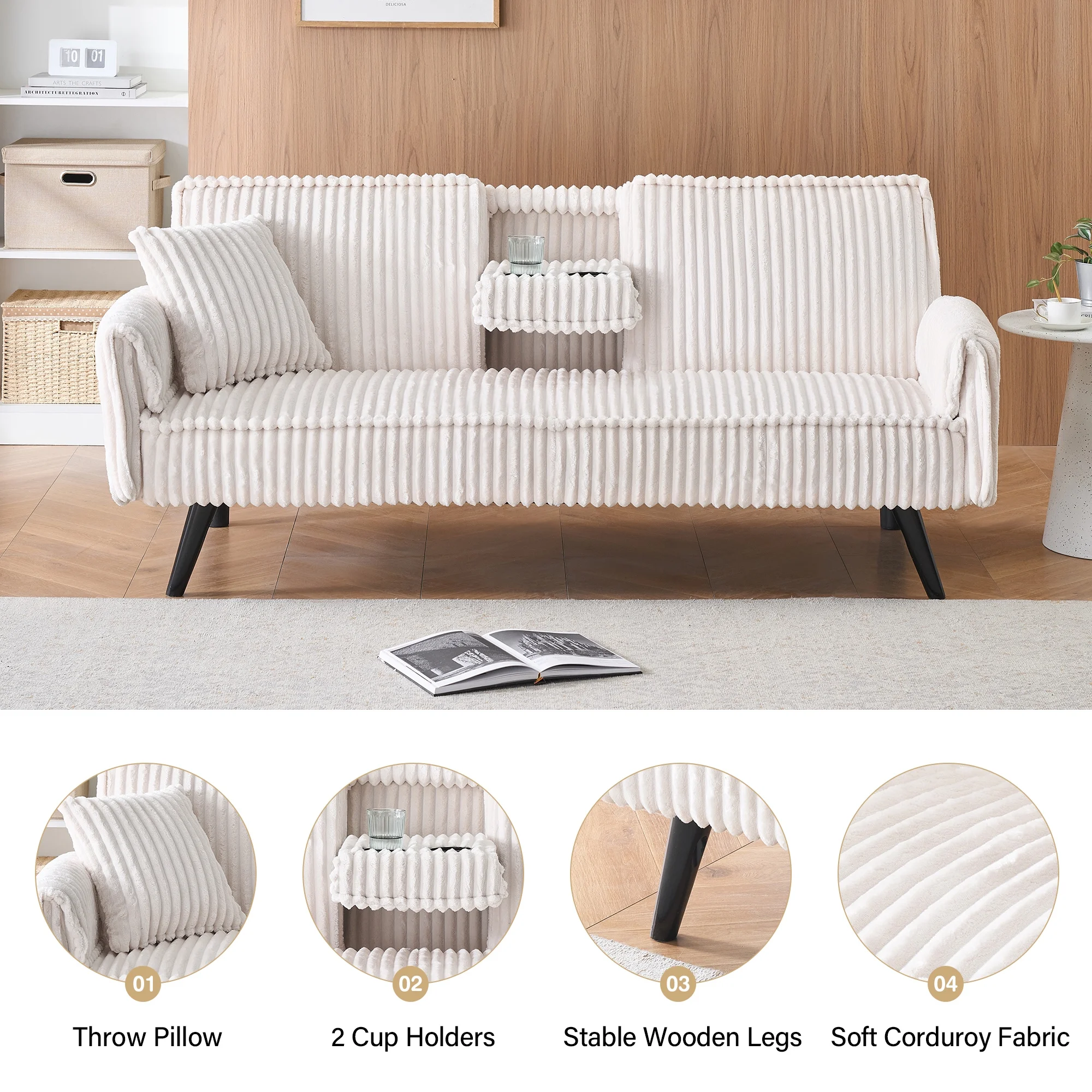 - FUTON WITH HIDDEN CUP HOLDER - Folding the middle armrest with 2 cup holders in the middle of the sofa allows you and your family and your friends to enjoy drinks while relaxing. It can make it more convenient for you and your family to drink while watching a sports game.