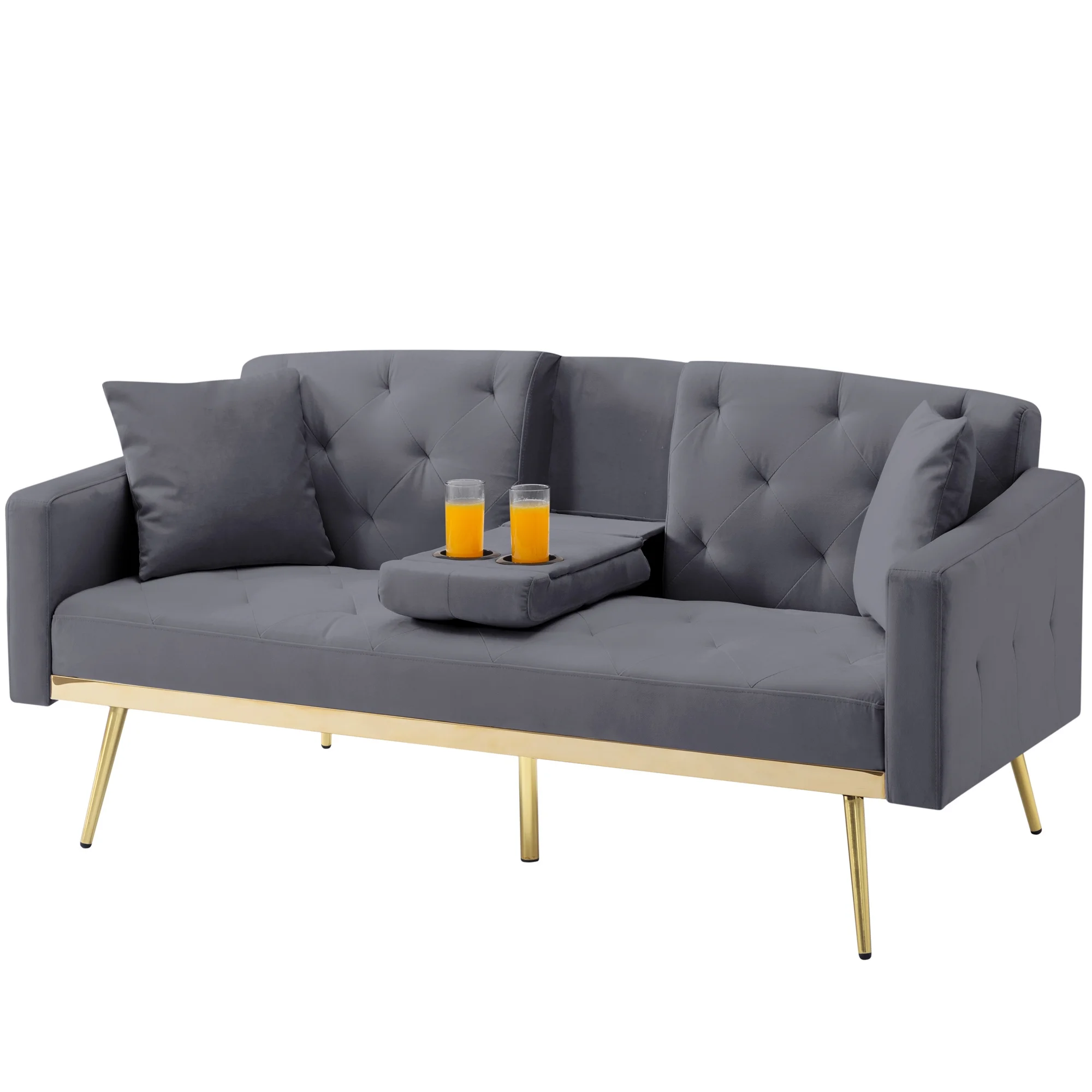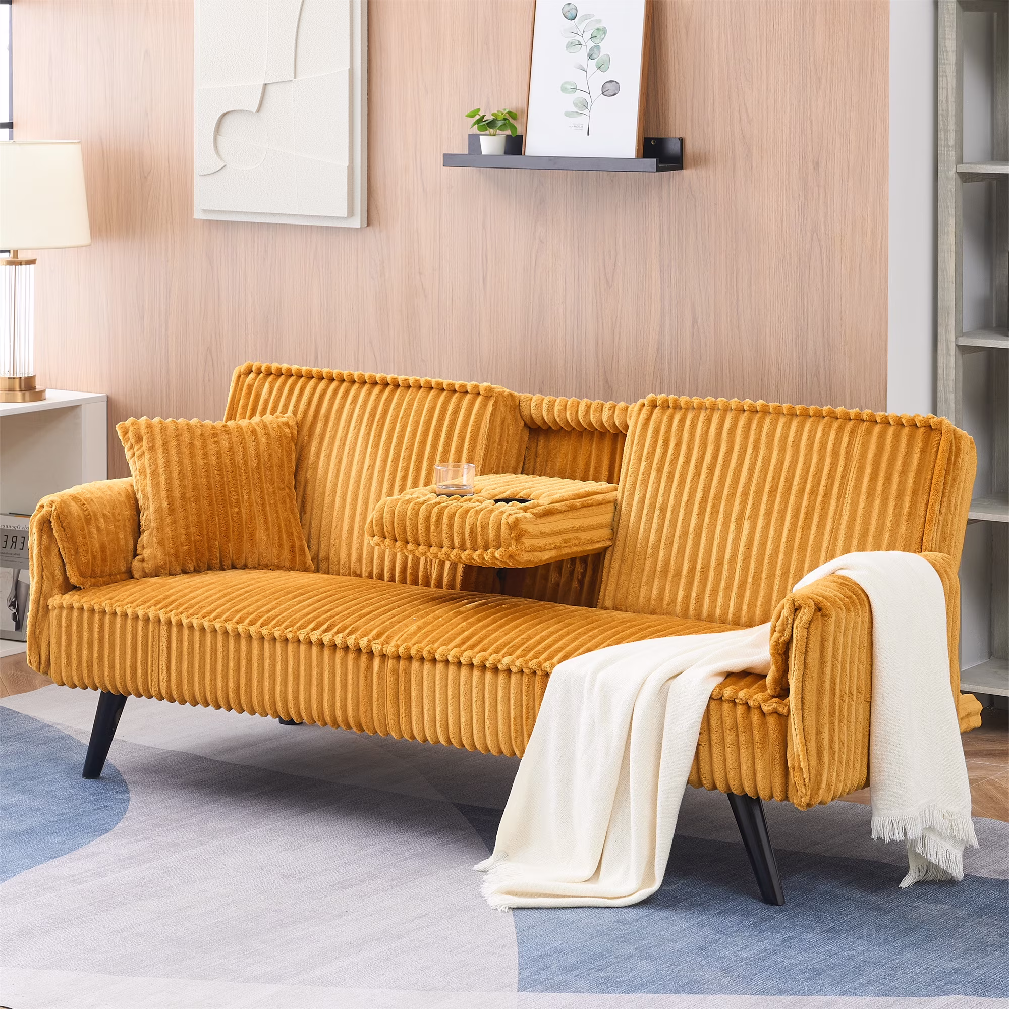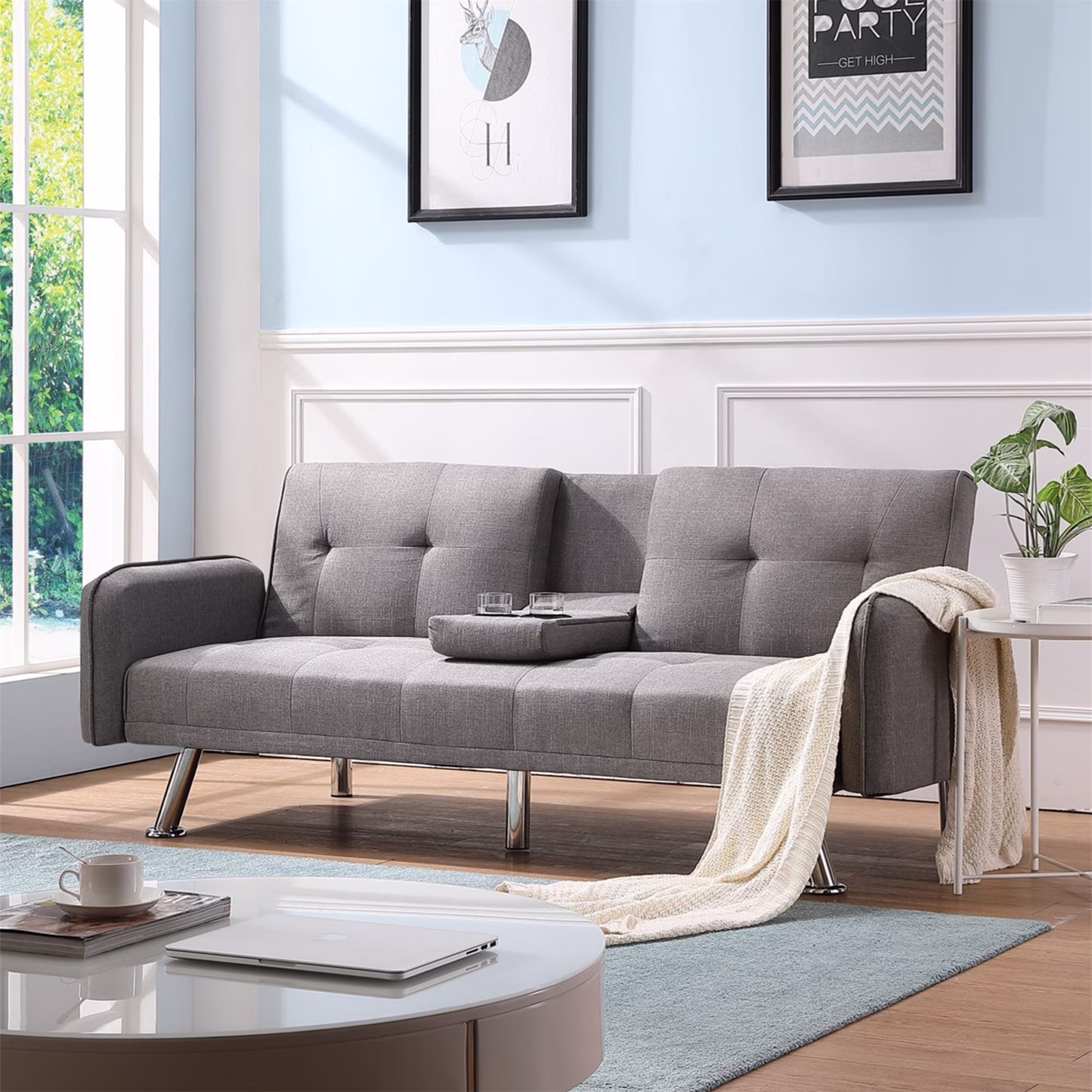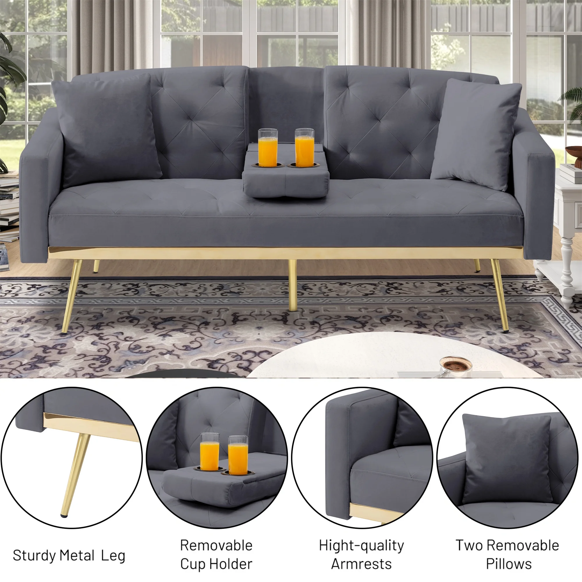 - FUTON WITH HIDDEN CUP HOLDER - Folding the middle armrest with 2 cup holders in the middle of the sofa allows you and your family and your friends to enjoy drinks while relaxing. It can make it more convenient for you and your family to drink while watching a sports game.