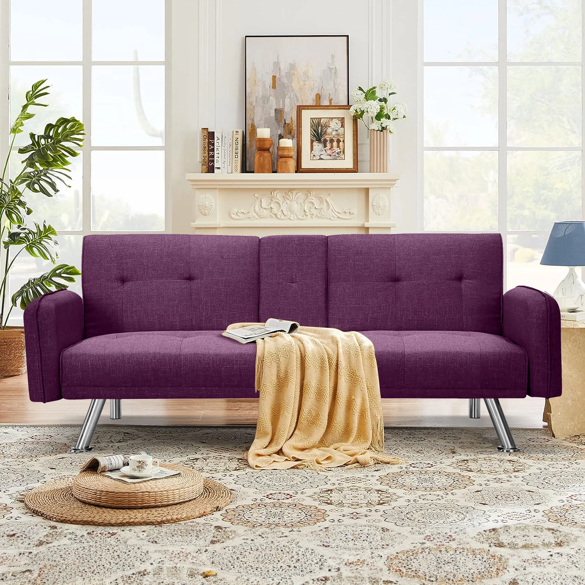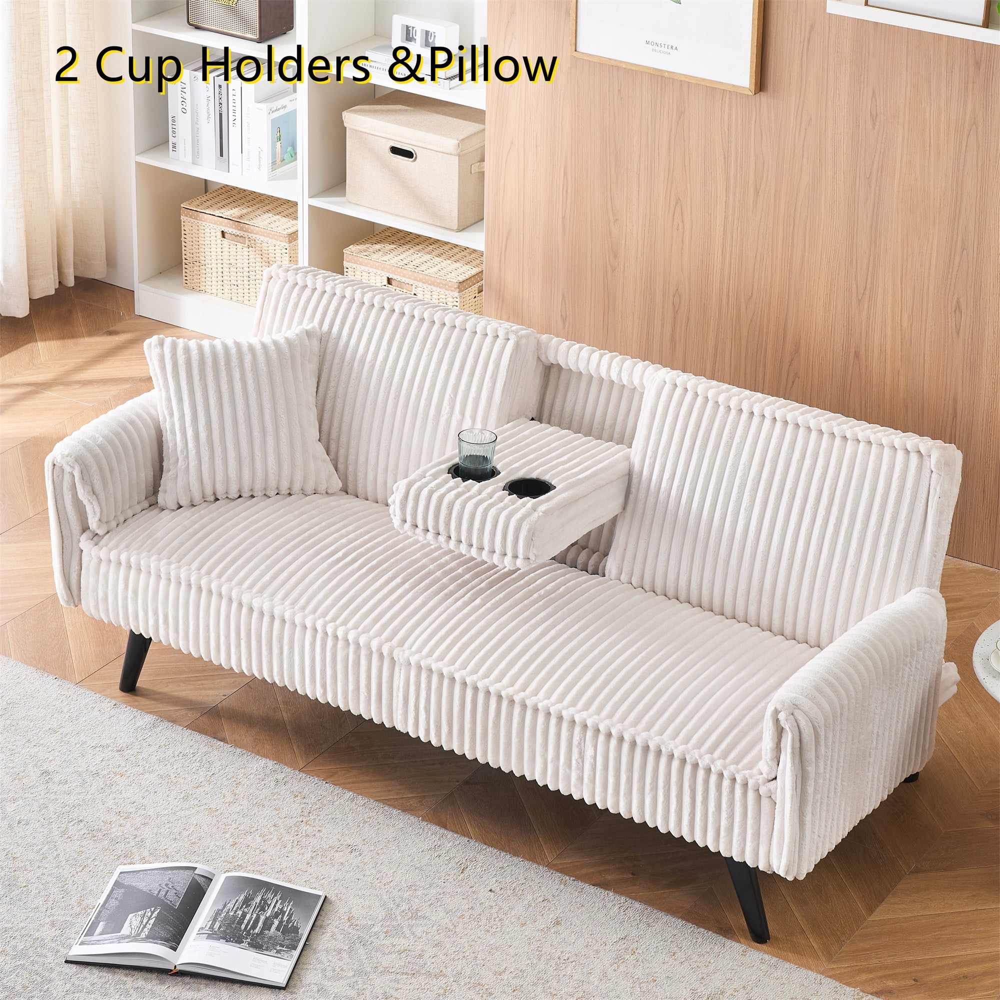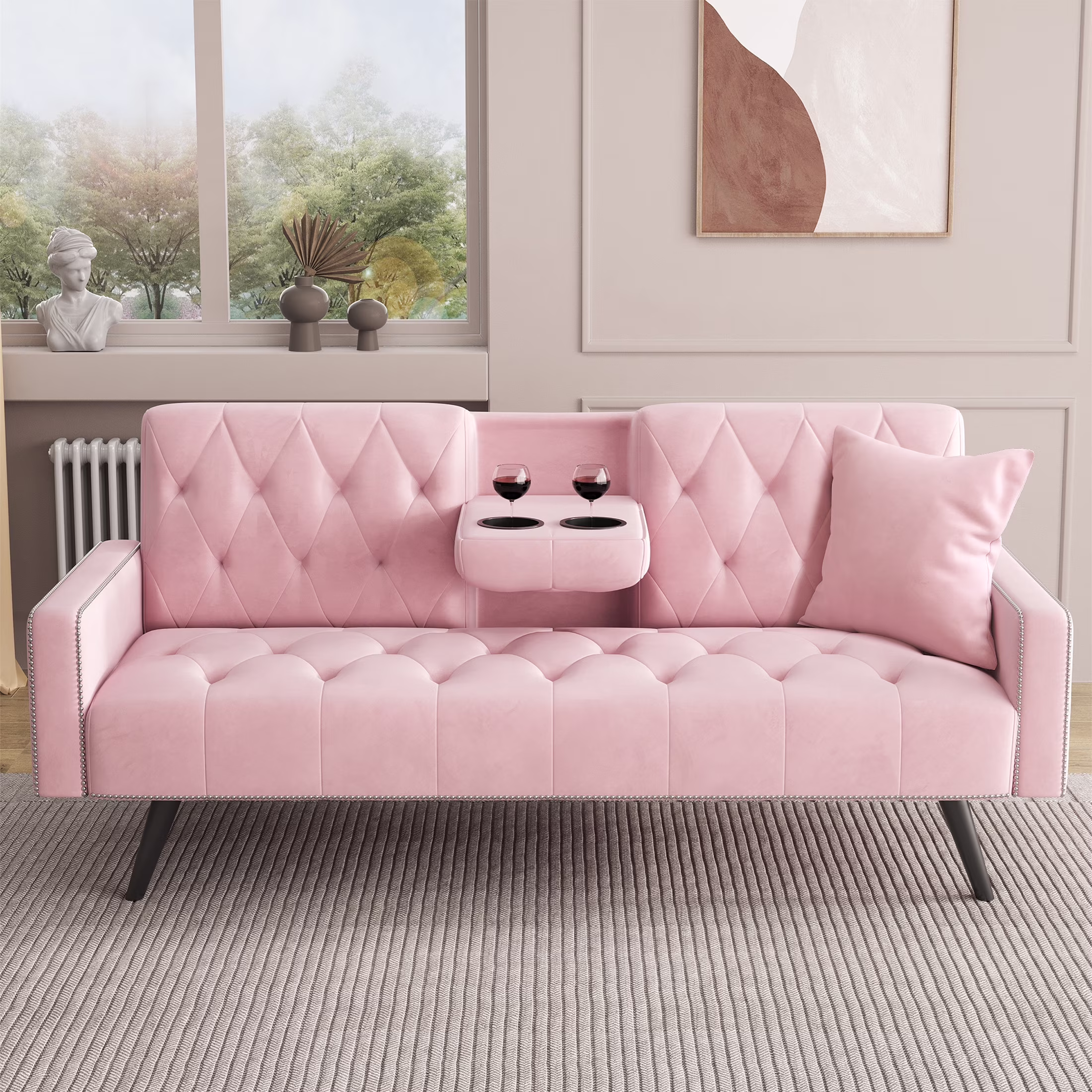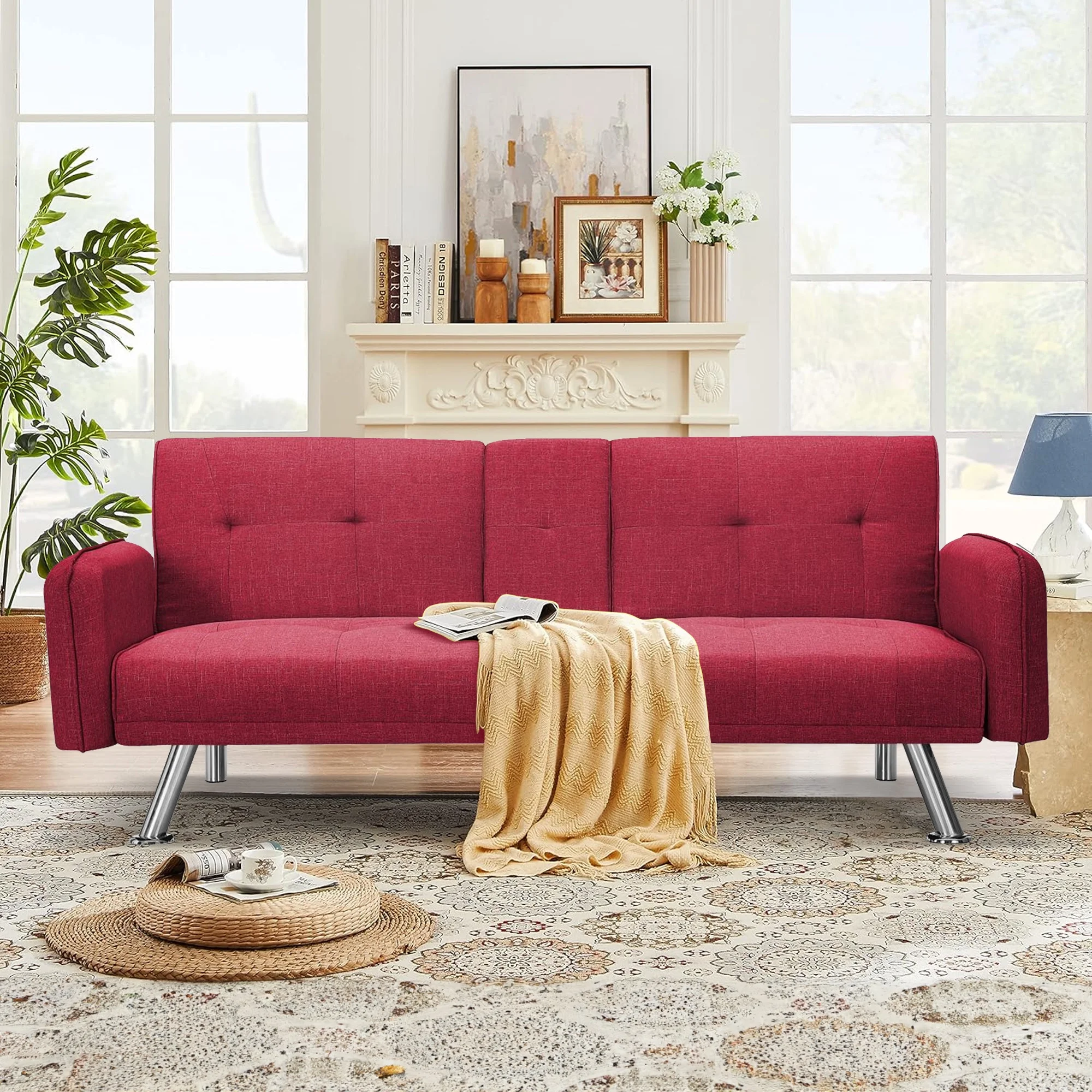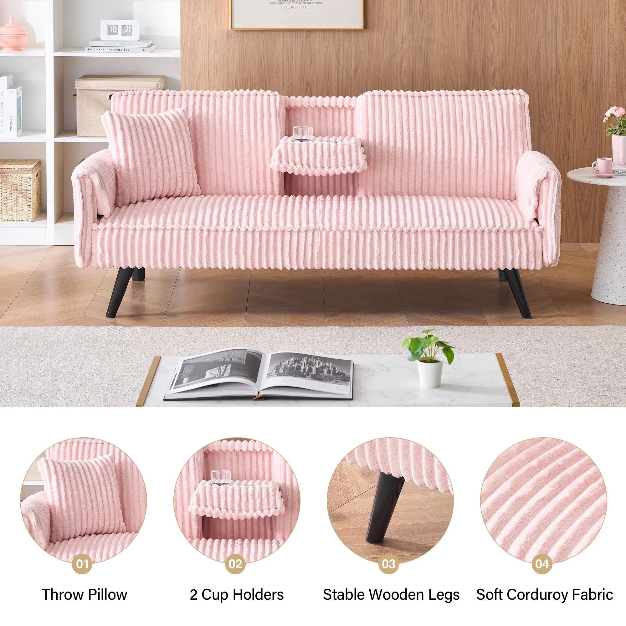- FUTON WITH HIDDEN CUP HOLDER - Folding the middle armrest with 2 cup holders in the middle of the sofa allows you and your family and your friends to enjoy drinks while relaxing. It can make it more convenient for you and your family to drink while watching a sports game.