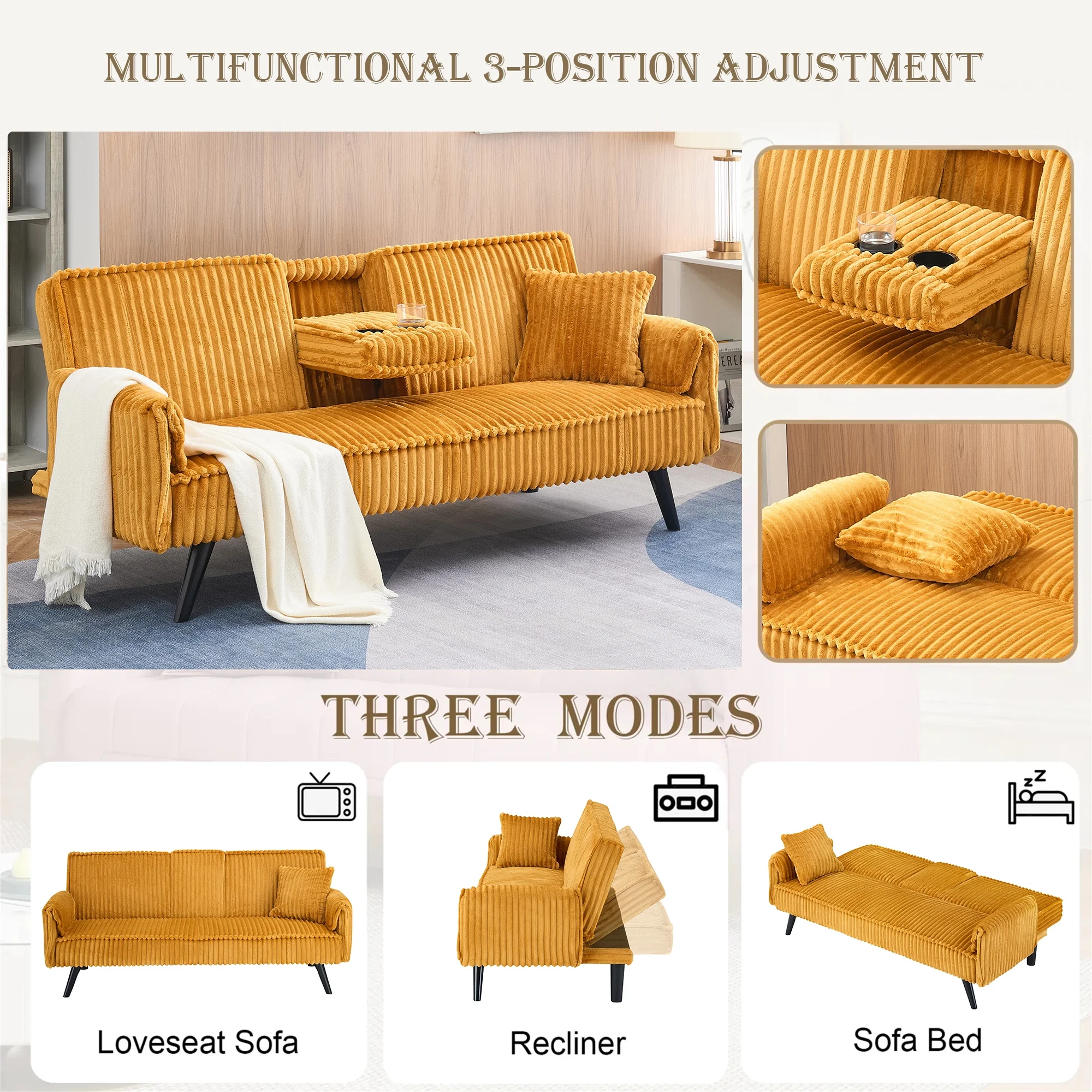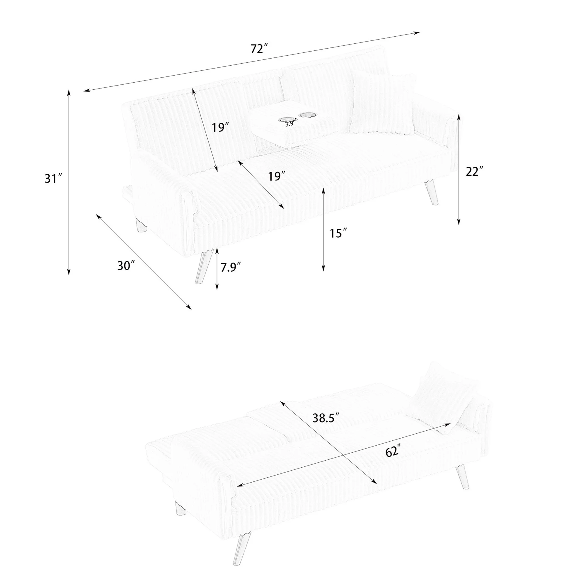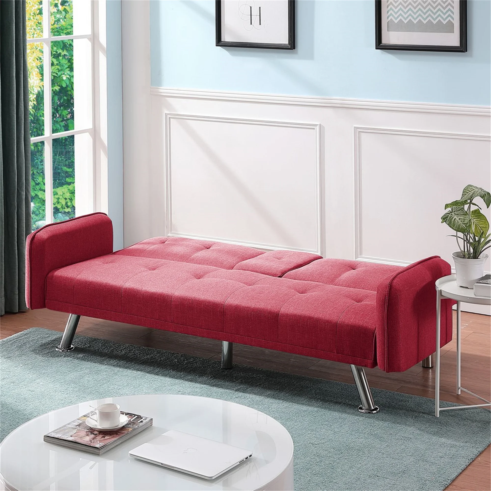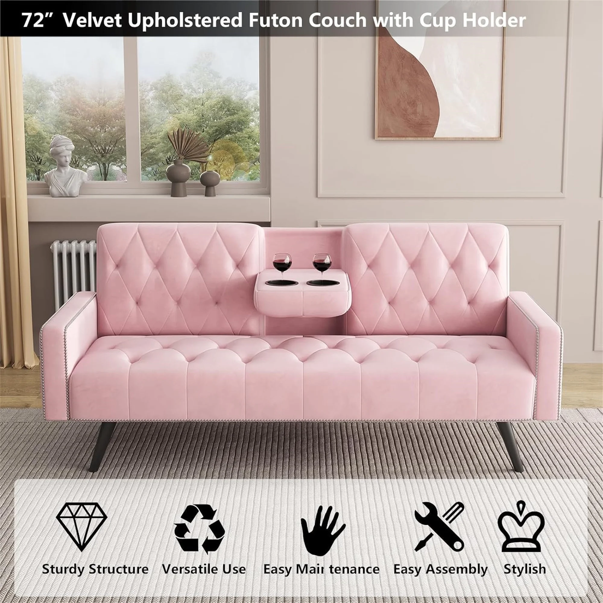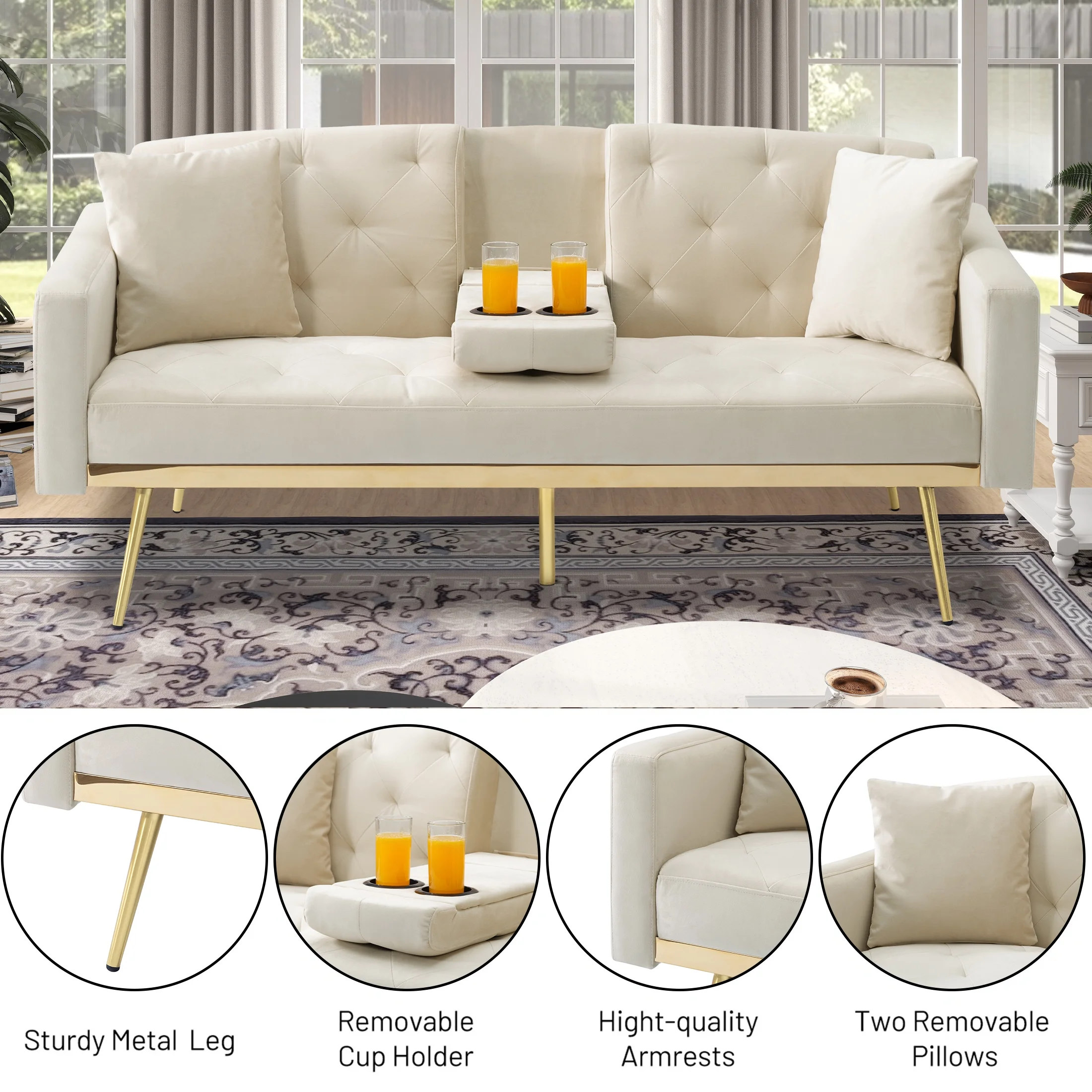- FUTON WITH HIDDEN CUP HOLDER - Folding the middle armrest with 2 cup holders in the middle of the sofa allows you and your family and your friends to enjoy drinks while relaxing. It can make it more convenient for you and your family to drink while watching a sports game.
