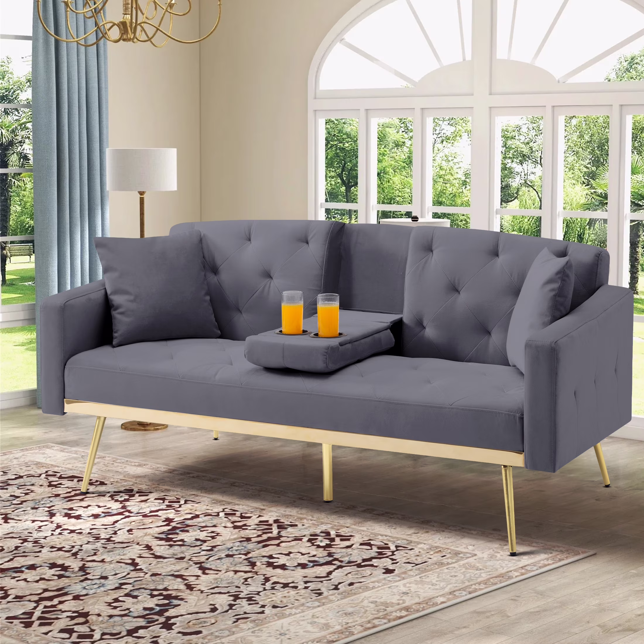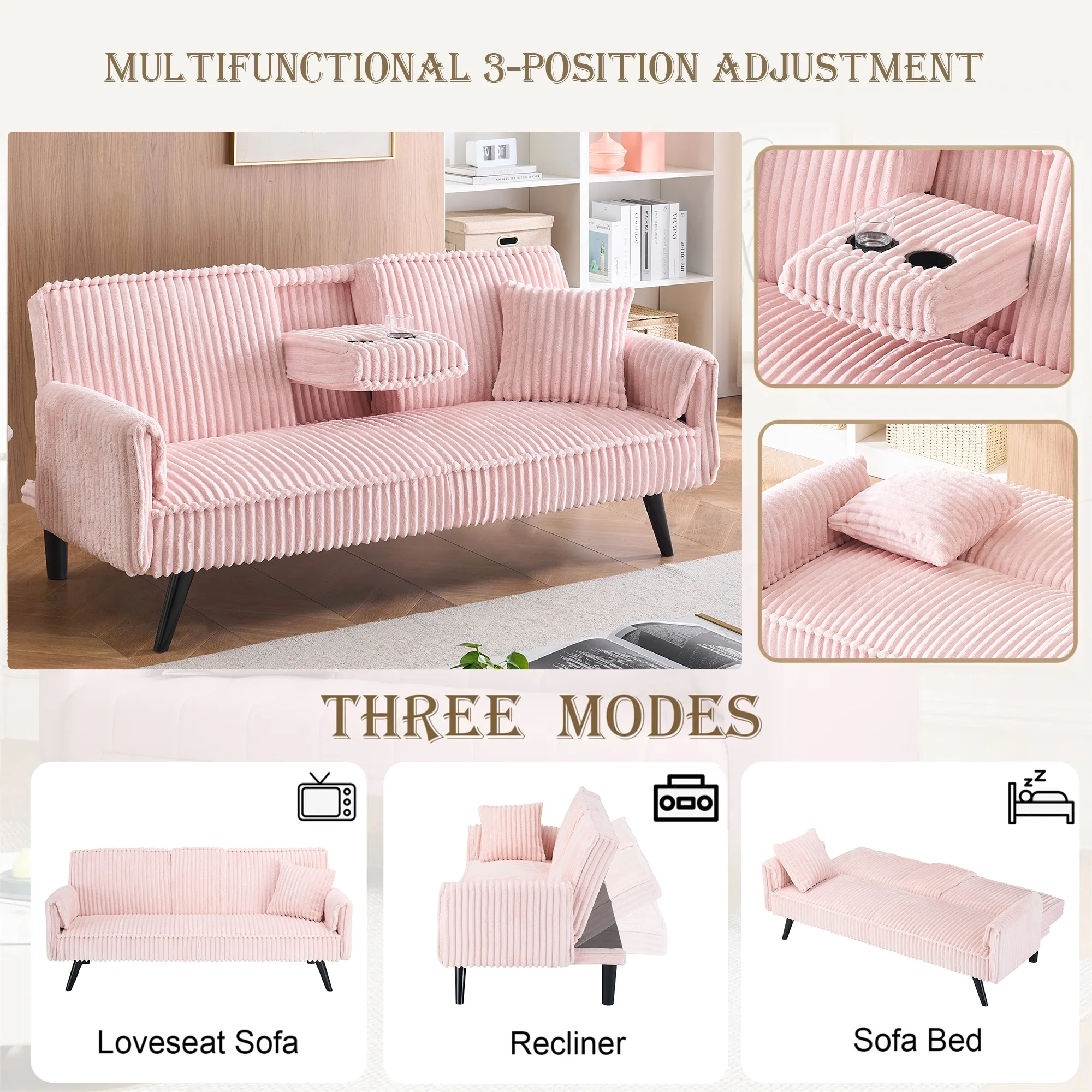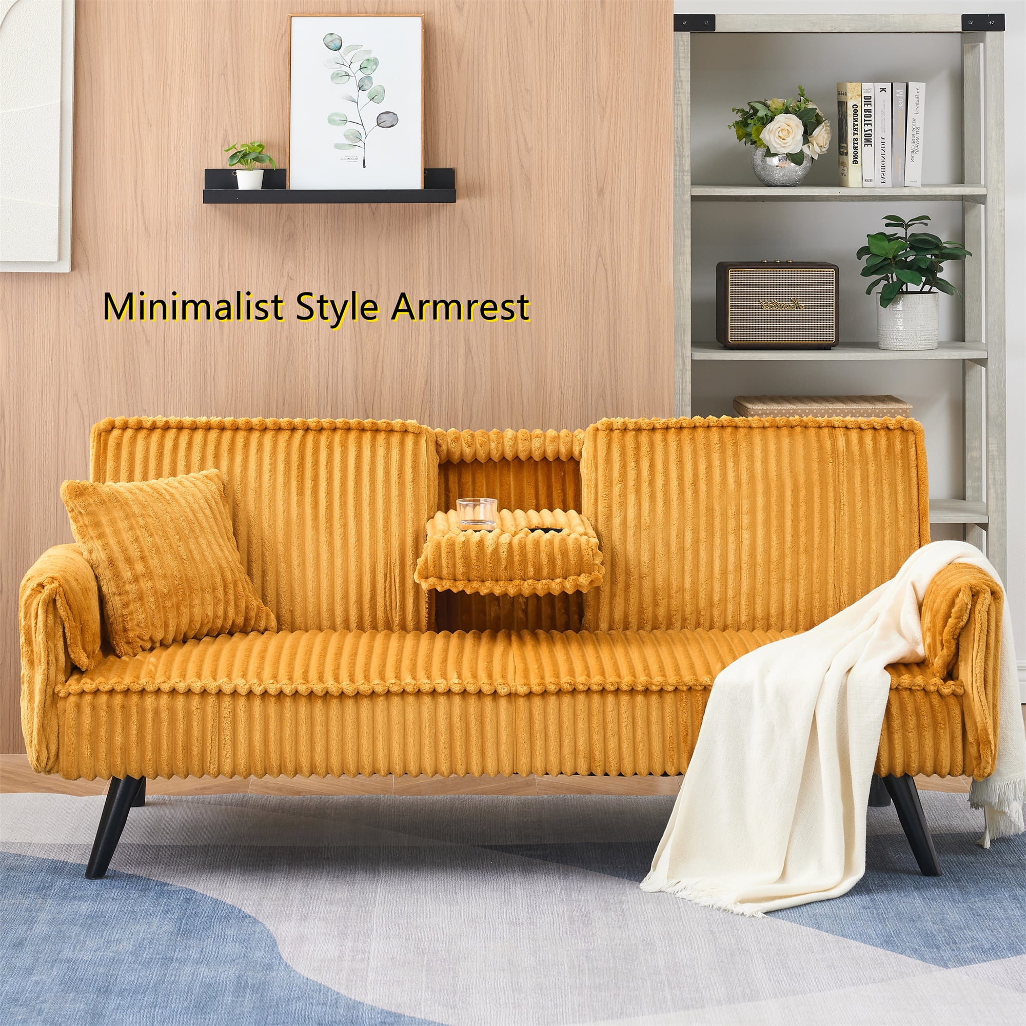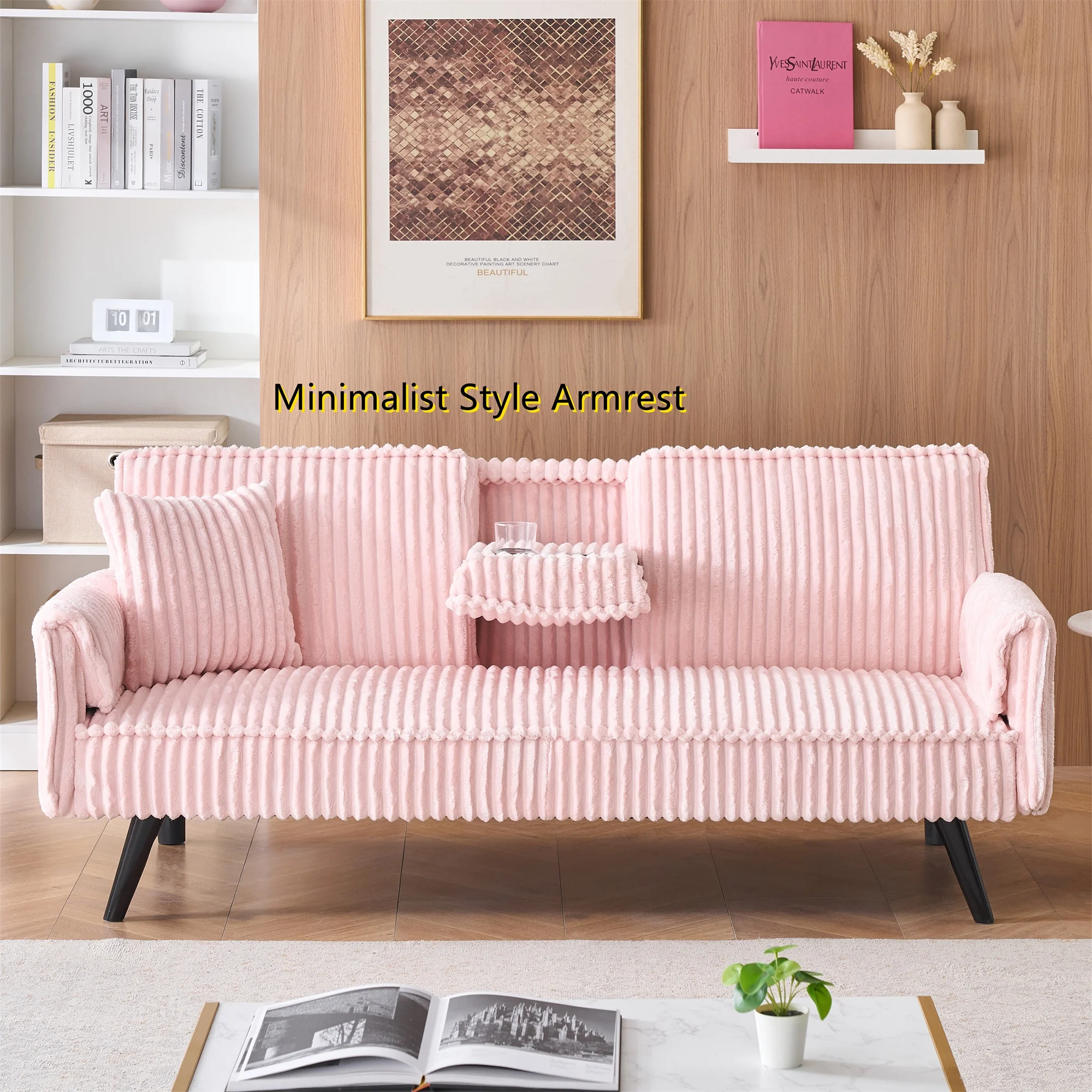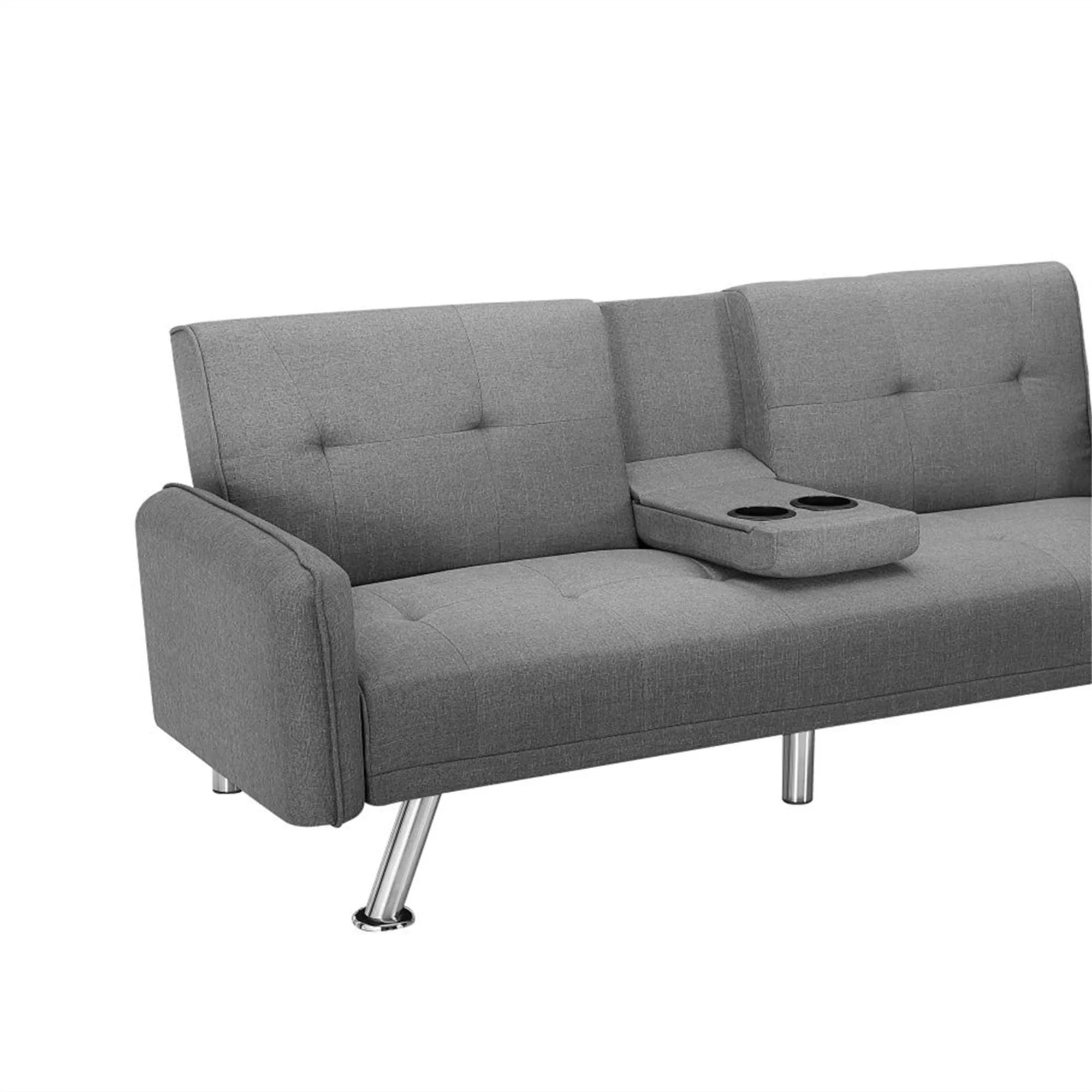 - FUTON WITH HIDDEN CUP HOLDER - Folding the middle armrest with 2 cup holders in the middle of the sofa allows you and your family and your friends to enjoy drinks while relaxing. It can make it more convenient for you and your family to drink while watching a sports game.