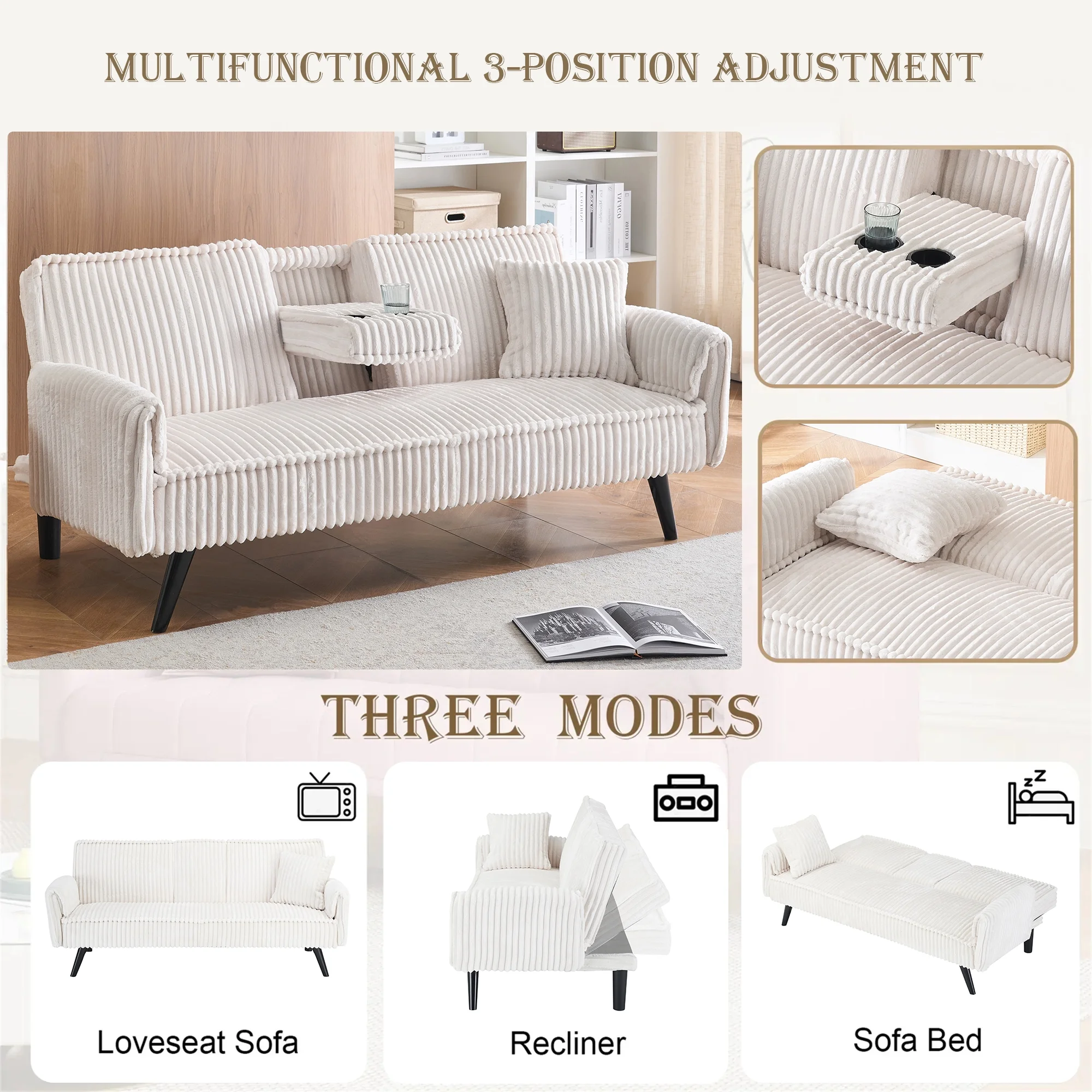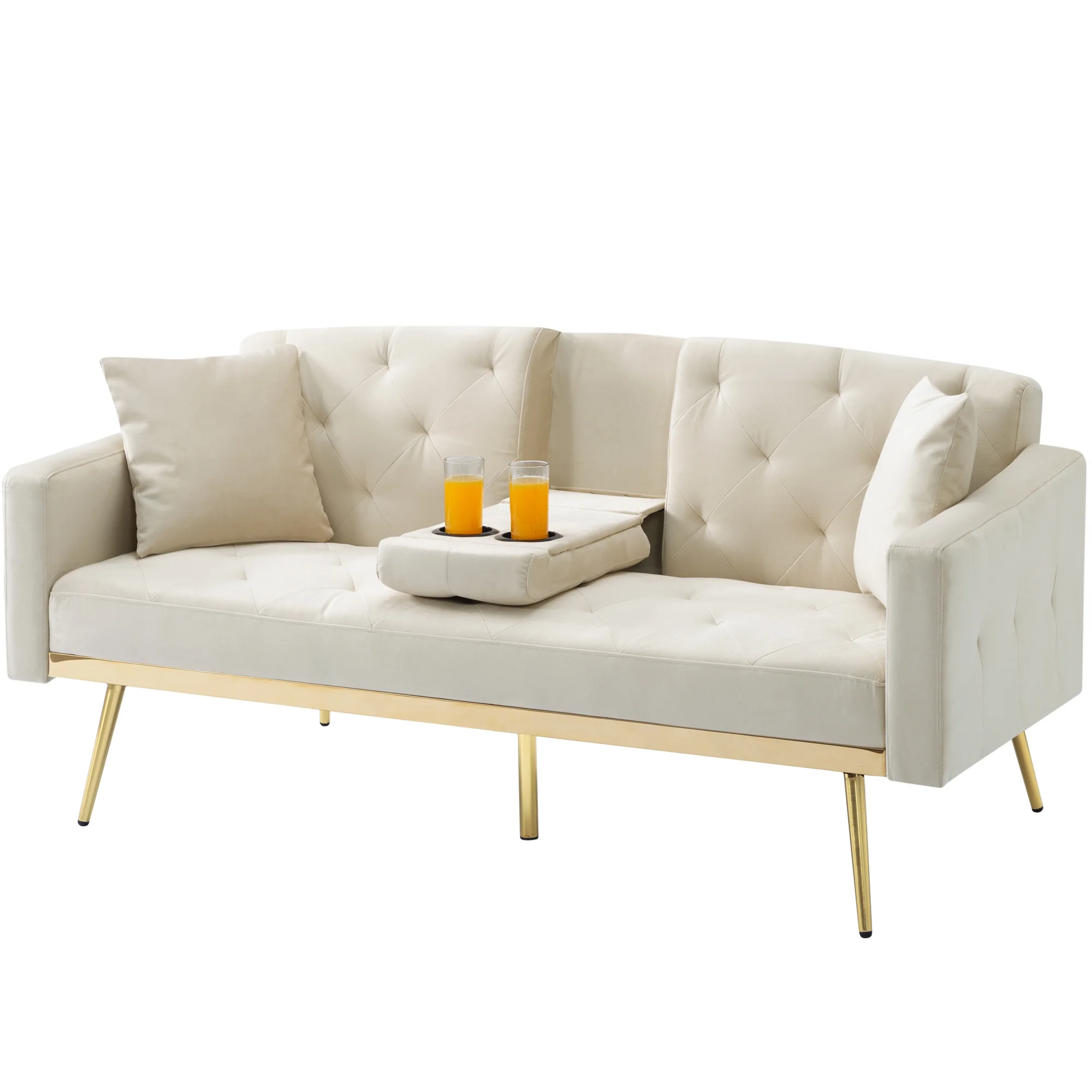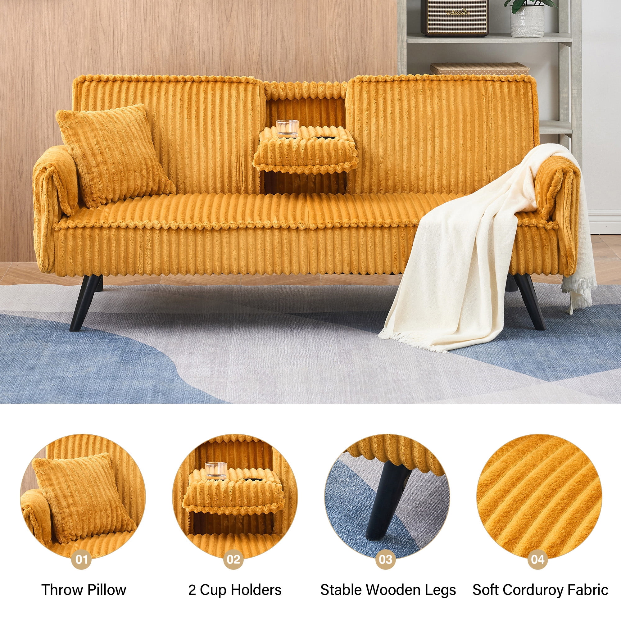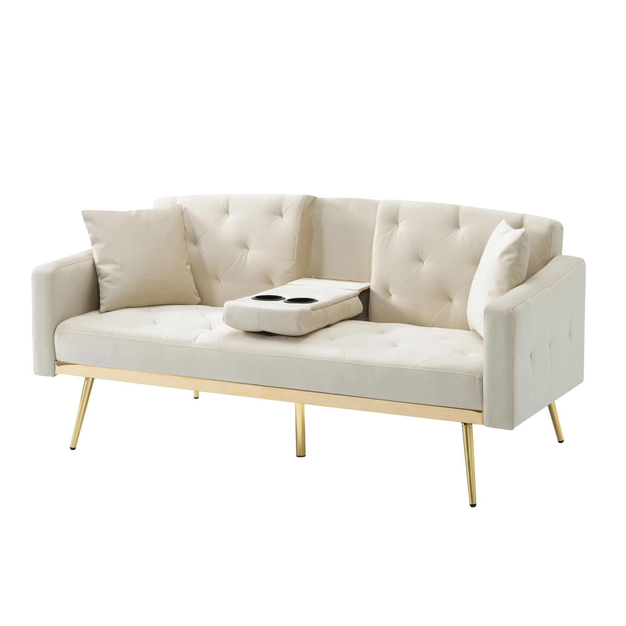 - FUTON WITH HIDDEN CUP HOLDER - Folding the middle armrest with 2 cup holders in the middle of the sofa allows you and your family and your friends to enjoy drinks while relaxing. It can make it more convenient for you and your family to drink while watching a sports game.