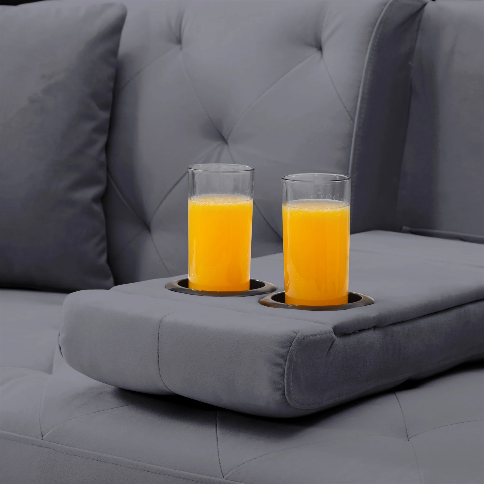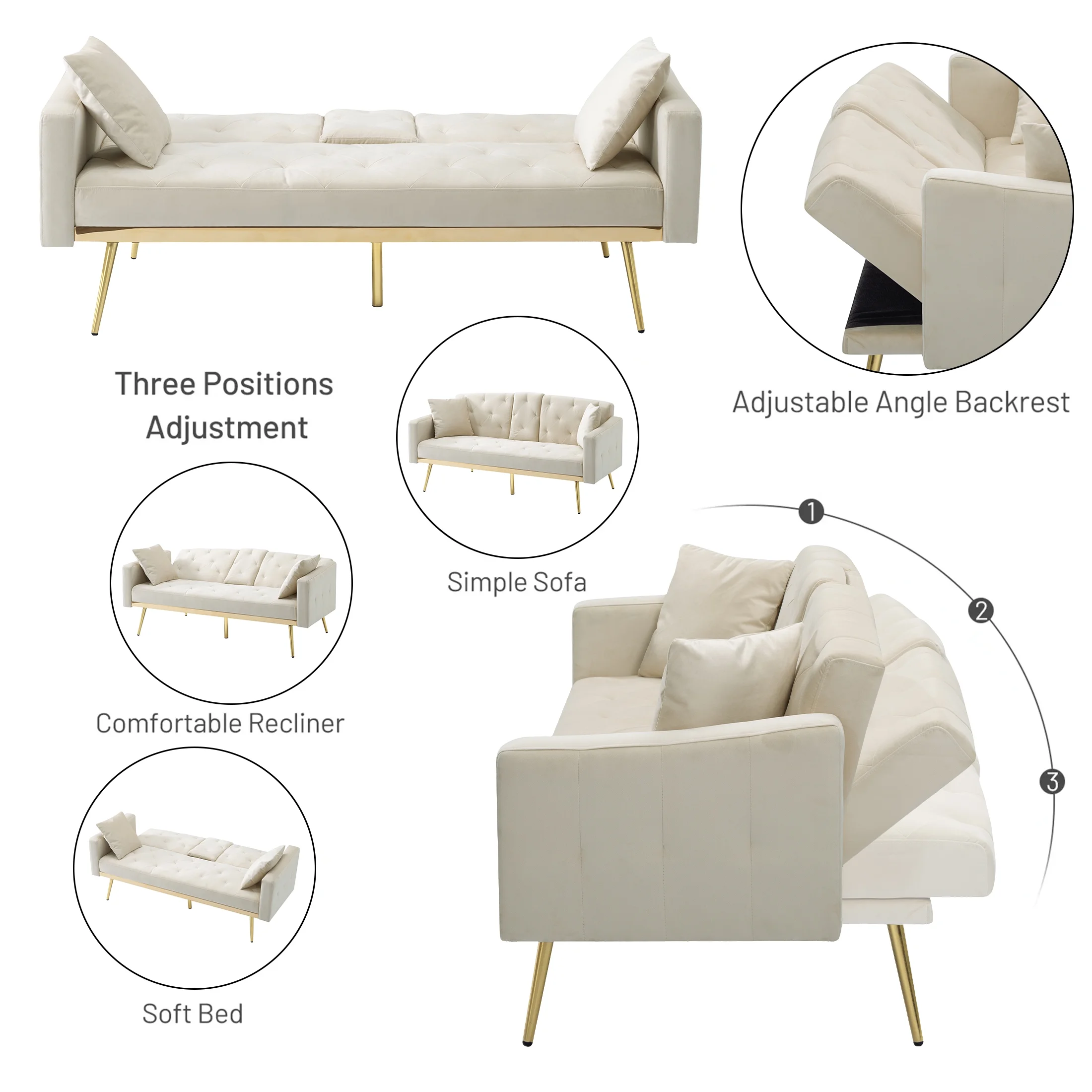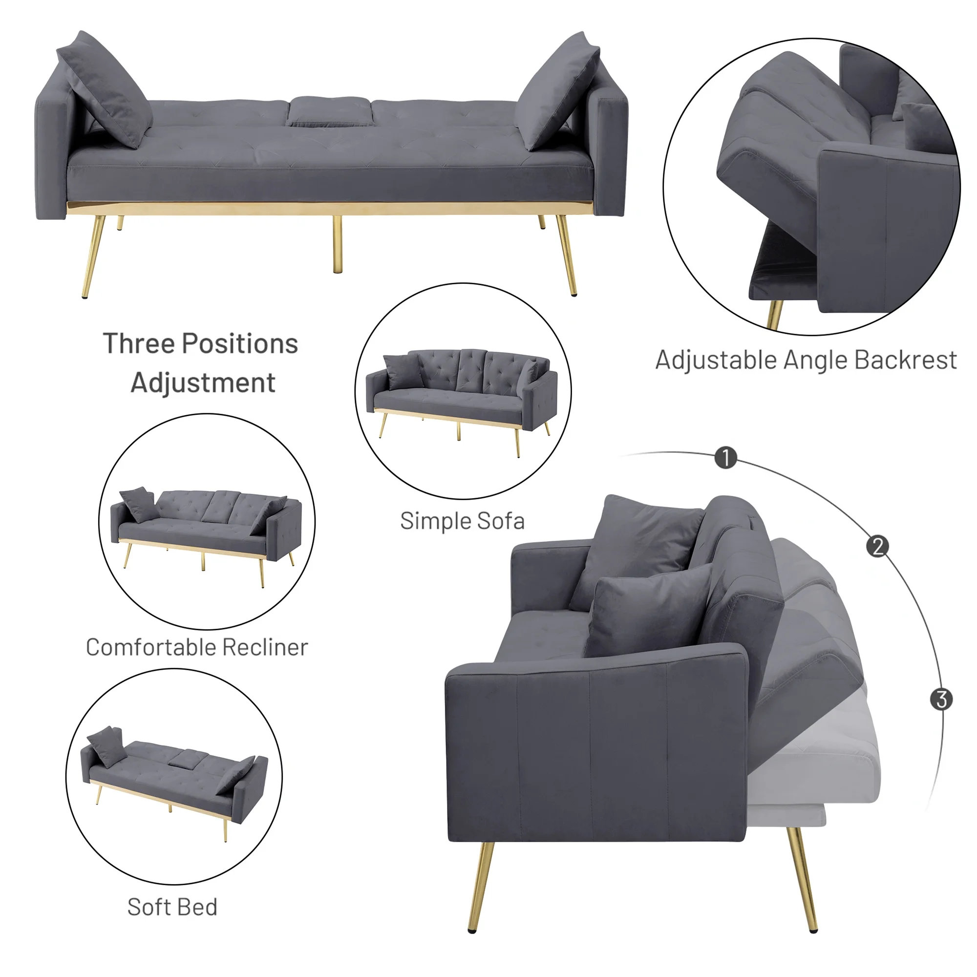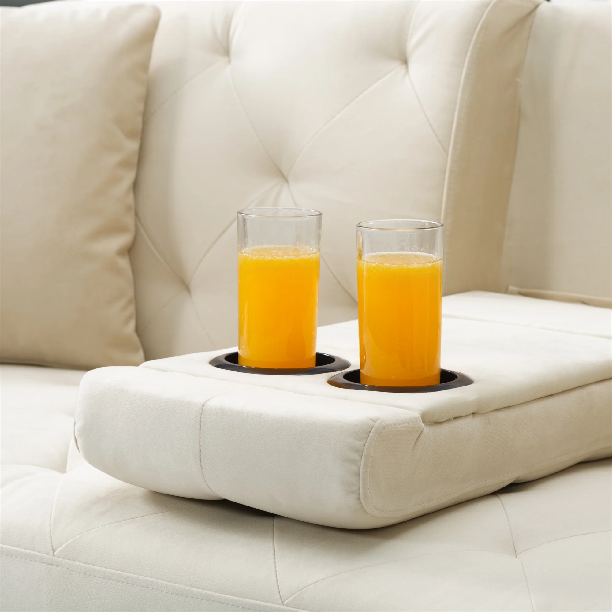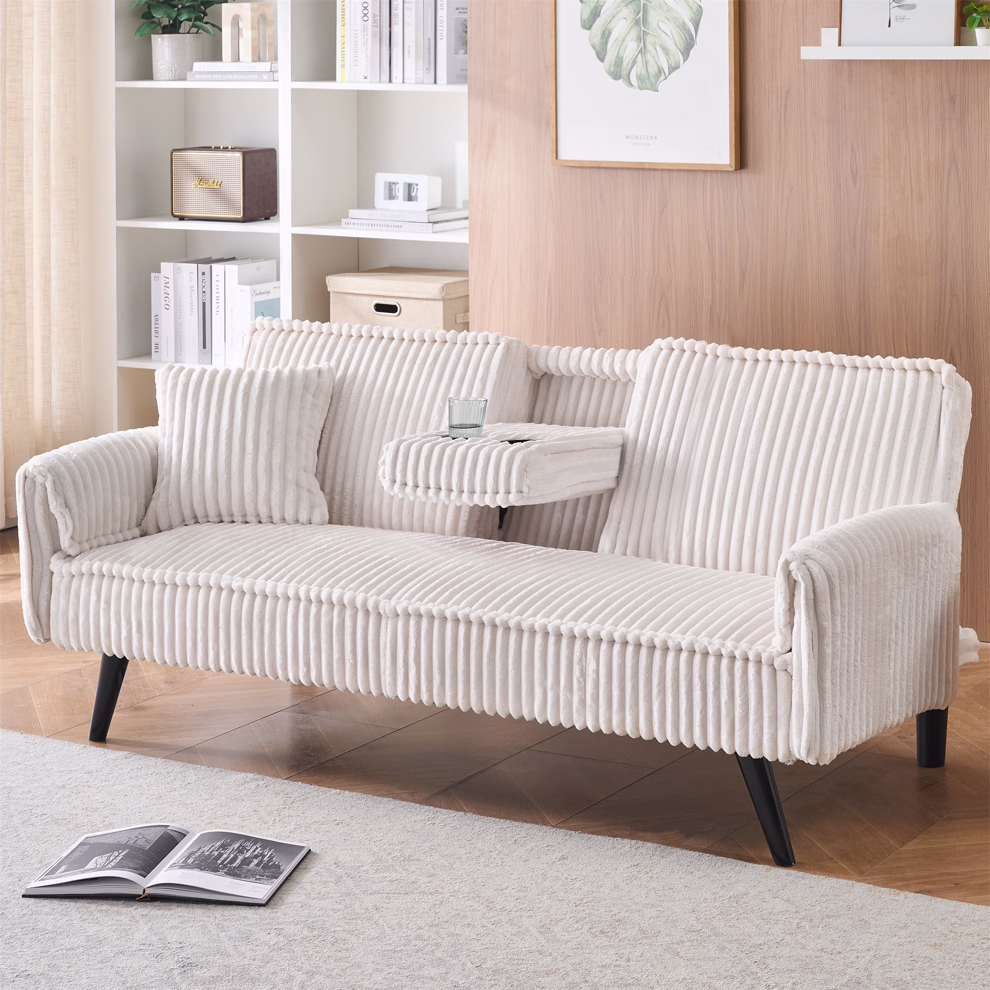 - FUTON WITH HIDDEN CUP HOLDER - Folding the middle armrest with 2 cup holders in the middle of the sofa allows you and your family and your friends to enjoy drinks while relaxing. It can make it more convenient for you and your family to drink while watching a sports game.
