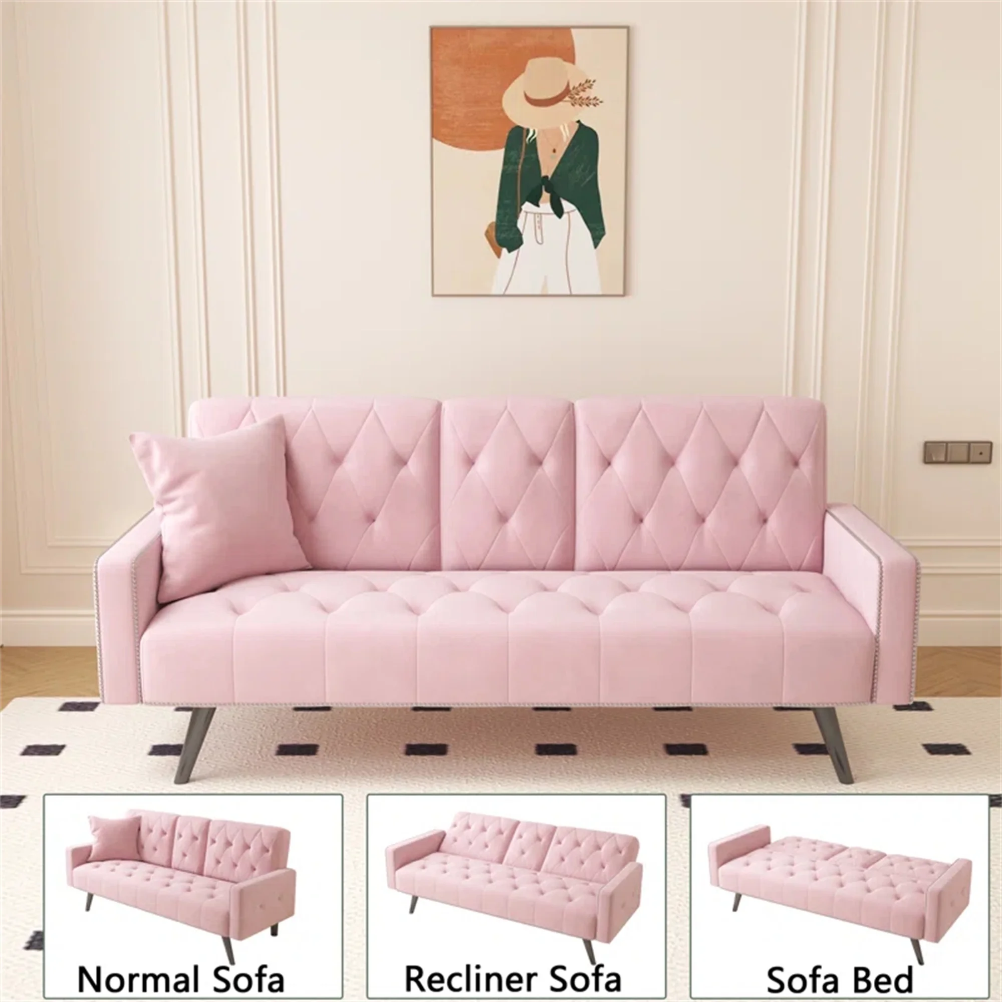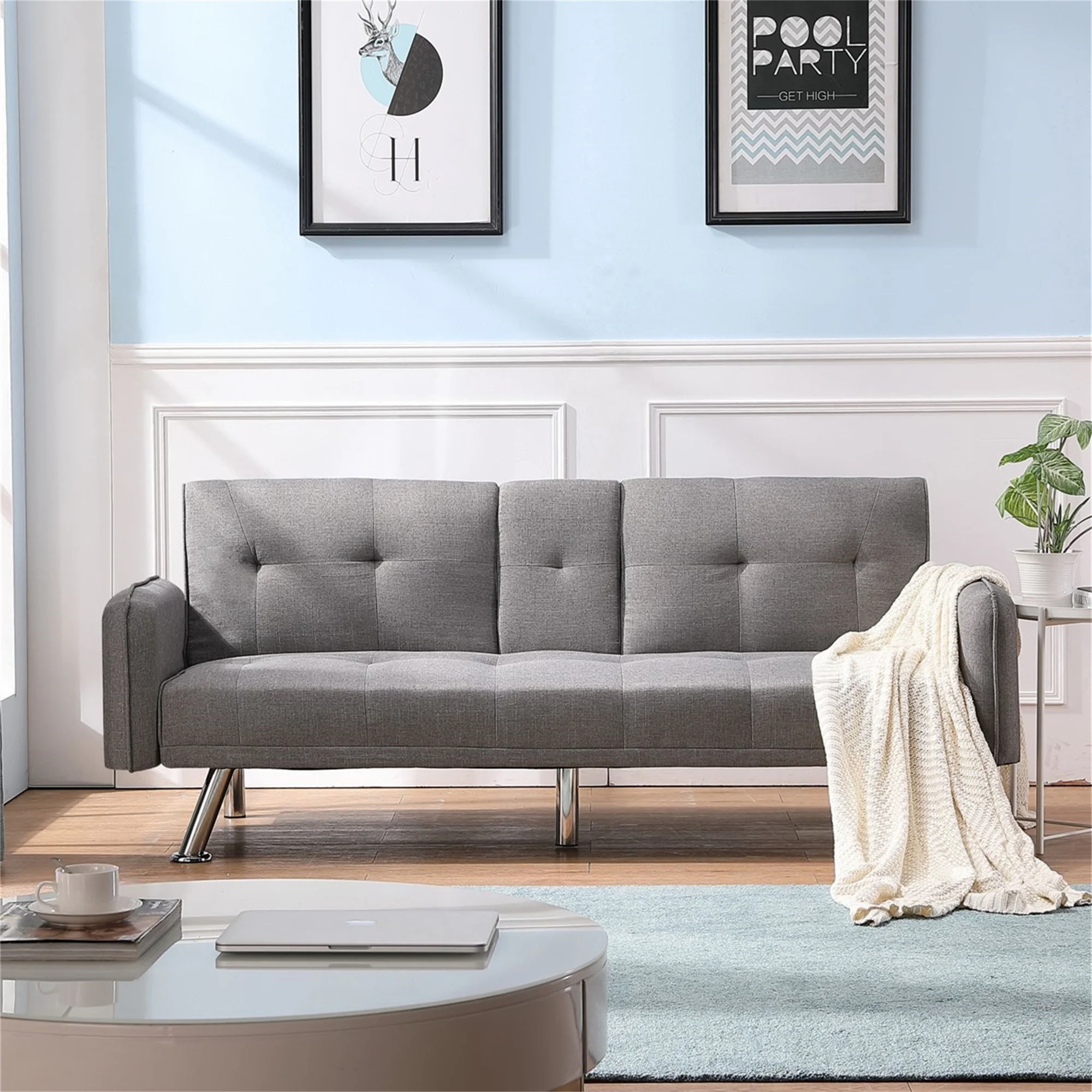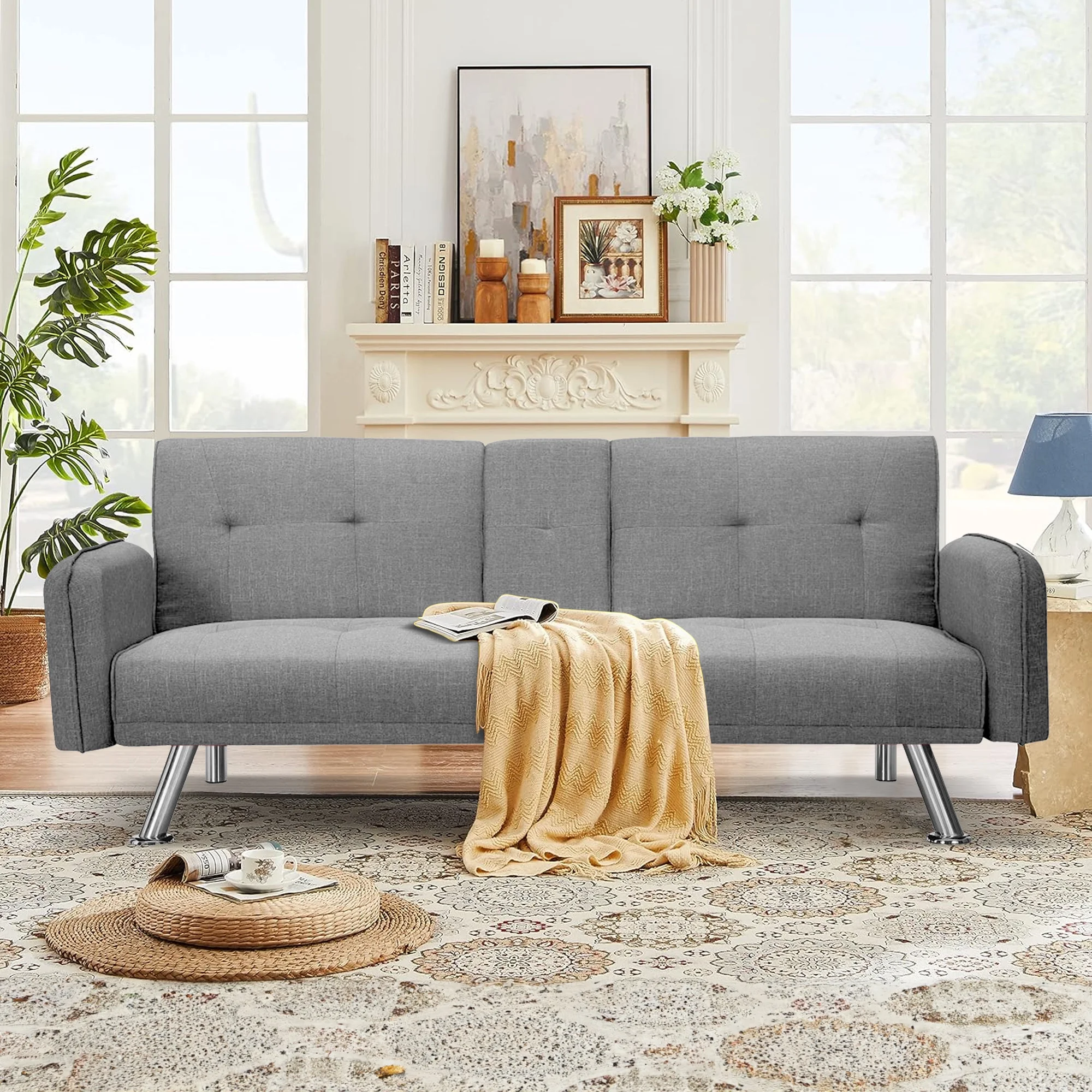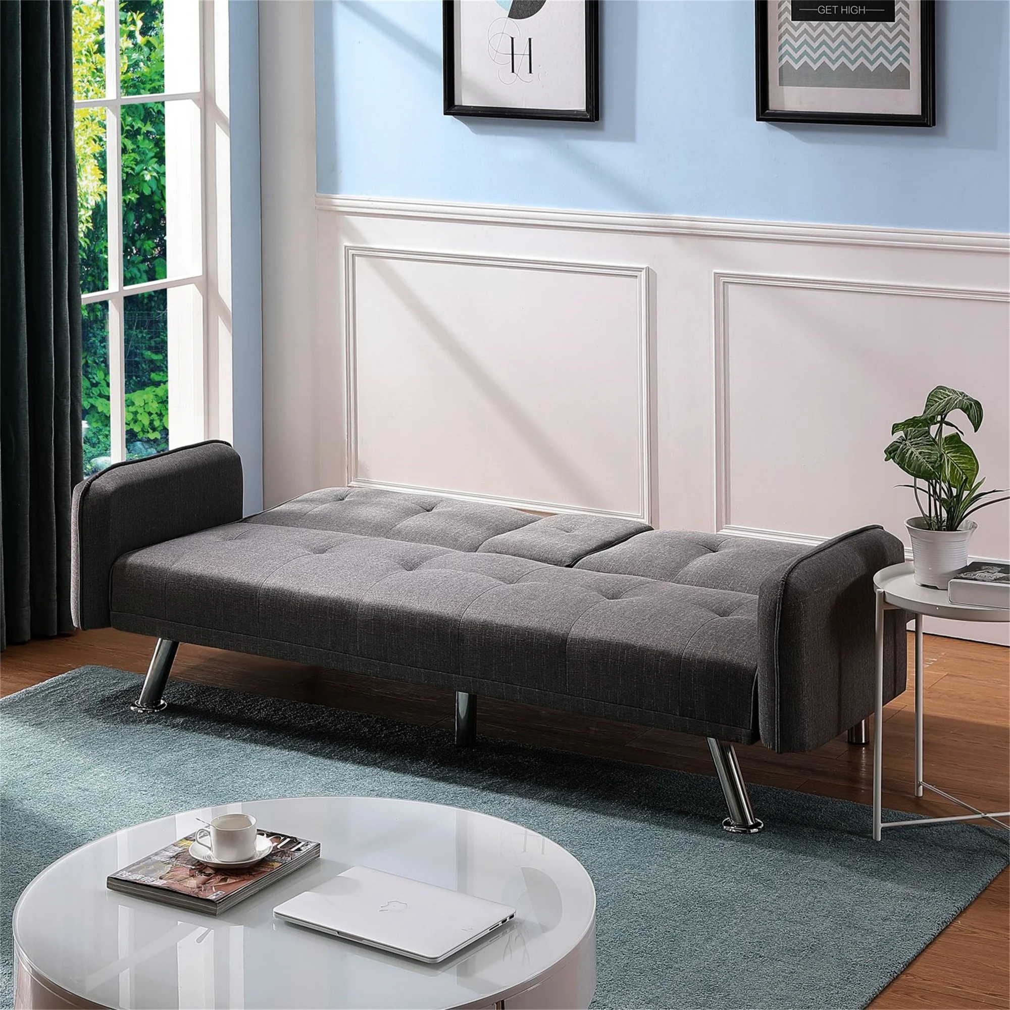 The Aukfa AK-FF01-038 futon sofa bed is a classic addition to your home that will never go out of style. Designed to provide ultimate comfort and style, this versatile sofa bed features breathable linen upholstery that adds a touch of sophistication to any room. The tufted detail adds a classic, refined touch to the sofa bed, enhancing its visual appeal and complementing a variety of interior styles. Enjoy the convenience of built-in features, including a handy cup holder integrated into the backrest, which makes it easy to keep your beverages close while you relax. This feature also offers additional support whether you're sitting, lounging, or sleeping. Disguised as a sofa, it has a spacious seating room while providing the functional features of a futon. A simple push or pull can easily convert from seating to a chaise or sleeping position, letting you relax and watch TV, read, snap, or sleep, experience the convenience of a built-in cup holder with our futon, and keep your favorite beverages within arm's reach. Such a functional futon sofa is an ideal choice for you.