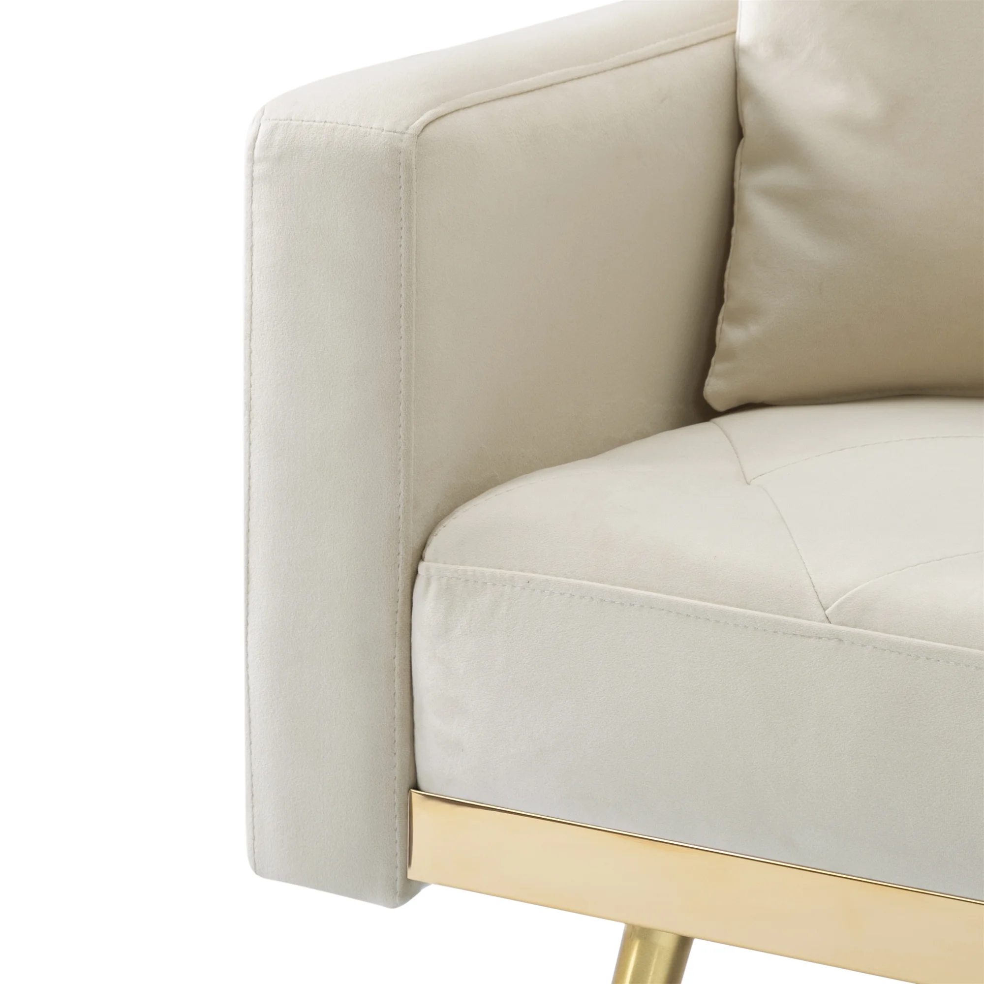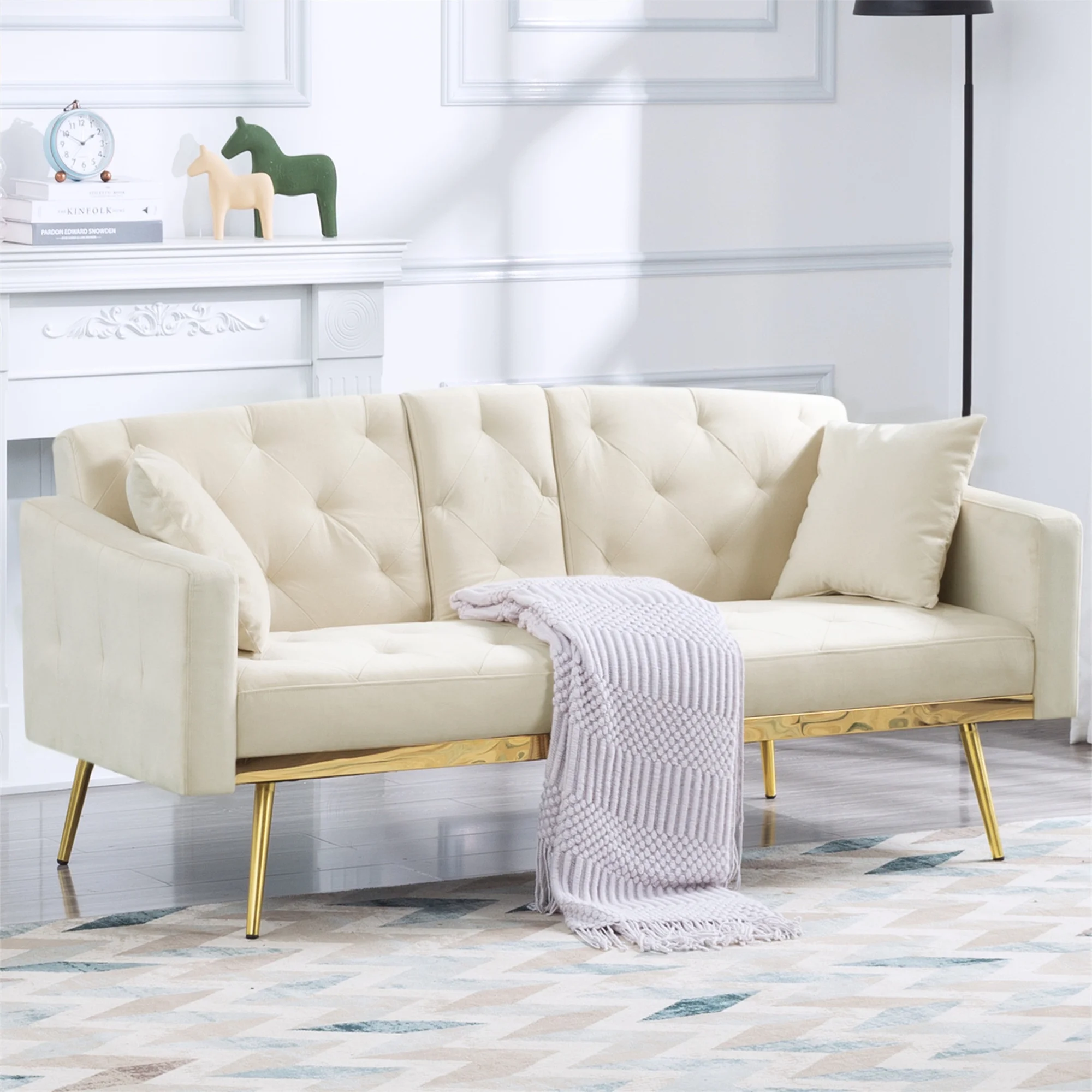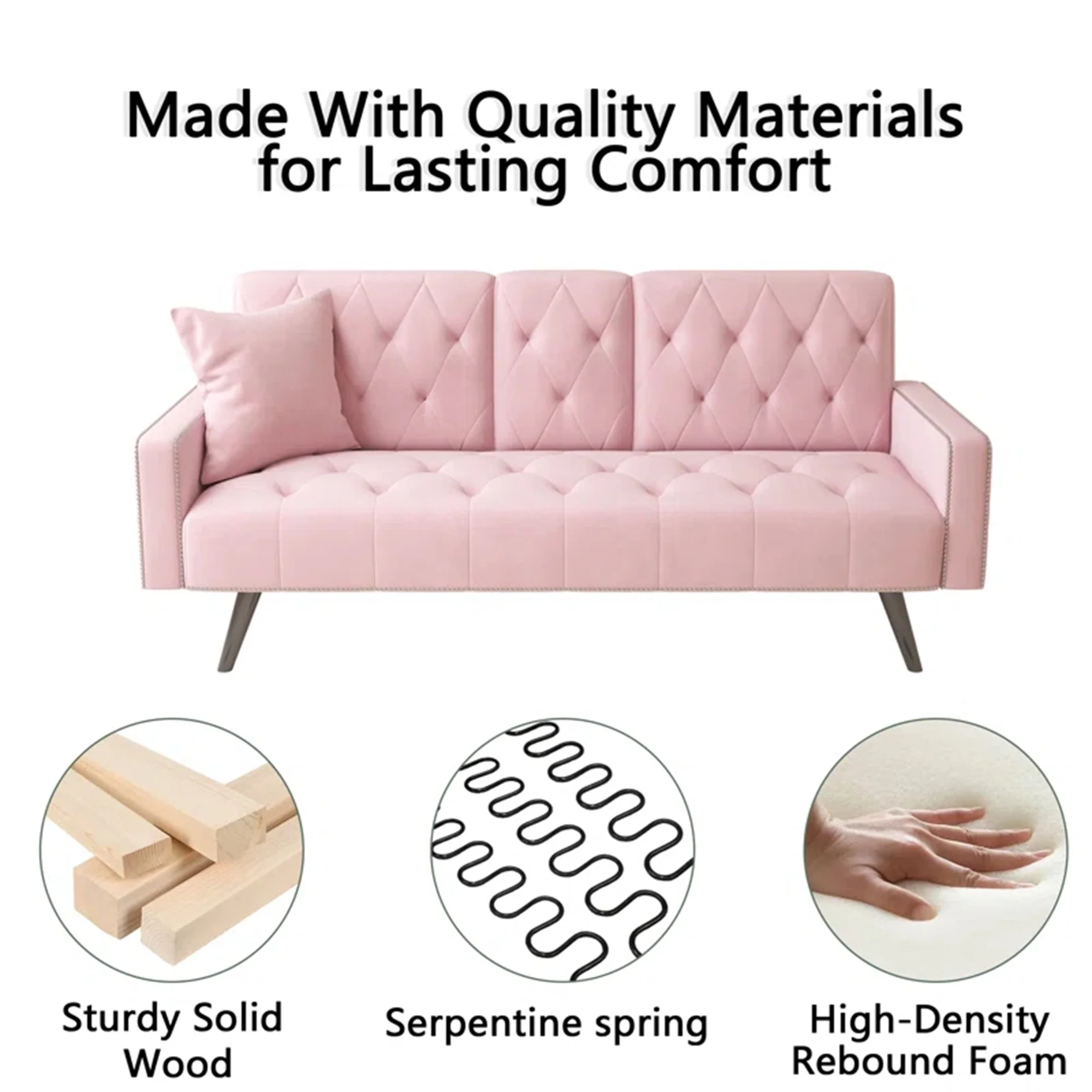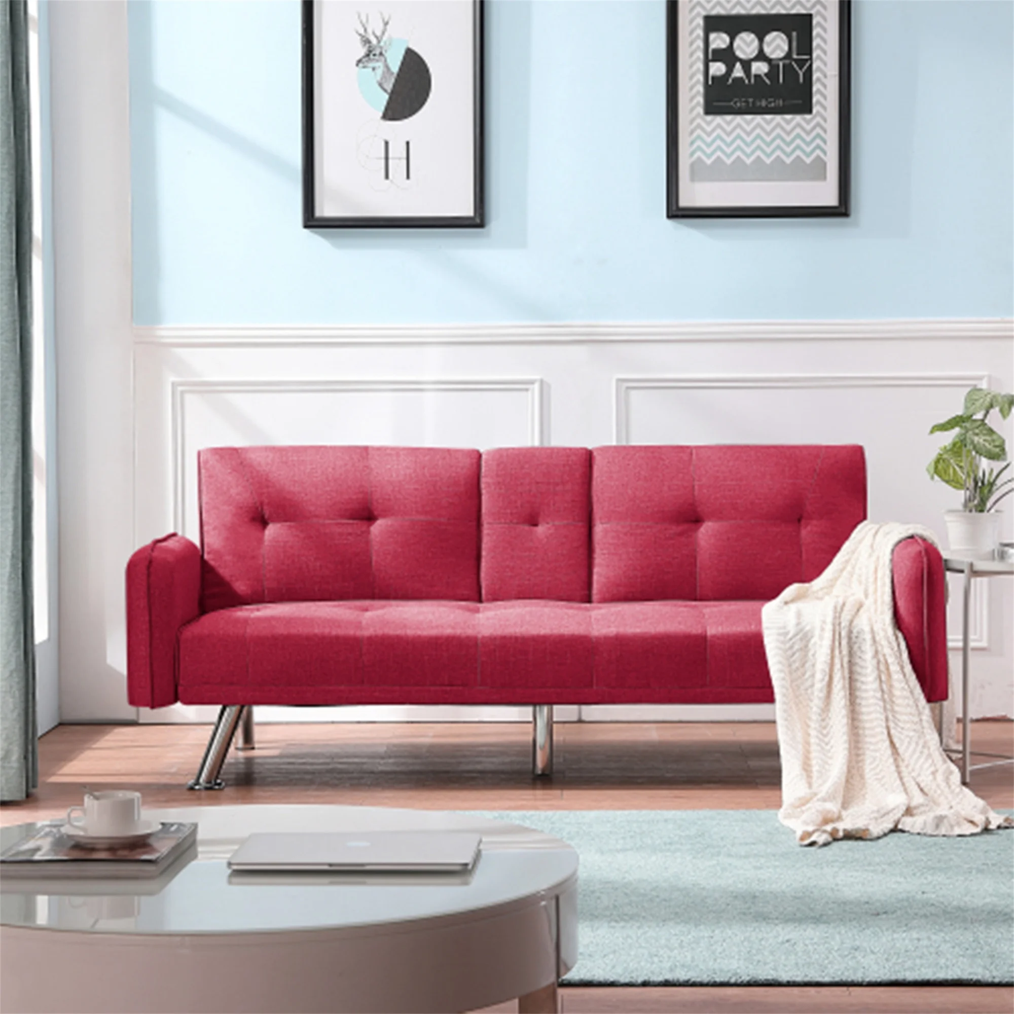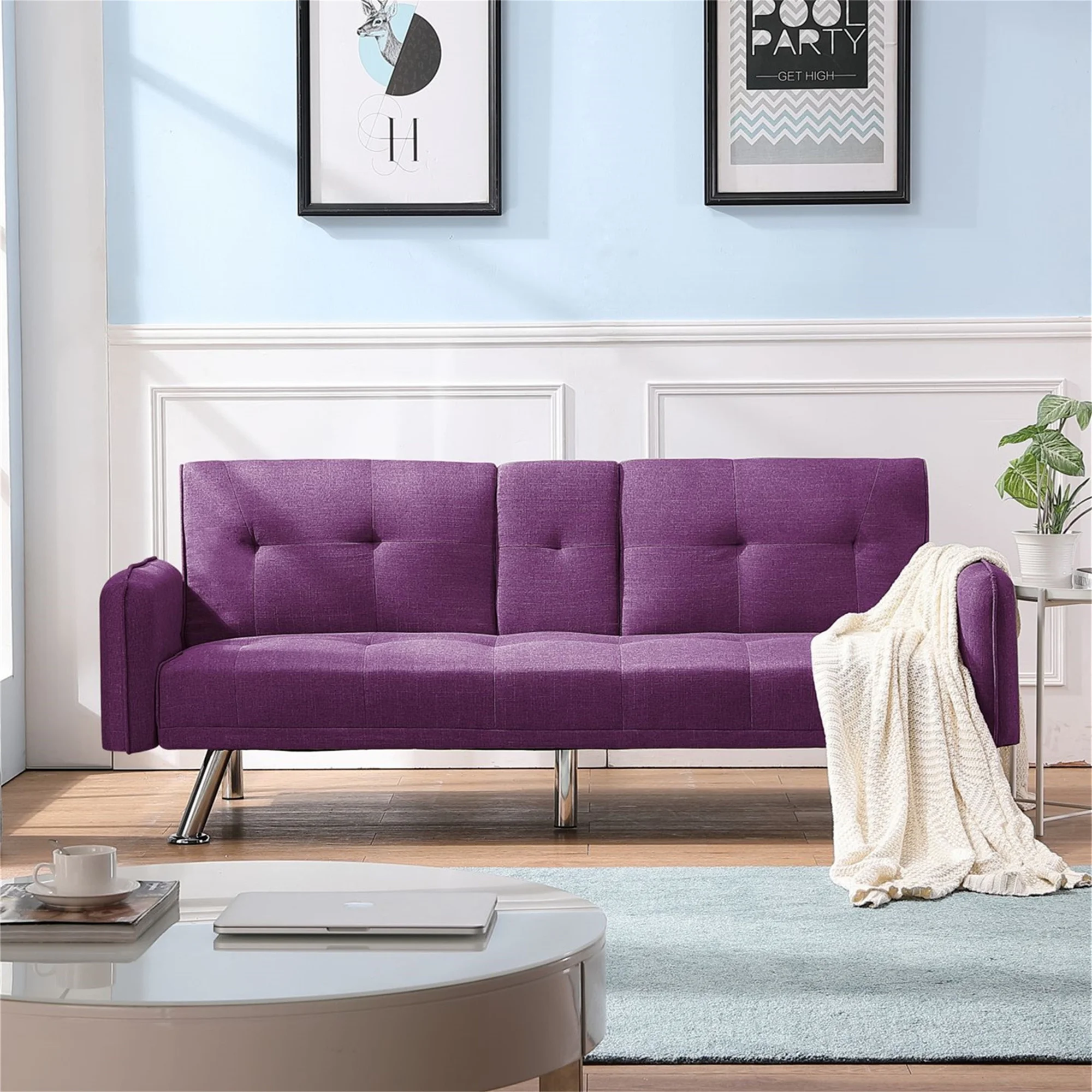 - COMFY MATERIAL - The eye-catching solid-hued linen fabric highlights the charming face of this sofa, with an excellent touch and high-quality foam cushions. The tufted back enhances the design, and the armrest can be removed and placed on the other side when sleeping.