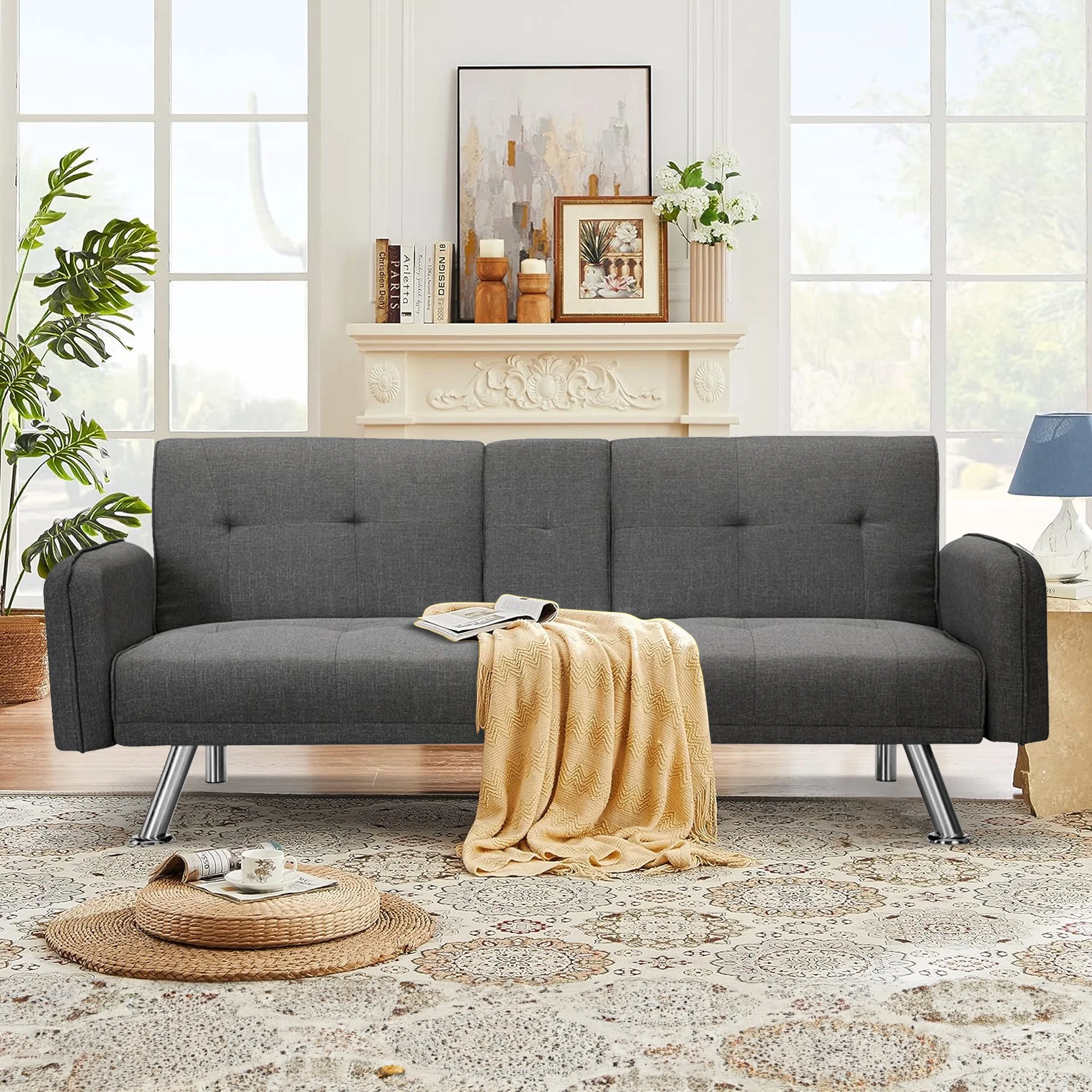 - DURABLE - Elevated on 5 metal legs, this futon sofa bed features a wooden frame, breathable linen fabric upholstery, foam fill, and metal zig-zag springs for a robust structure and unmatched durability.