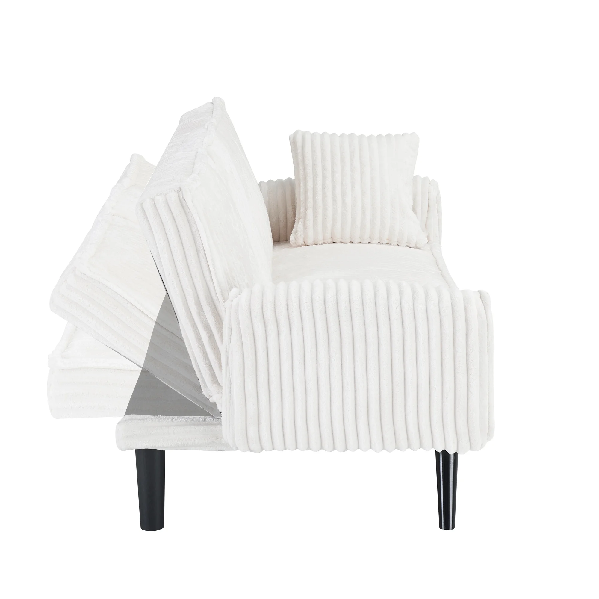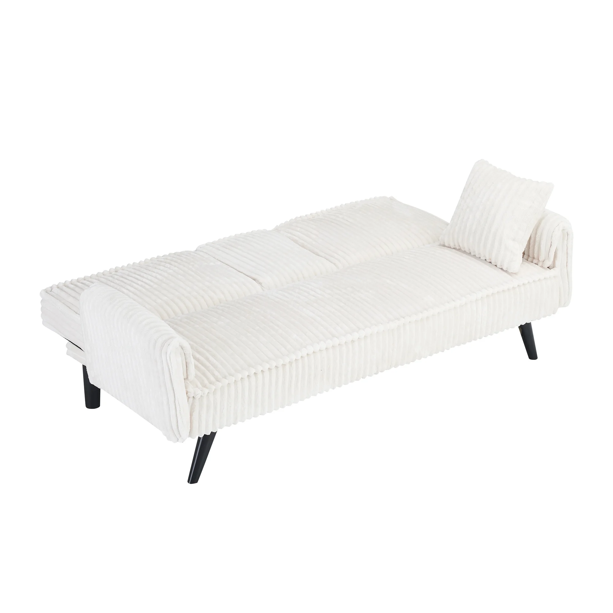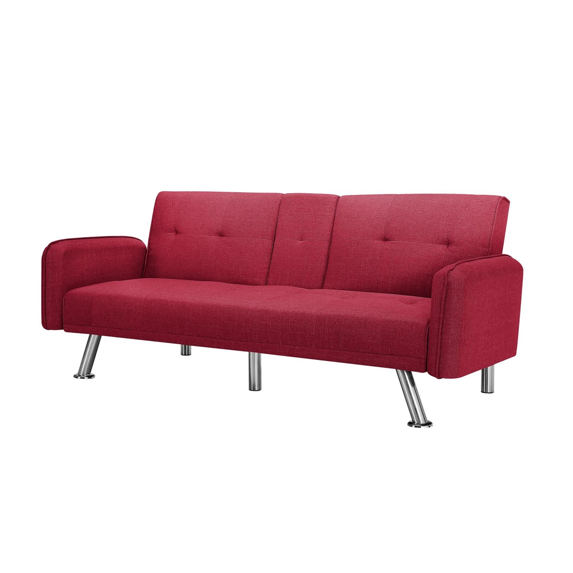 - CONVERTIBLE SOFA BED - This futon sofa bed features a folding contraption that locks the back at 105 degrees for reading/TV or 140 degrees for lounging. It can also be rolled down to a twin-size bed.