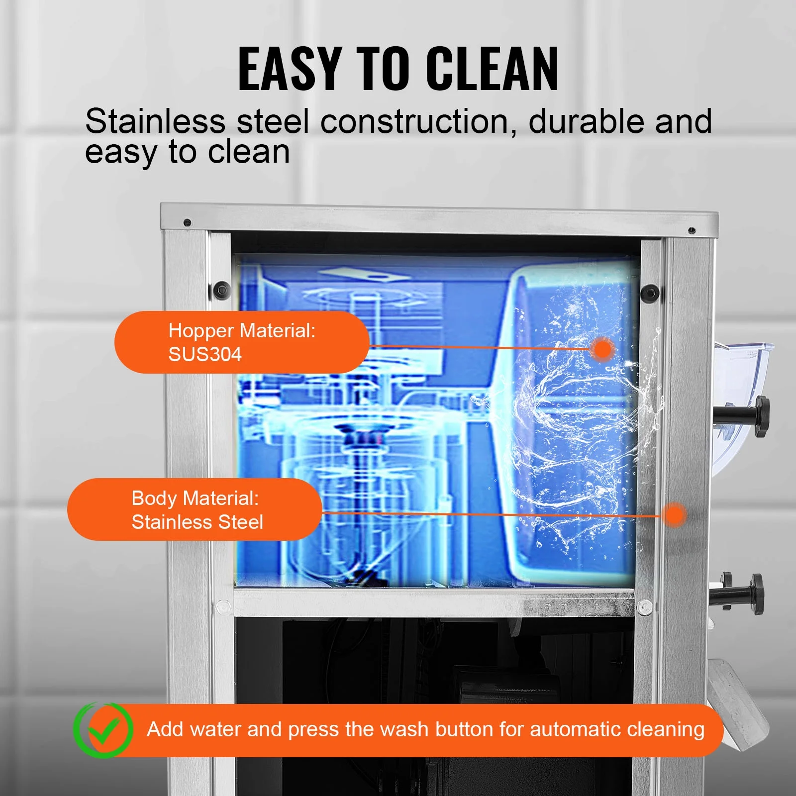 - Sturdy and Hygienic: Crafted with high-quality SUS201 stainless steel, the commercial ice cream maker is solid and durable. Its food-grade SUS304 stainless steel refrigeration cylinder ensures rust-resistance and easy cleaning, guaranteeing both longevity and food safety.