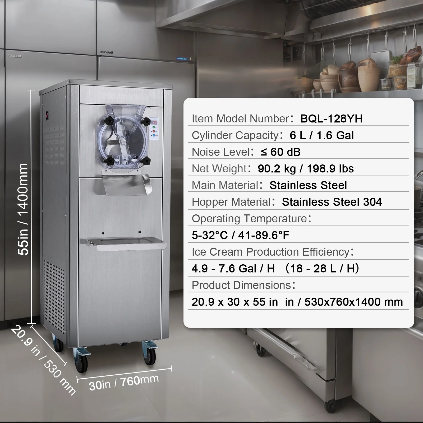 - Efficient and Reliable: The commercial ice cream machine is capable of producing up to 18L/4.8 gal of ice cream per hour, ensuring high productivity. It operates efficiently in ambient temperatures ranging from 5 to 32��C / 41 to 89.6��F. With its powerful compressor, this ice cream machine features rapid cooling and pre-cooling functions, allowing for lightning-fast 20-minute production.