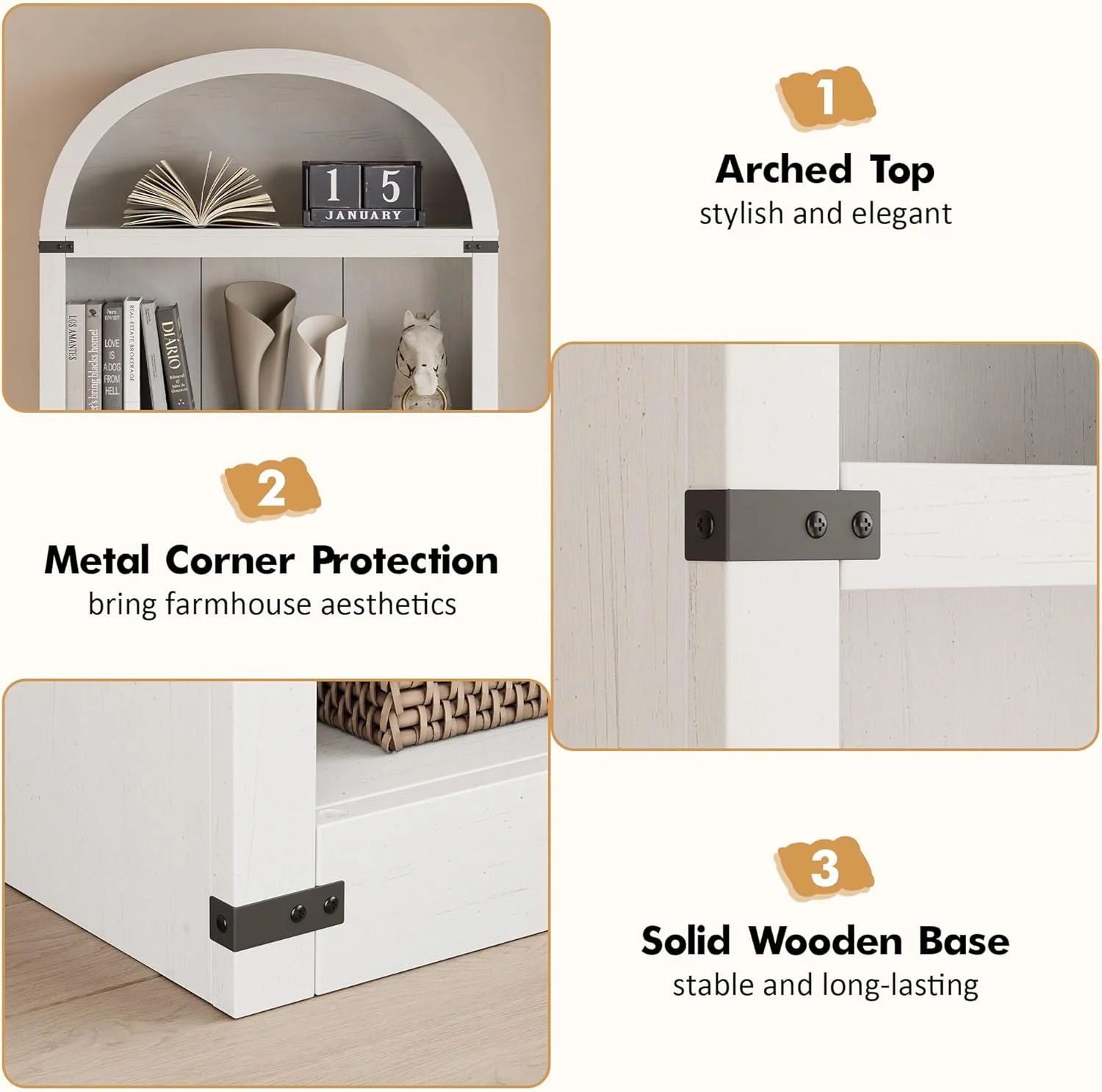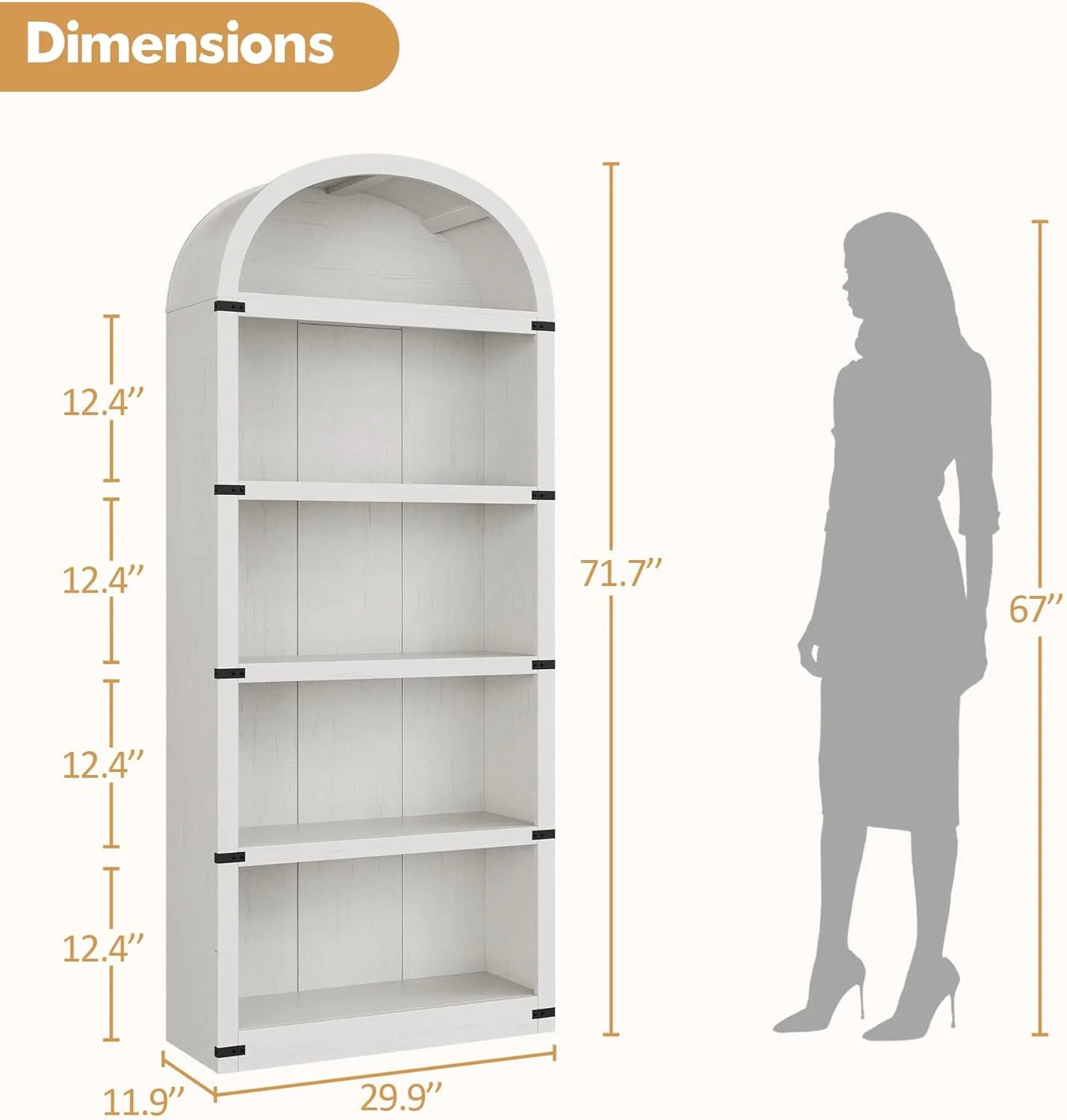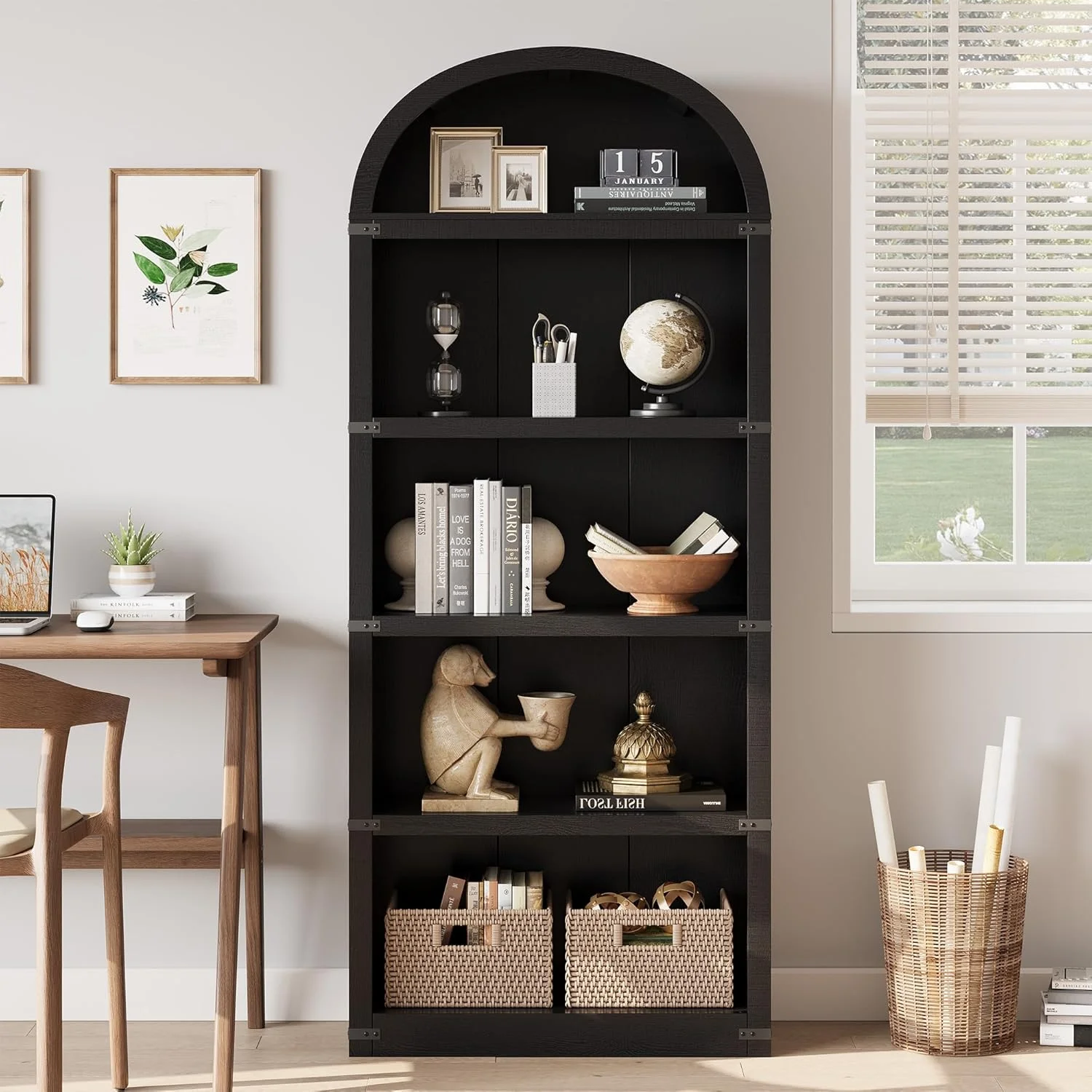 - 2.Elegant Farmhouse Design: Tall 71.65-inch arched bookshelf with a classic black finish adds a stylish rustic charm to any room.