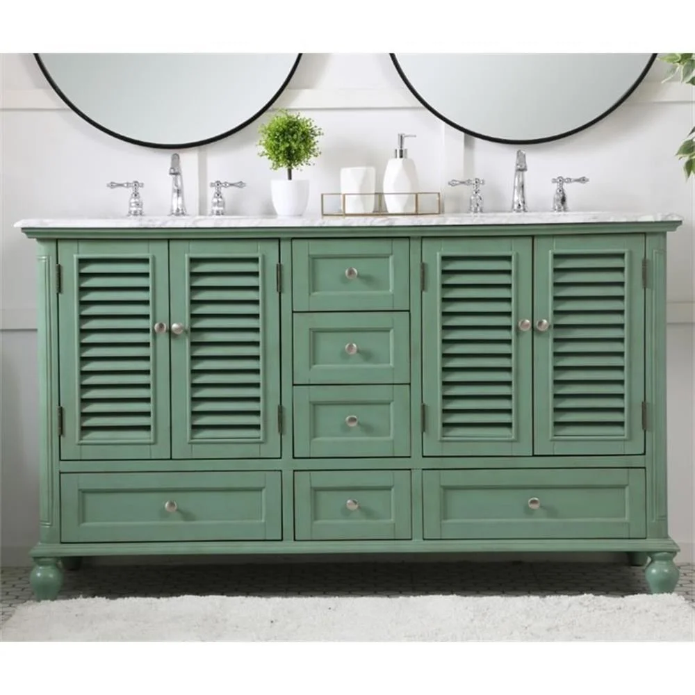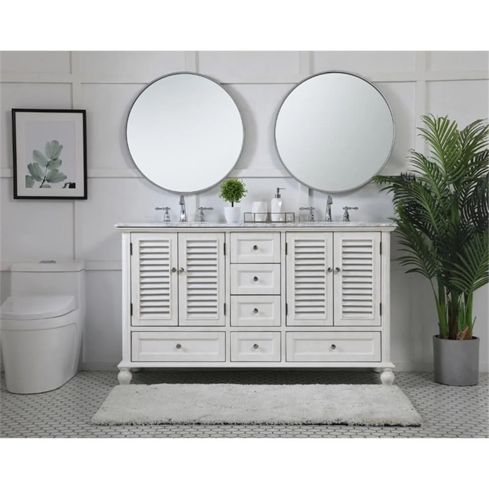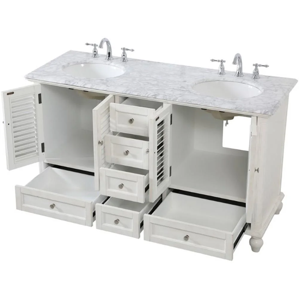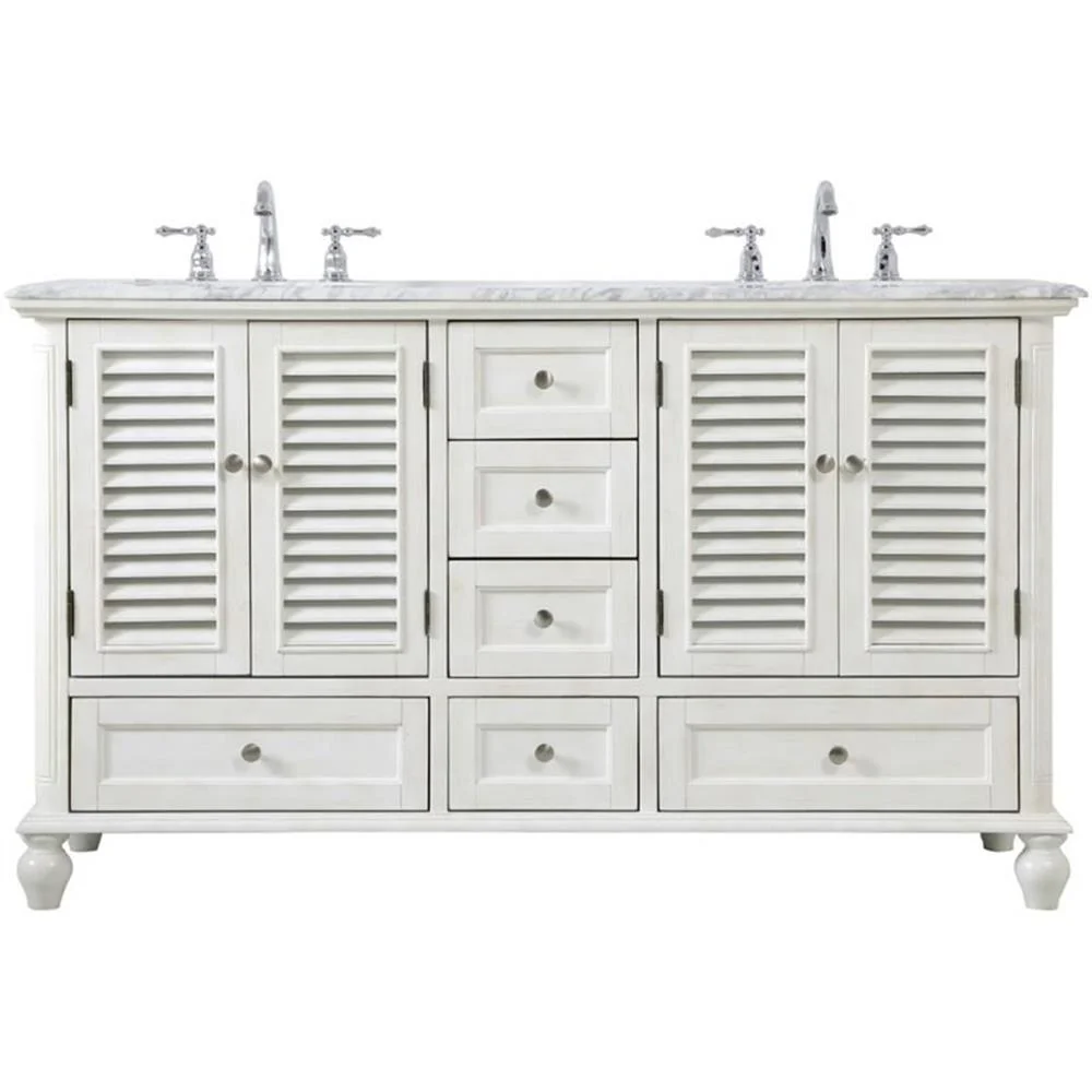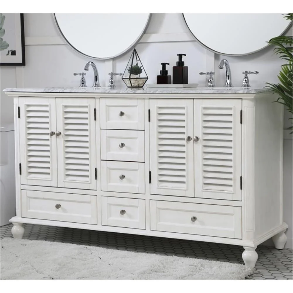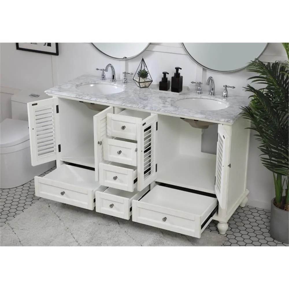 60 inch Double Bathroom Vanity in Antique White