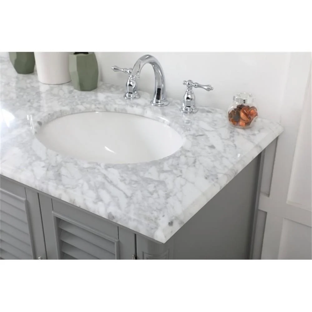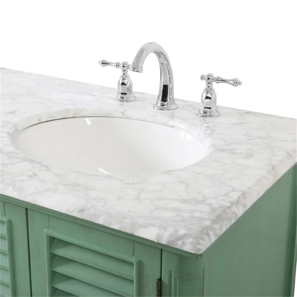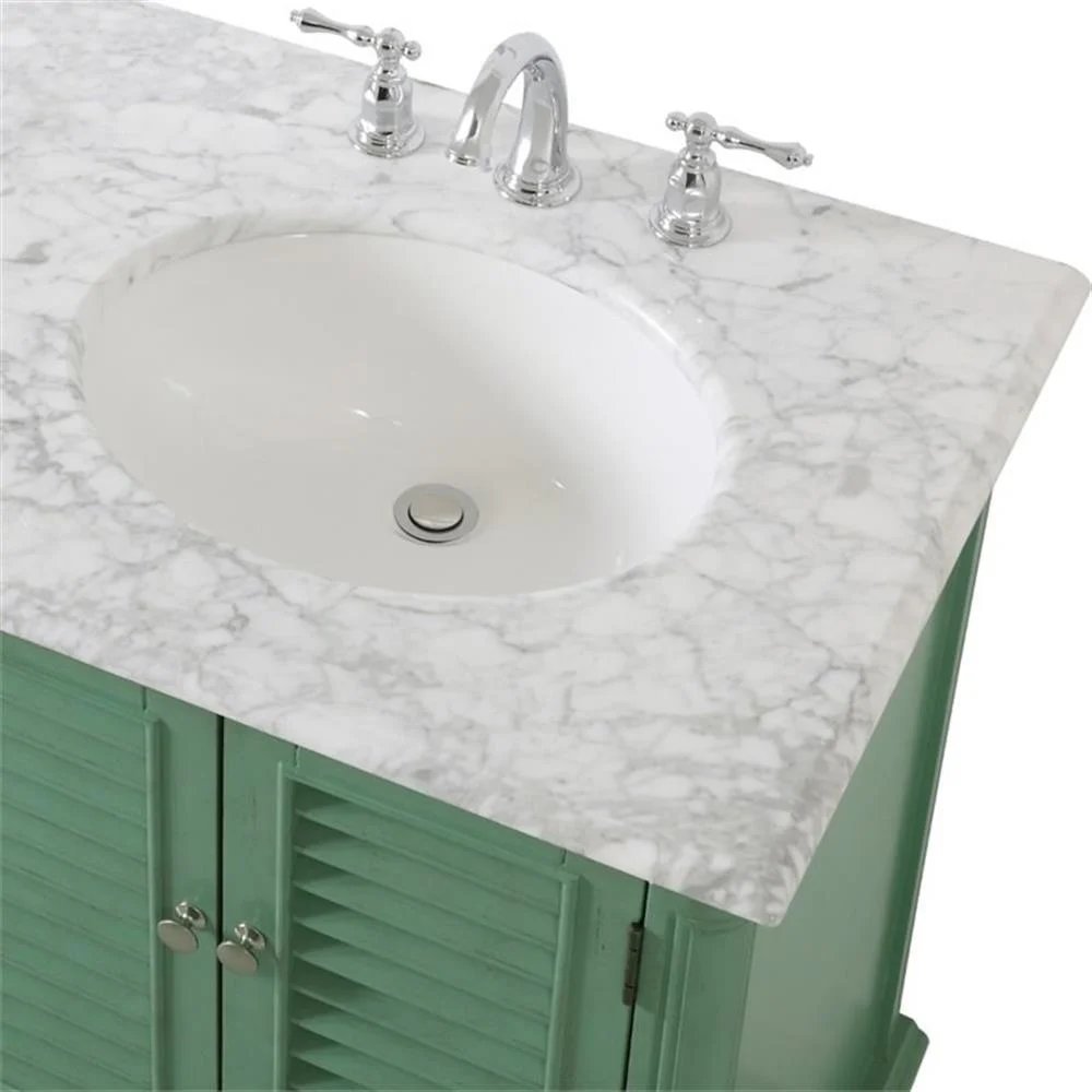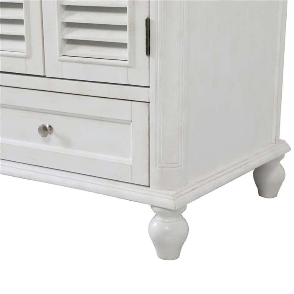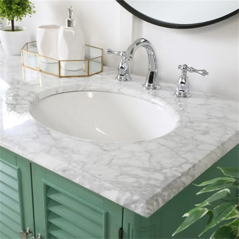 - distressed antique white finish with a luxurious Carrara White marble countertop