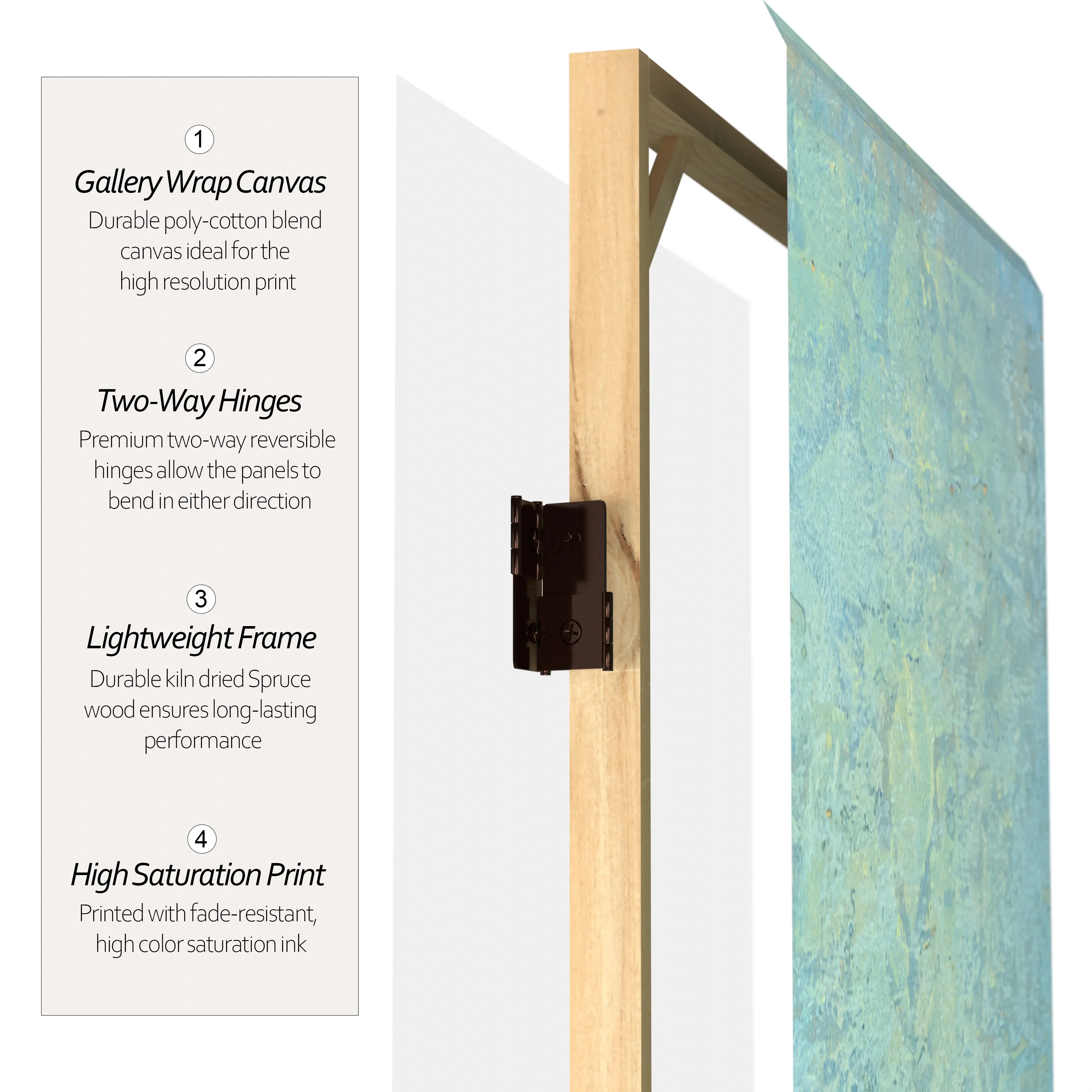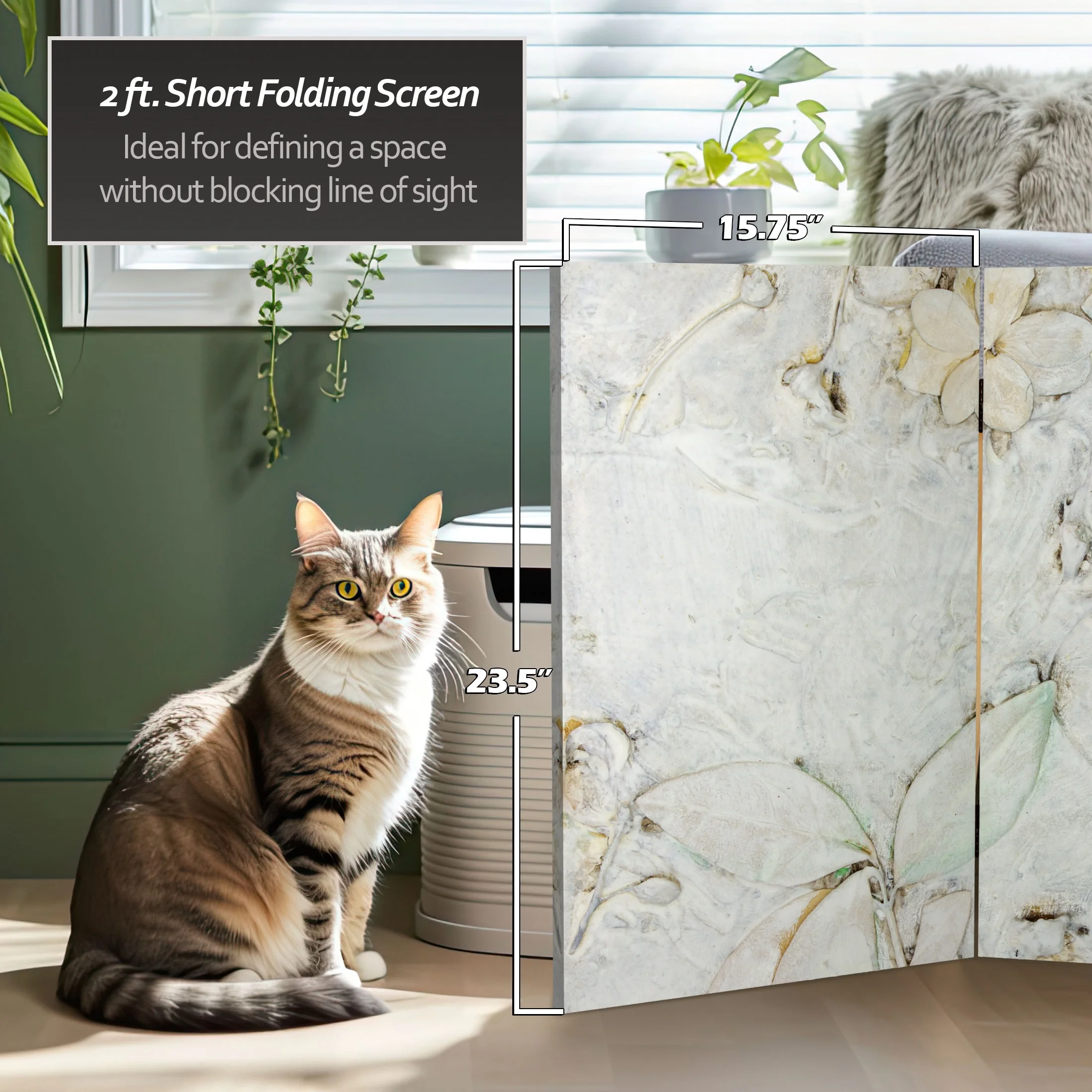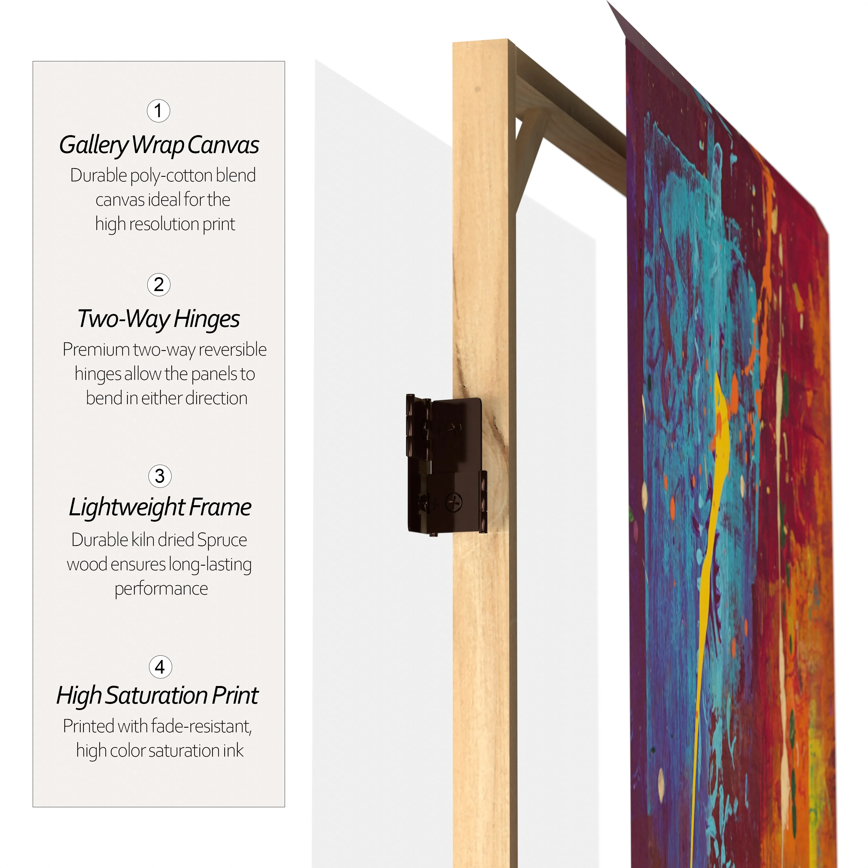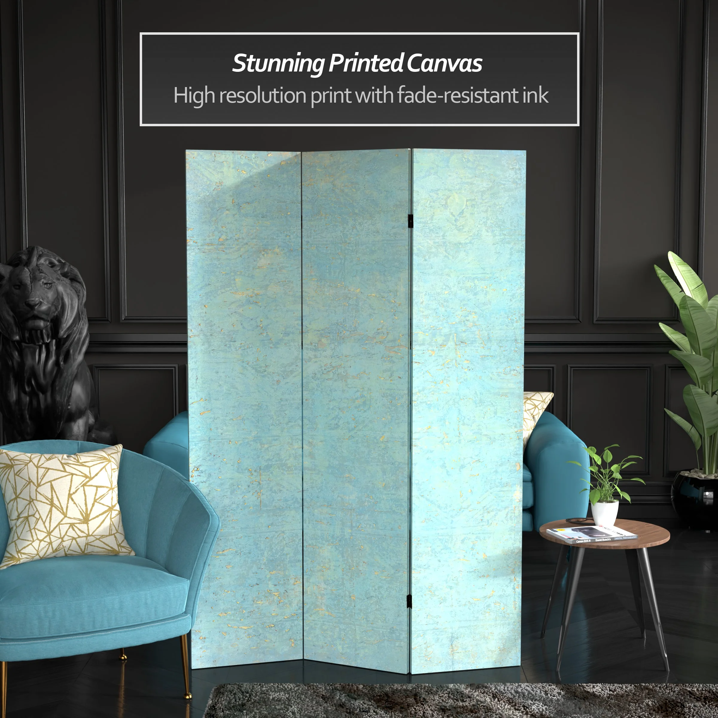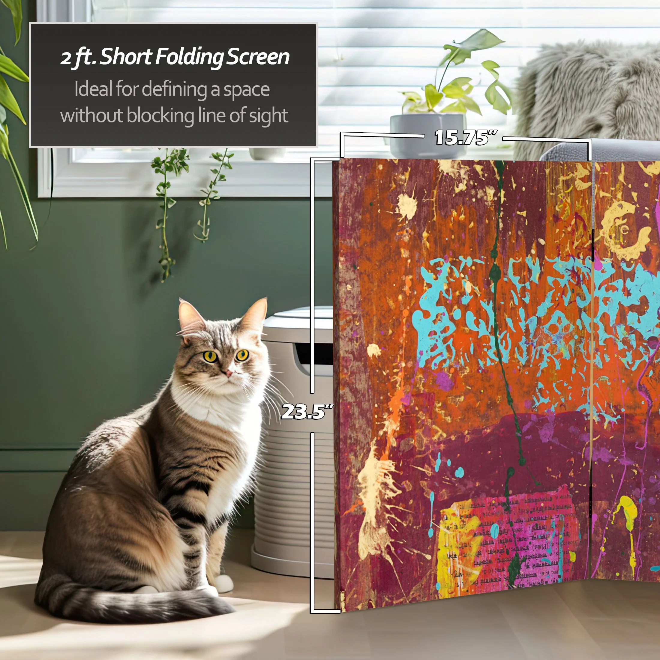 Let your mind take a walk through the woods with this six panel canvas room divider. The earthy design instantly transports you to the winter woods of New England.Foldable six panel screenDouble-SidedPrinted and stretched canvas over wood frameExclusive designFoldable six panel screen. Double-Sided. Printed and stretched canvas over wood frame. Exclusive design.