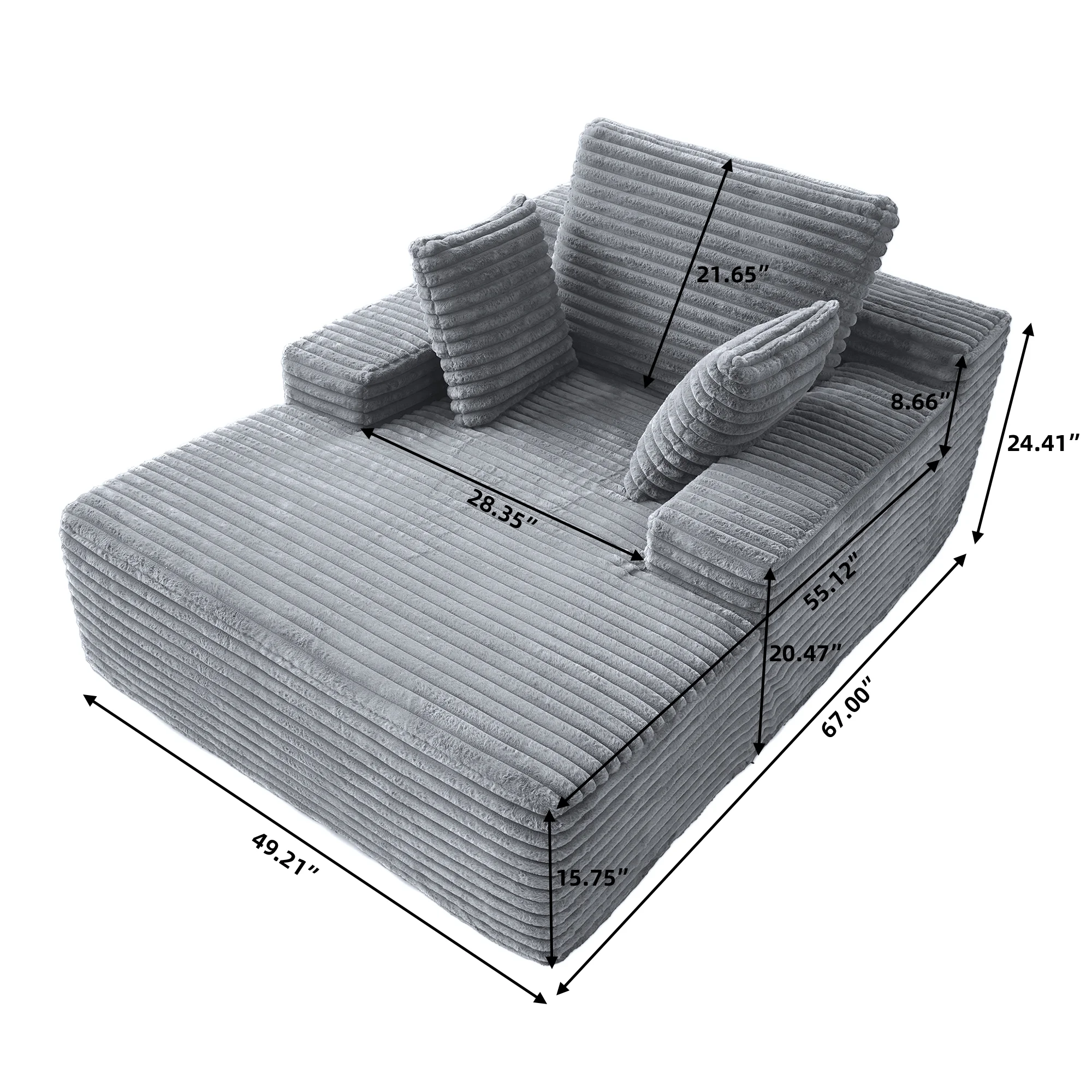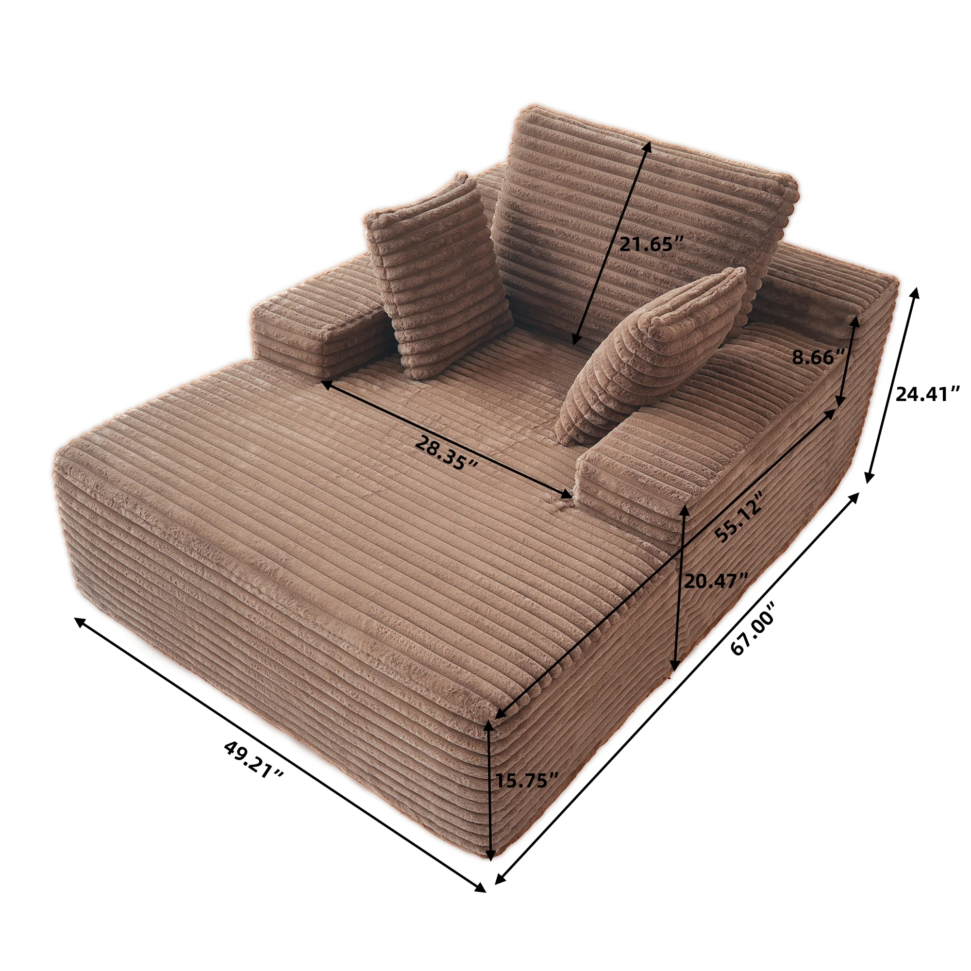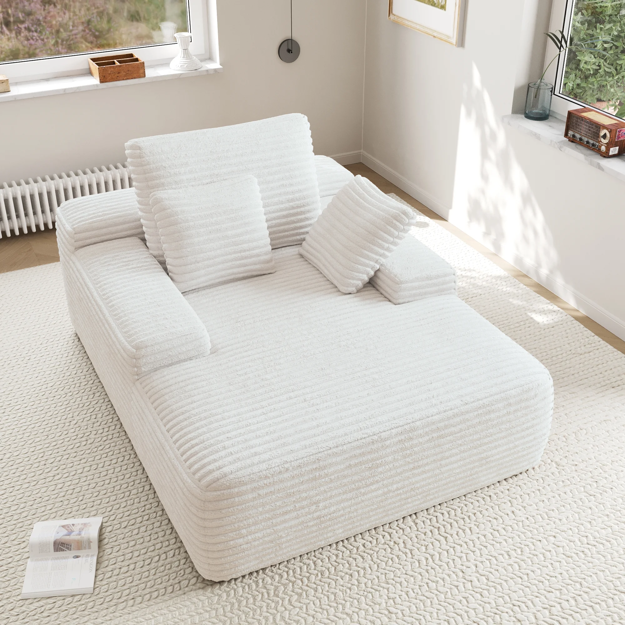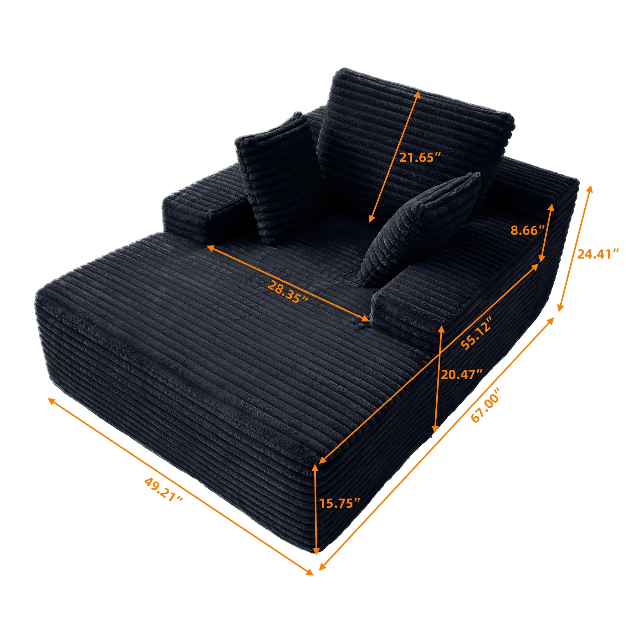 ��Premium Chaise & Supportive Comfort�� Indulge in supreme comfort with our oversized lounge chaise, draped in soft,plush corduroy fabric and filled with high-elastic sponge;its deep seating and ergonomic design provide luxurious comfort,perfect for lounging,reading,or napping in any living room or bedroom.