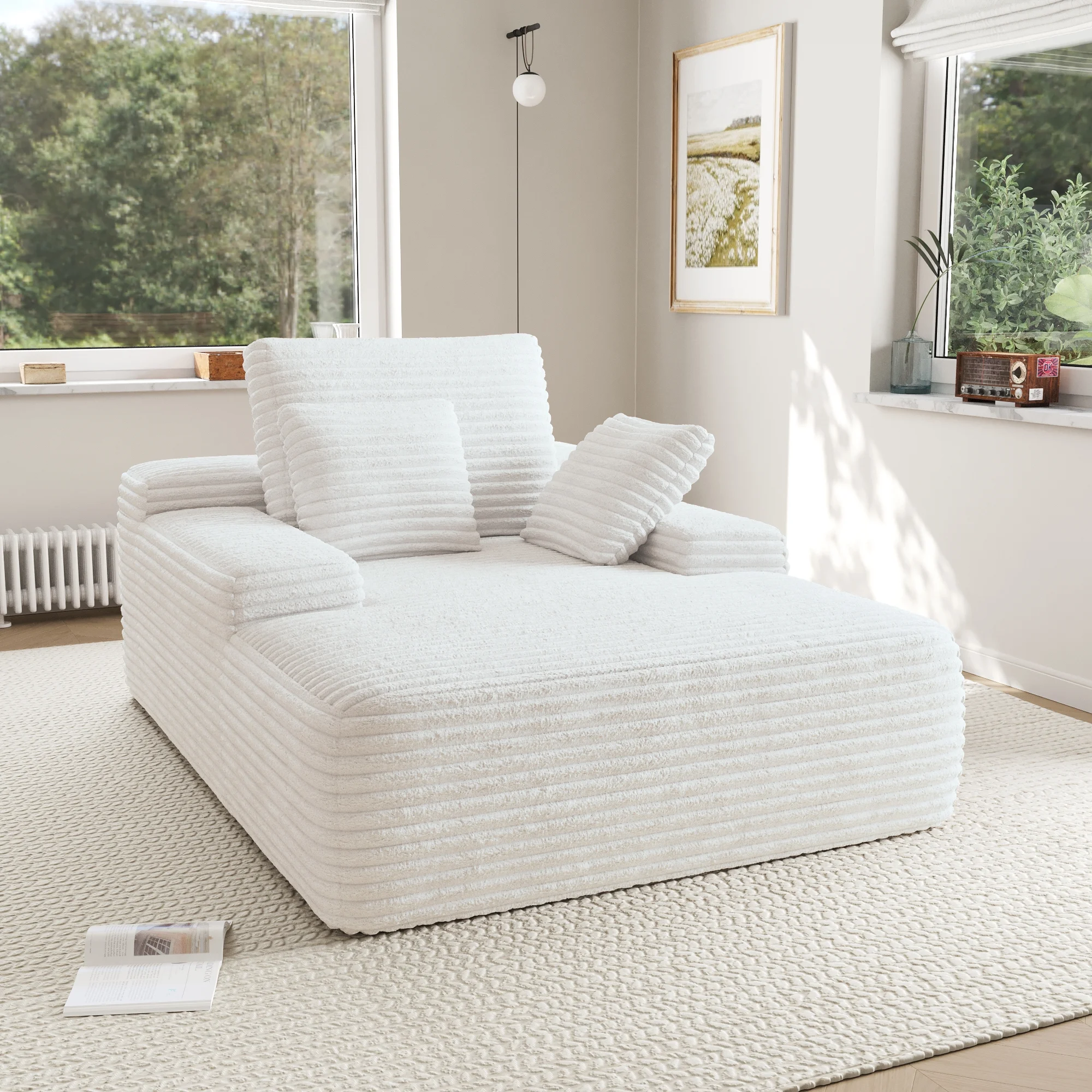 ��Multi-functional Design�� Designed to suit various needs, our oversized chaise lounge functions as a spacious chair,a cozy daybed,or a relaxing lounger; whether you're hosting movie nights,working home or simply unwinding after a long day, it adds versatile style and comfort to any space.