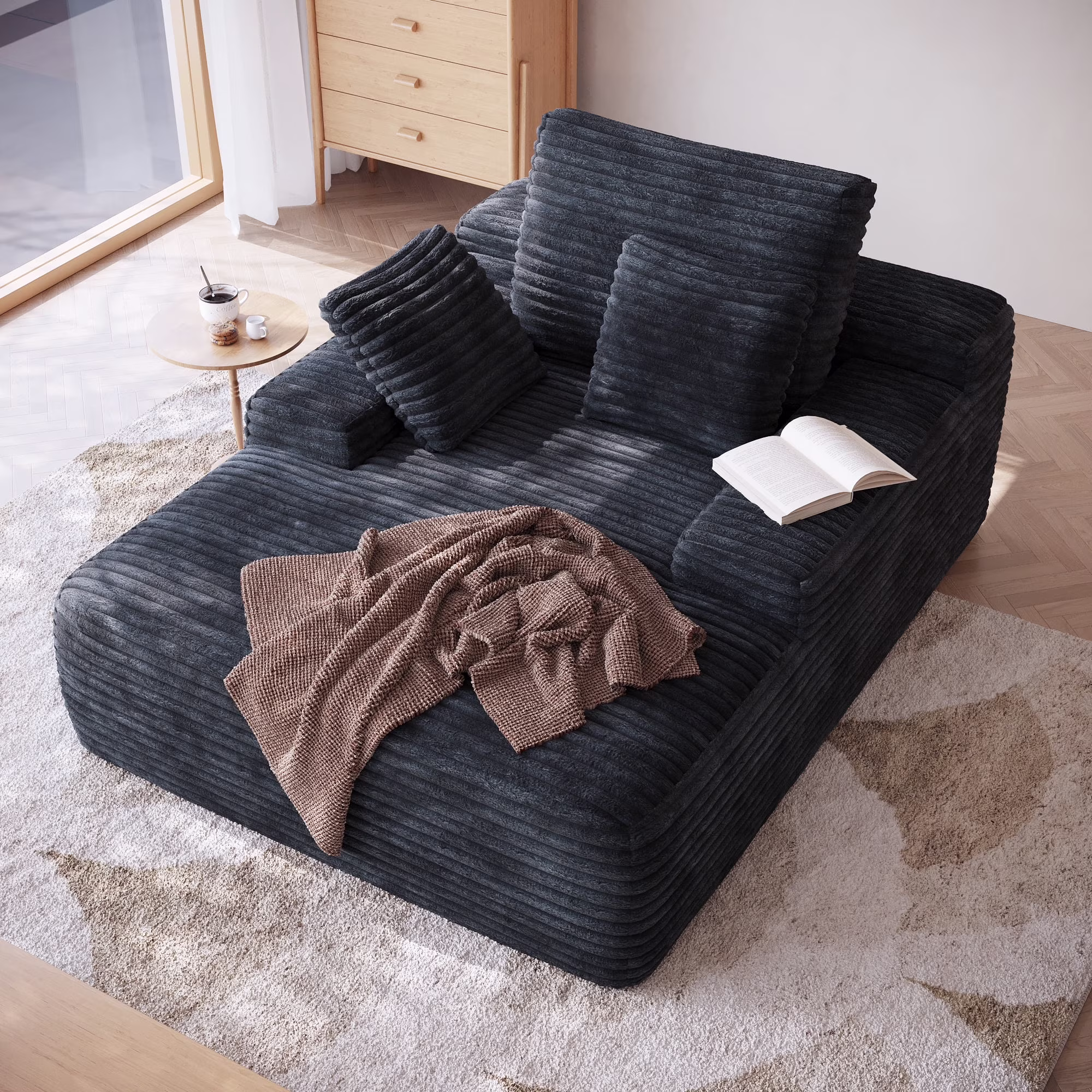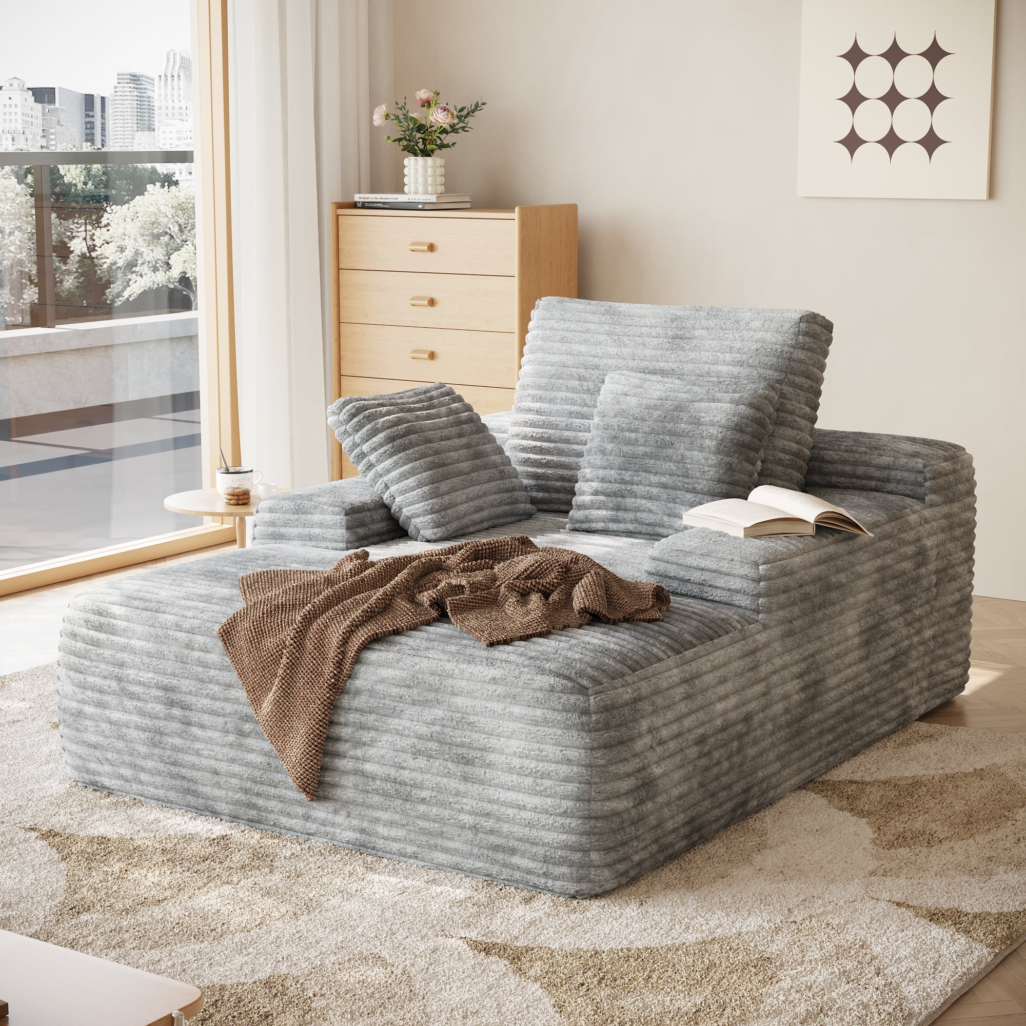 Indulge in supreme comfort with our oversized lounge chaise,draped in soft,plush corduroy fabric and filled with high-elastic sponge;its deep seating and ergonomic design provide luxurious comfort,perfect for lounging,reading,or napping in any living room or bedroom. - ��Multi-functional Design��