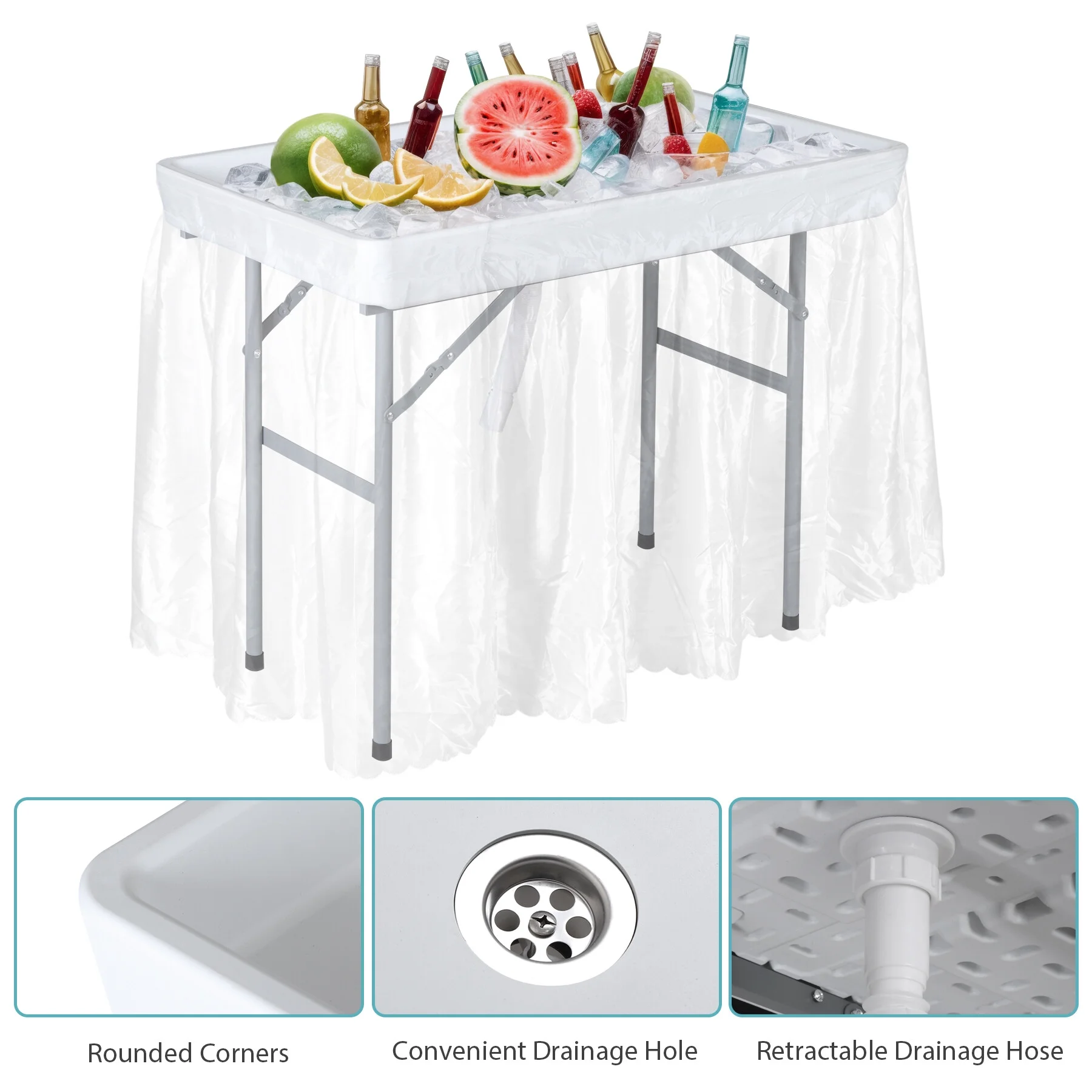 - The Ice Cooler Table folds easily for portable use and compact storage, with legs that lock securely when folded.
