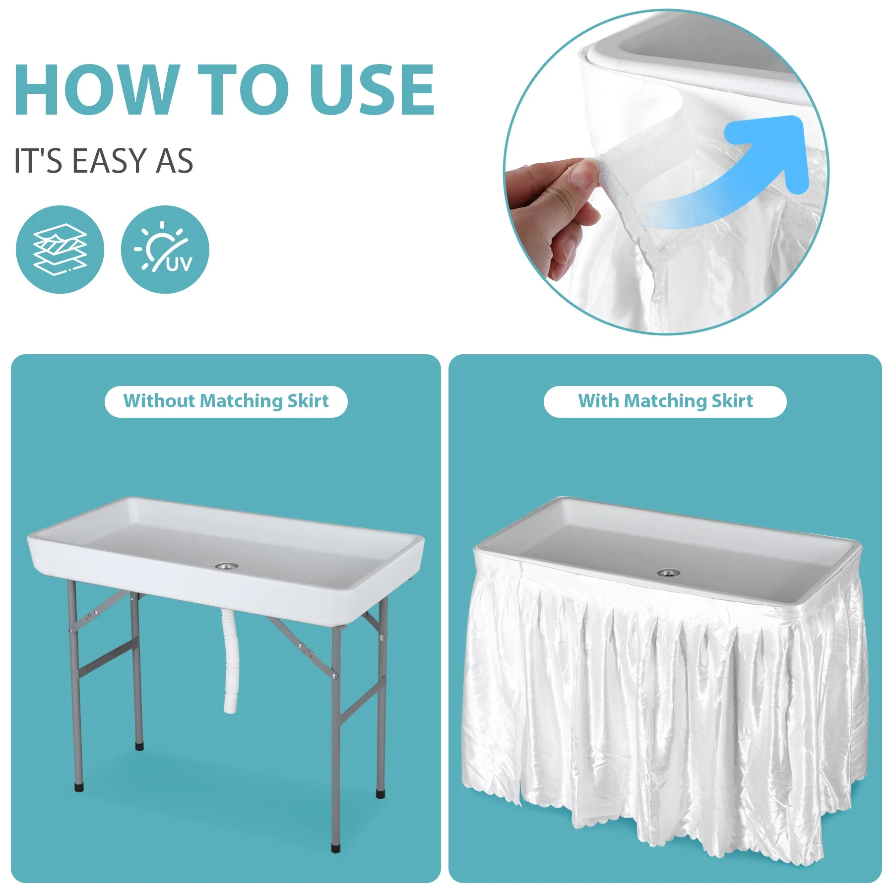 - The sink holds up to 50-60 bottles of soda, beer, tea, juice, and water, keeping everything nicely chilled, ideal for weddings, parties, picnics, camping, fishing, etc. The removable, washable skirt enhances its functionality.