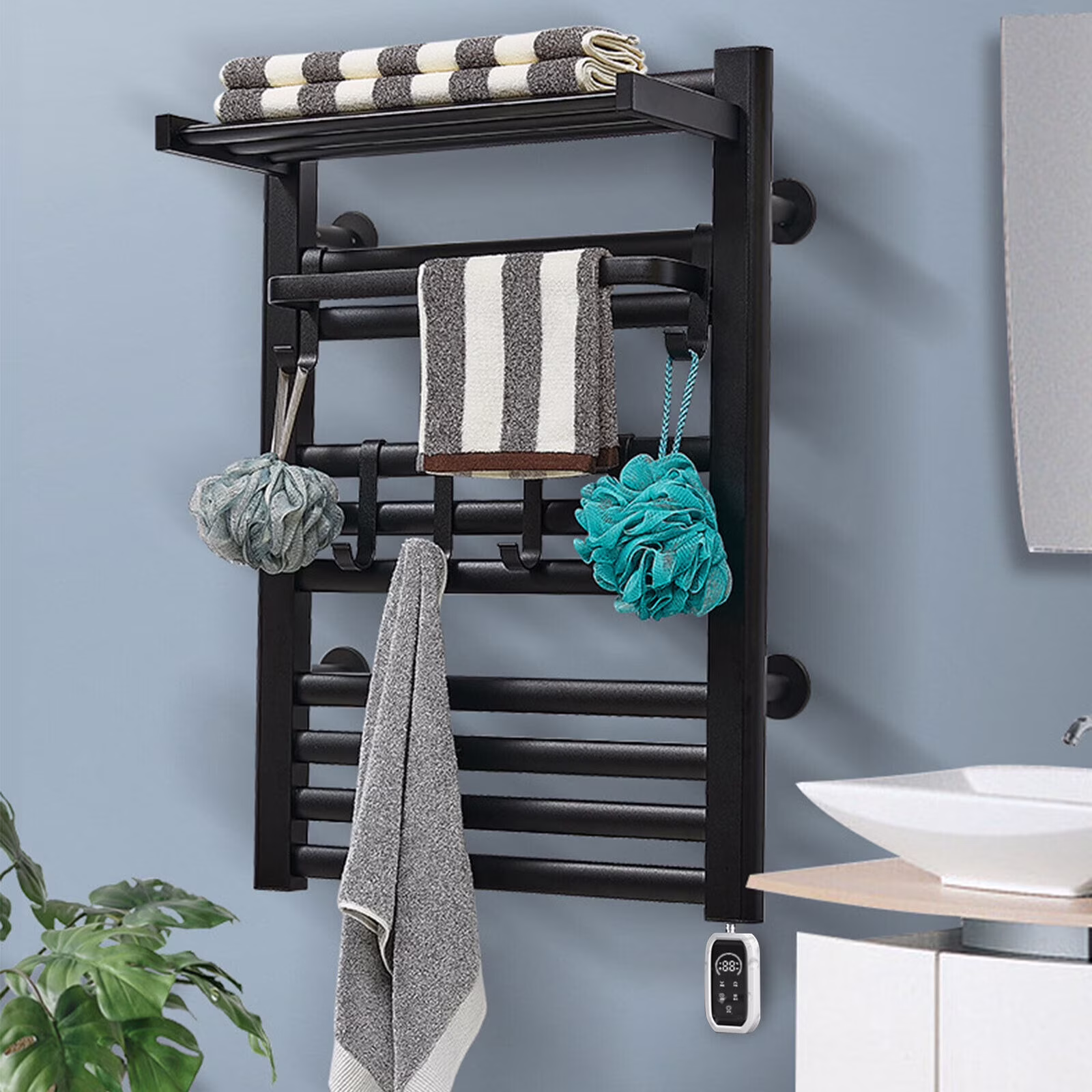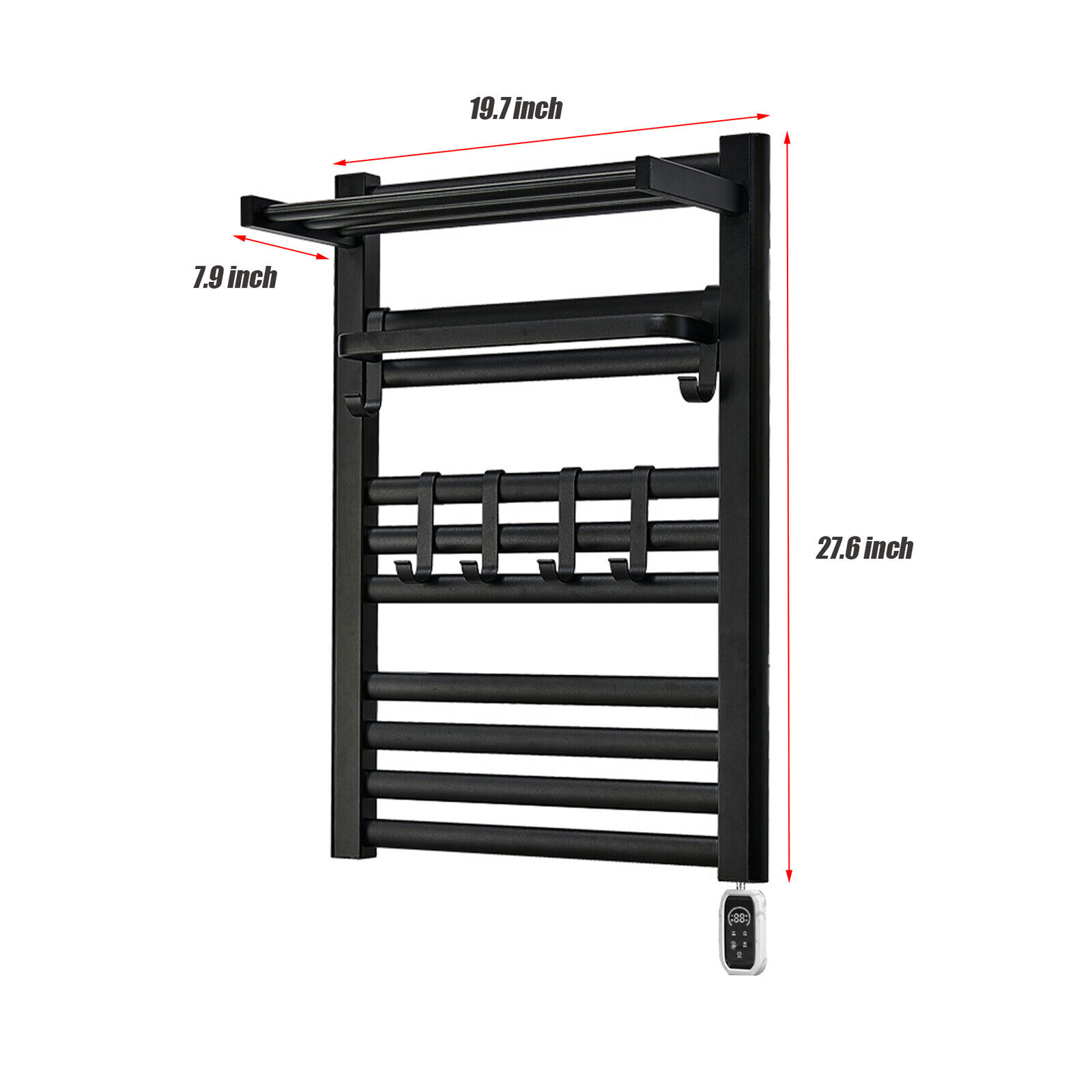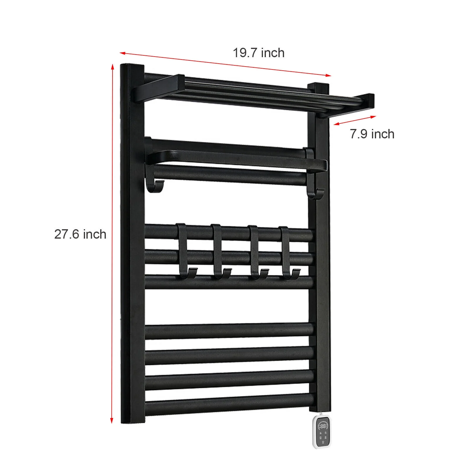 - Large Capacity and Space Saving: It has 10 heating rails and also comes with a small backpack-style railing, a top shelf, and 6 hooks. The super high utilization rate allows you to heat many of your towels and your family's towels on it, with a maximum carrying capacity of 44 pounds, saving storage space and meeting the requirements of multiple people.