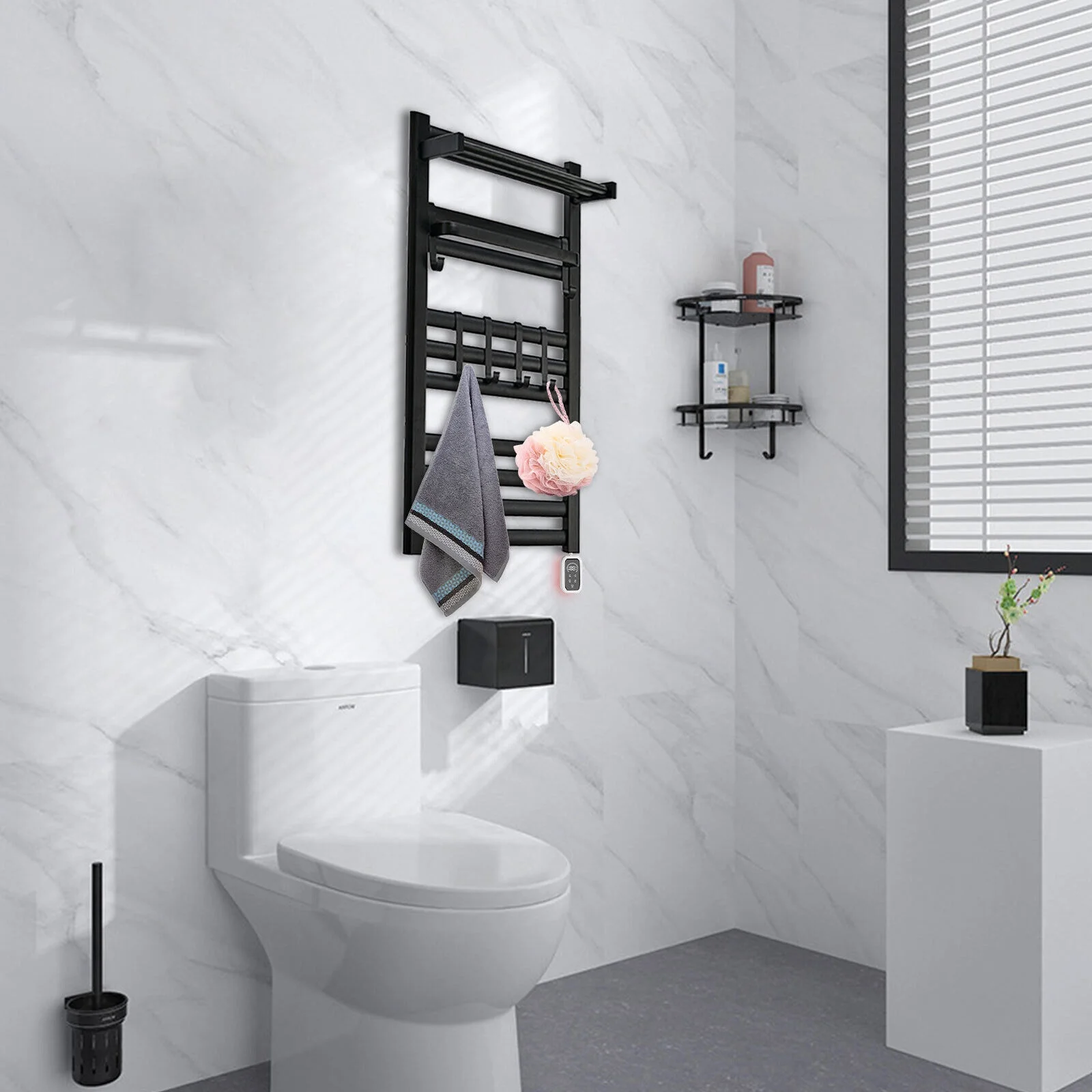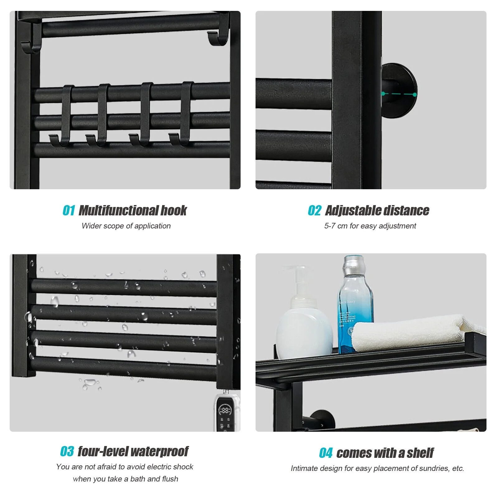 Large Capacity and Space Saving: It has 10 heating rails and also comes with a small backpack-style railing, a top shelf, and 6 hooks. The super high utilization rate allows you to heat many of your towels and your family's towels on it, with a maximum carrying capacity of 44 pounds, saving storage space and meeting the requirements of multiple people.