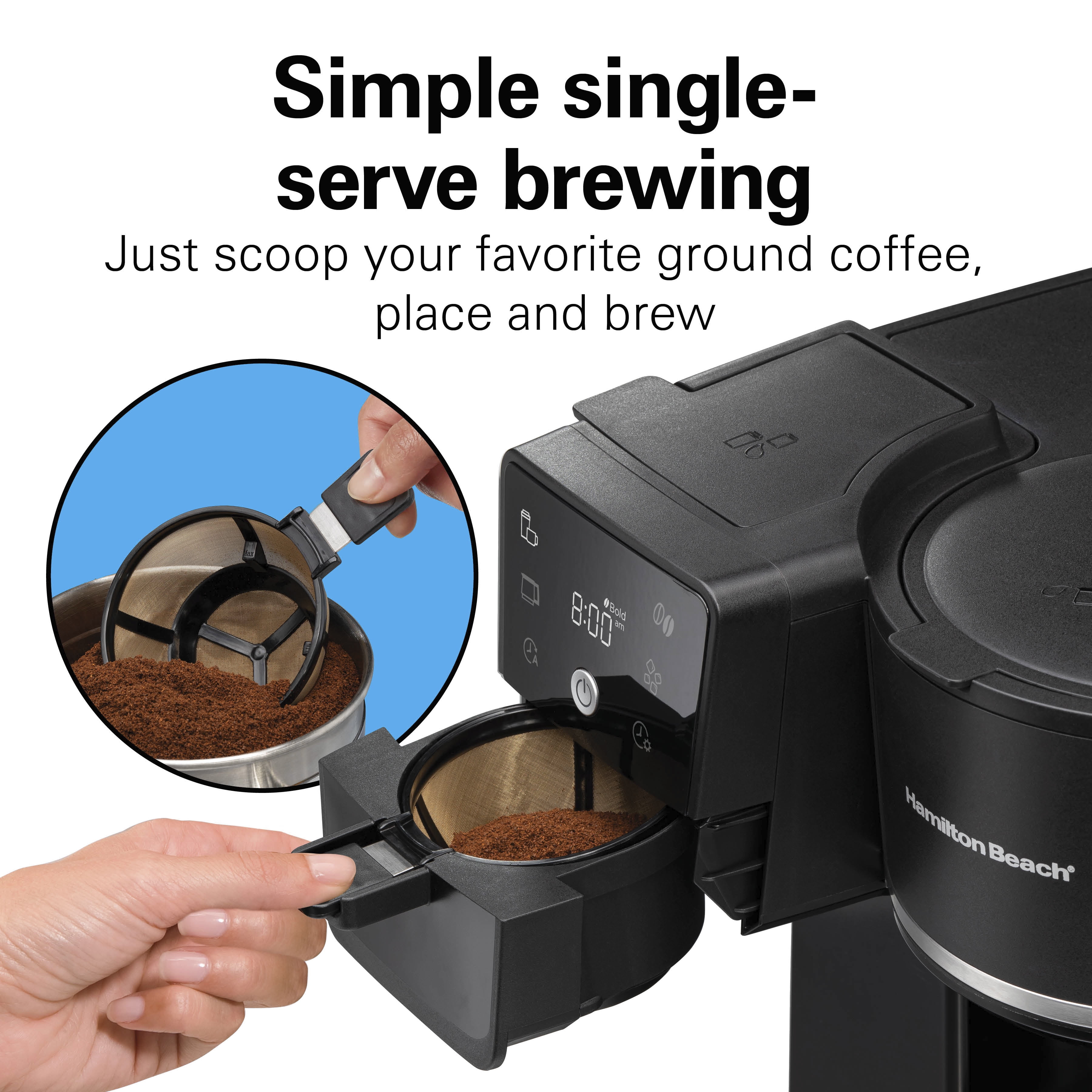 - SIMPLE SINGLE-SERVE BREWING: Brew a cup for one using loose ground coffee. With the included mesh scoop, adding your favorite ground coffee to the drip coffee maker couldn��t be easier: just scoop, place and brew. (Not compatible with K-Cup?* pods.)