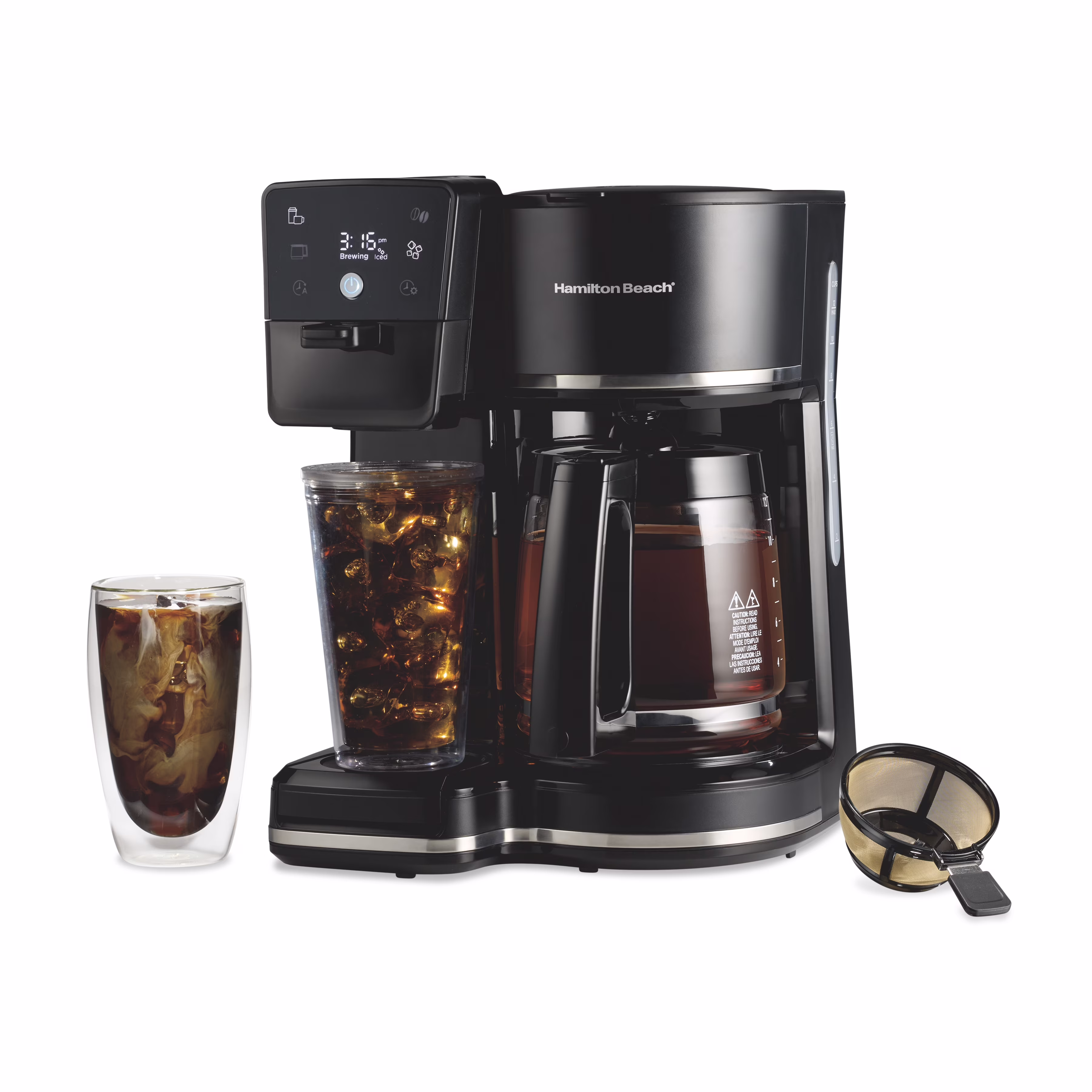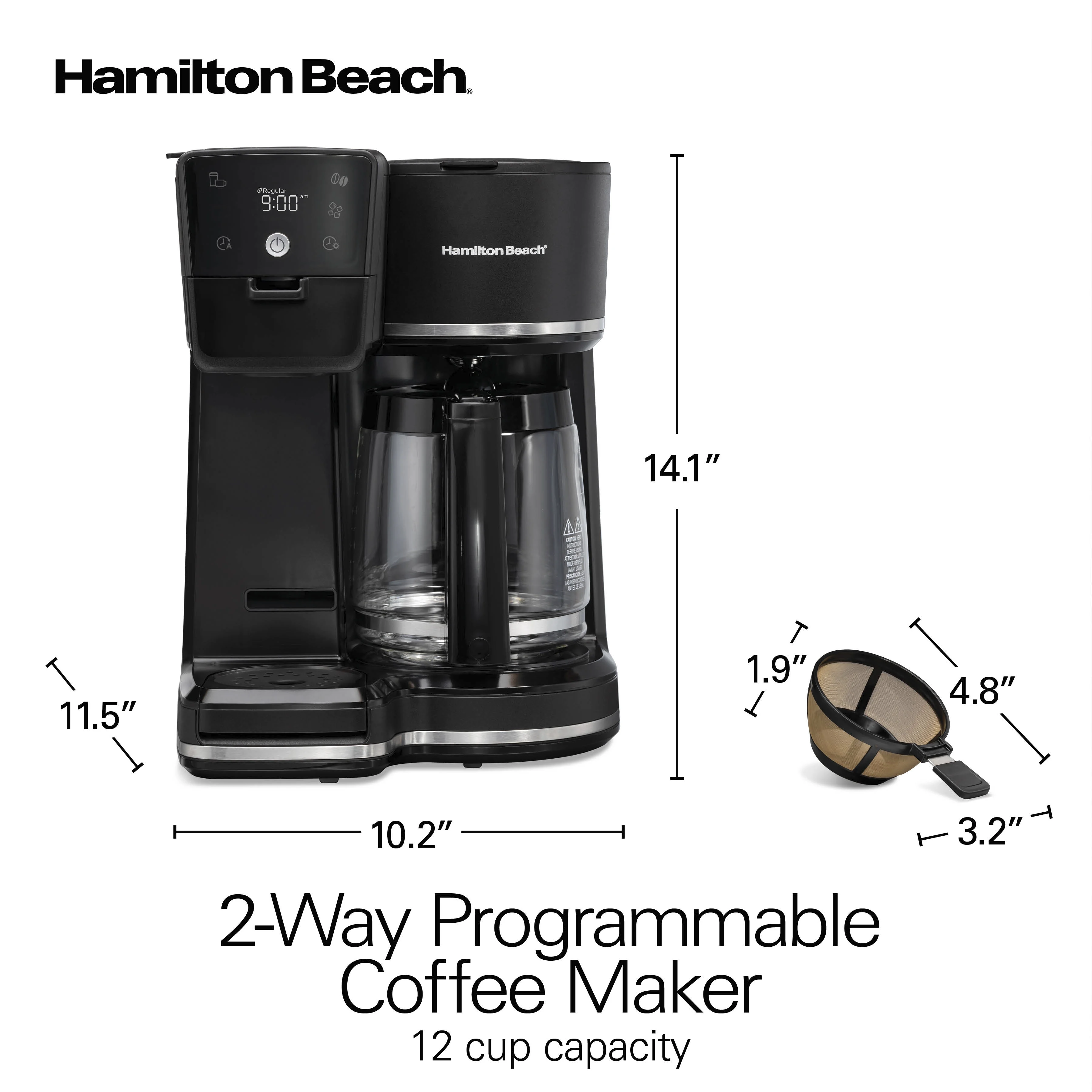 - INTUITIVE TOUCH DISPLAY �� PROGRAMMABLE UP TO 24 HOURS AHEAD: Whether you're making a full pot or brewing into a single-serve cup, you can program the Hamilton Beach coffee maker up to 24 hours in advance using the intuitive touchscreen display.